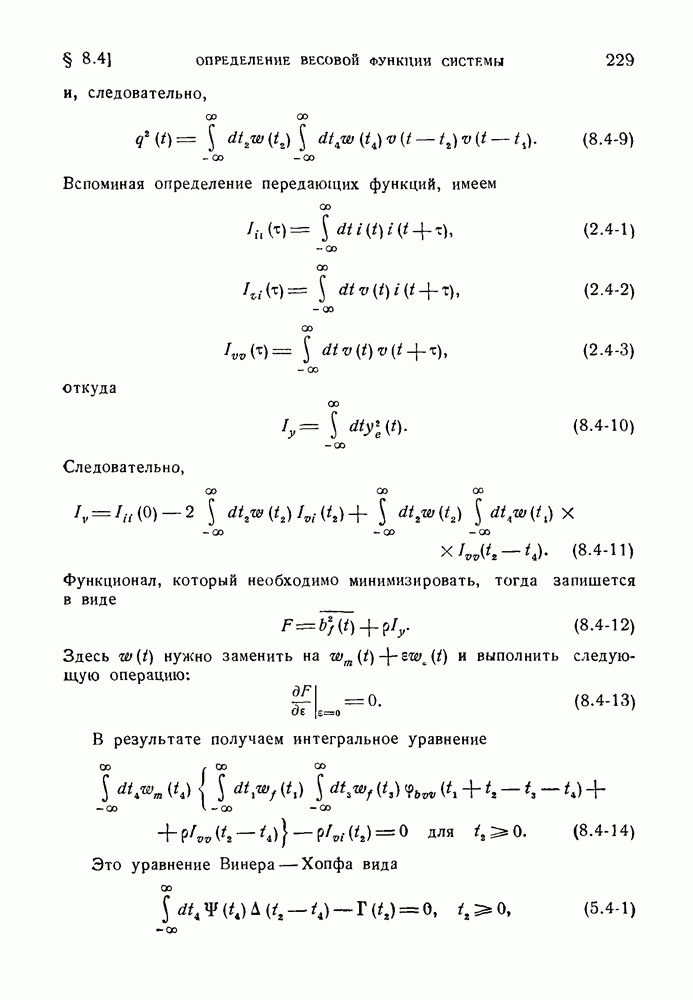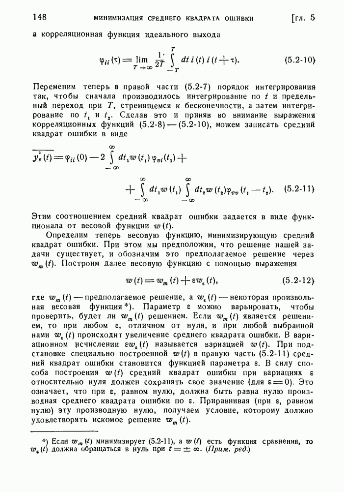 Этим соотношением средний квадрат ошибки задается в виде функционала от весовой функции Определим теперь весовую функцию, минимизирующую средний квадрат ошибки. При этом мы предположим, что решение нашей задачи существует, и обозначим это предполагаемое решение через