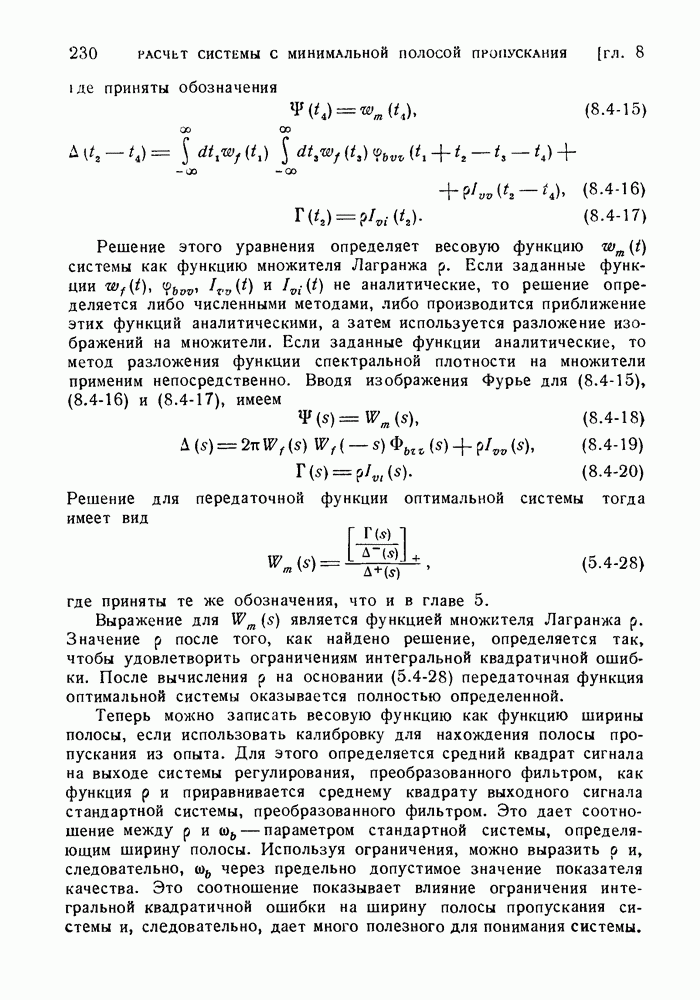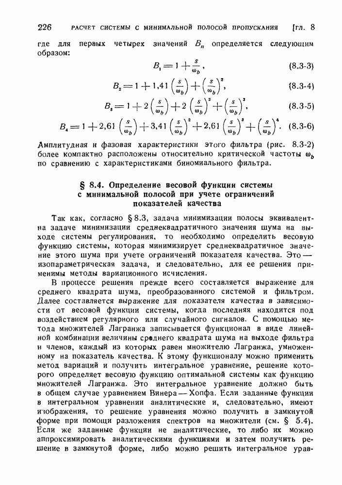 Этому условию и должна удовлетворять весовая функция системы, минимизирующая средний квадрат ошибки. Строго говоря,