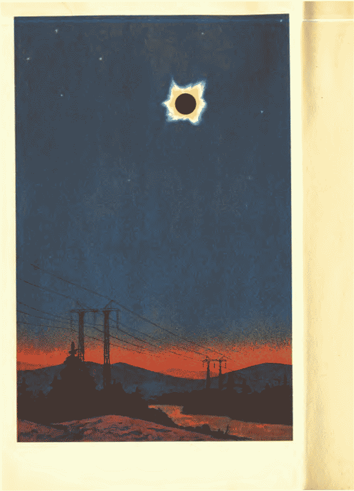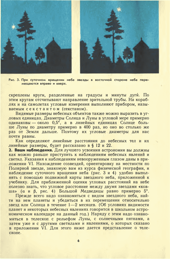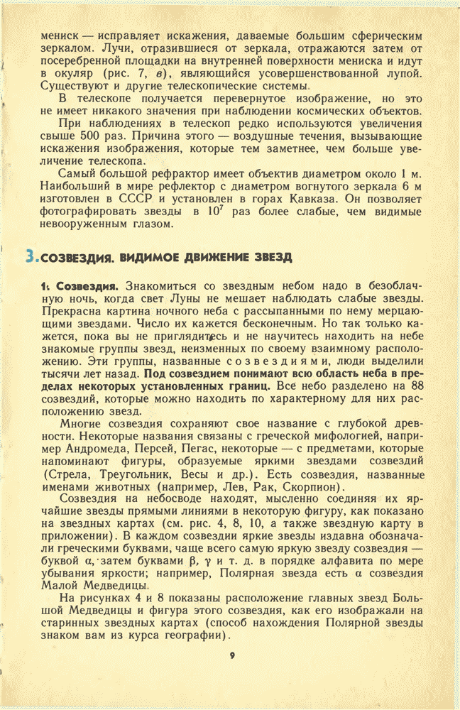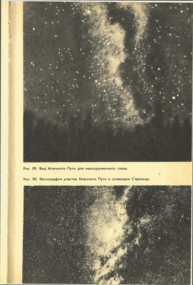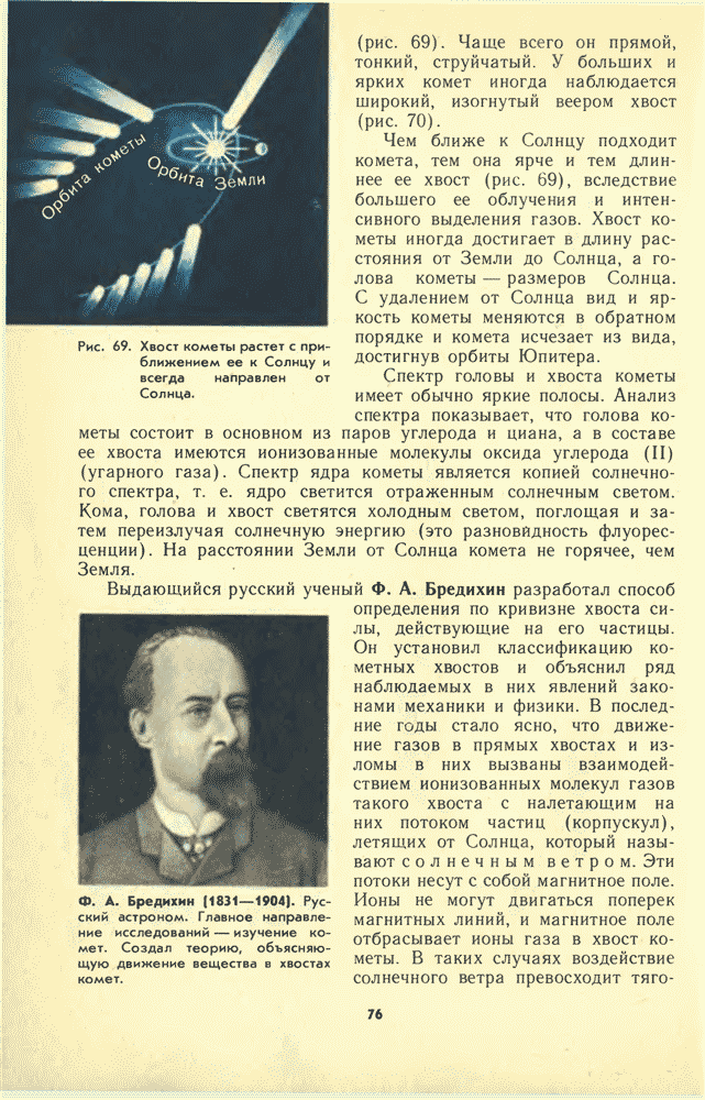 Рис. 46. Полярное сияние. Солнцем. Особенно мощные потоки частиц рождаются при взрывных явлениях на Солнце — так называемых солнечных вспышках. Поток солнечных частиц движется со скоростью 400-1000 км/с и достигает Земли примерно через 1—2 дня после того, как на Солнце произошла породившая его вспышка горячих газов. Такой усиленный корпускулярный поток возмущает магнитное поле Земли. Быстро и сильно меняются характеристики магнитного поля, что называется магнитной бурей. Стрелка компаса колеблется. Возникает возмущение ионосферы, нарушающее радиосвязь, происходят полярные сияния (рис. 46). Полярные сияния разной формы и окраски возникают на высотах от 80 до 1000 км. Их образование связано с тем, что в полярных областях частицы, двигаясь вдоль линий индукций магнитного поля, проникают в атмосферу. Частицы бомбардируют молекулы воздуха, ионизируют их и возбуждают свечение, как поток электронов в вакуумной трубке. М. В. Ломоносов первым высказал догадку о том, что полярные сияния имеют электрическую природу. Цветовые оттенки полярного сияния обусловлены свечением различных газов атмосферы. Итак, мы выяснили, что на Земле и в ее атмосфере происходят разнообразные процессы, многие из которых связаны с Солнцем, отстоящим от нас на 150 млн. км, т. е. Земля не изолирована от космоса.