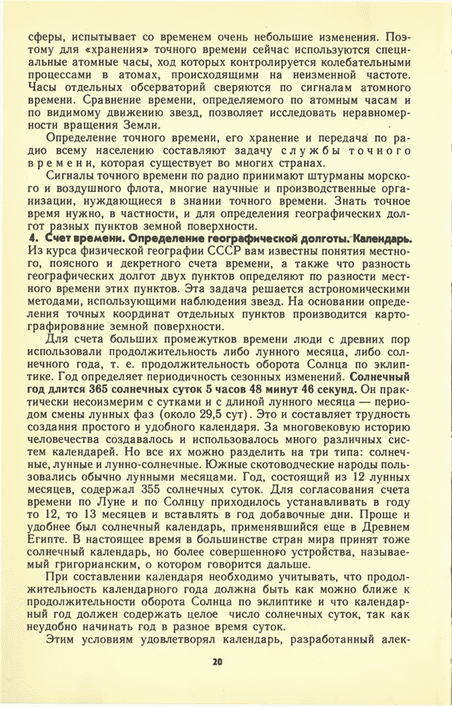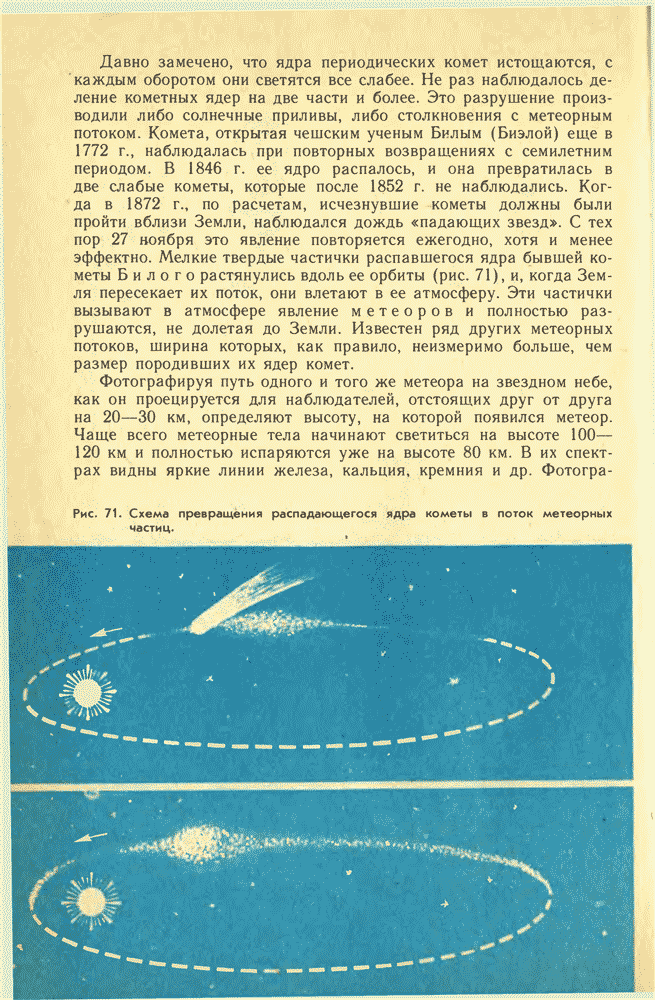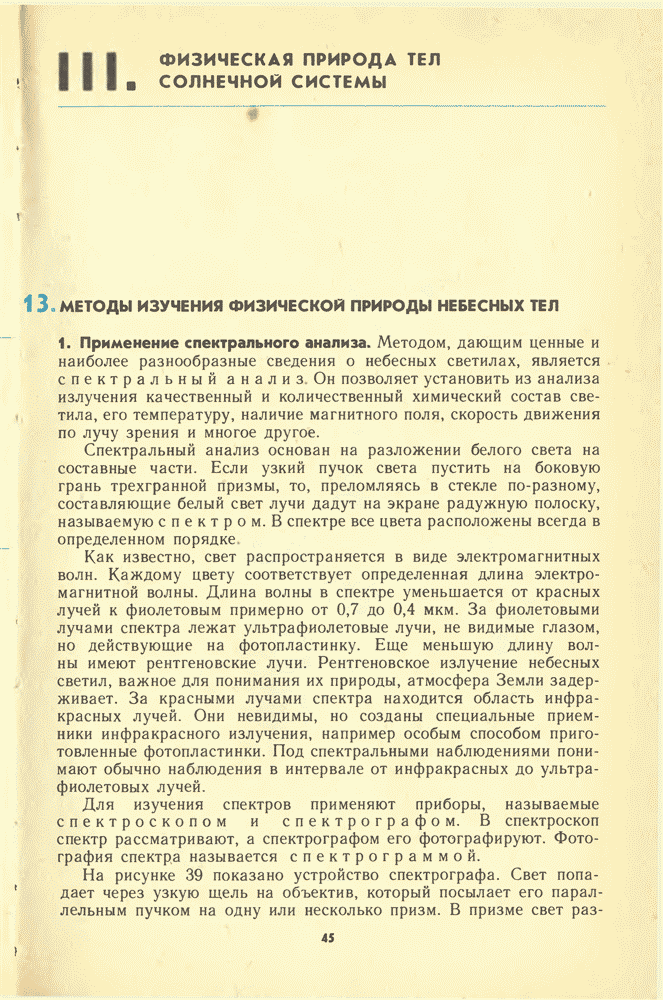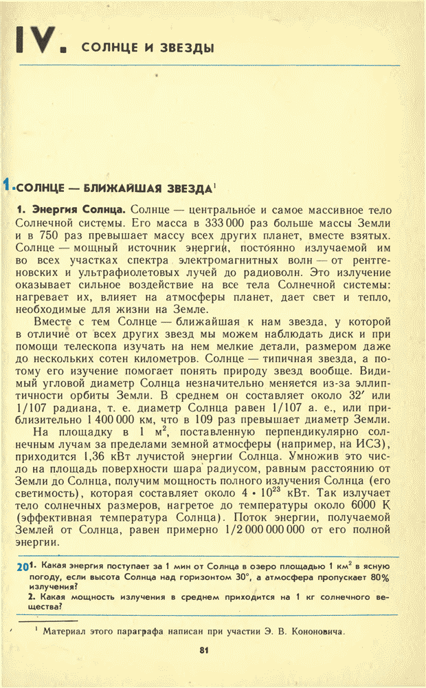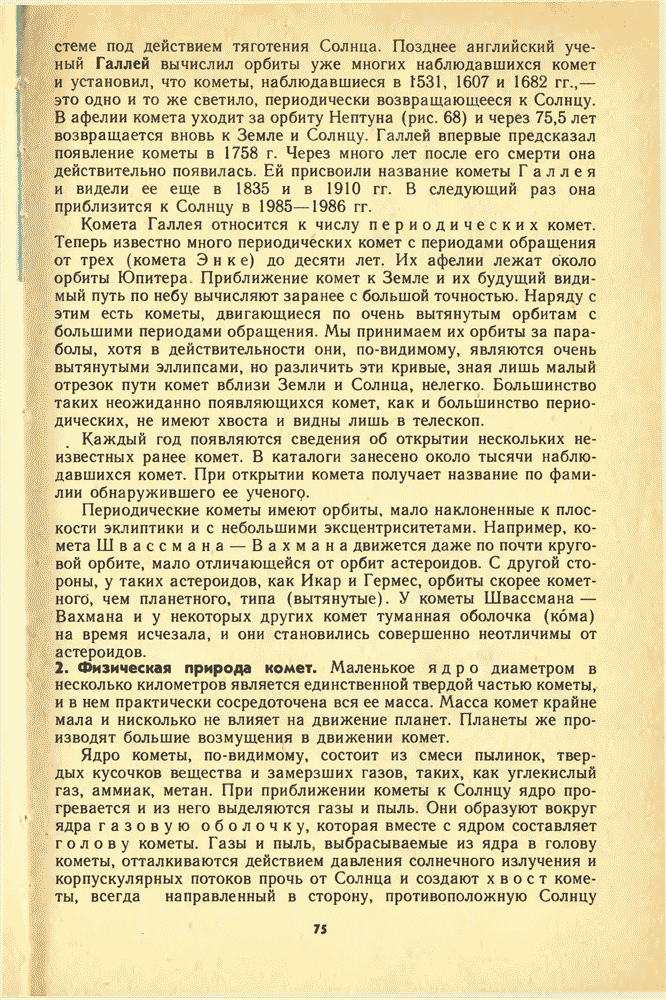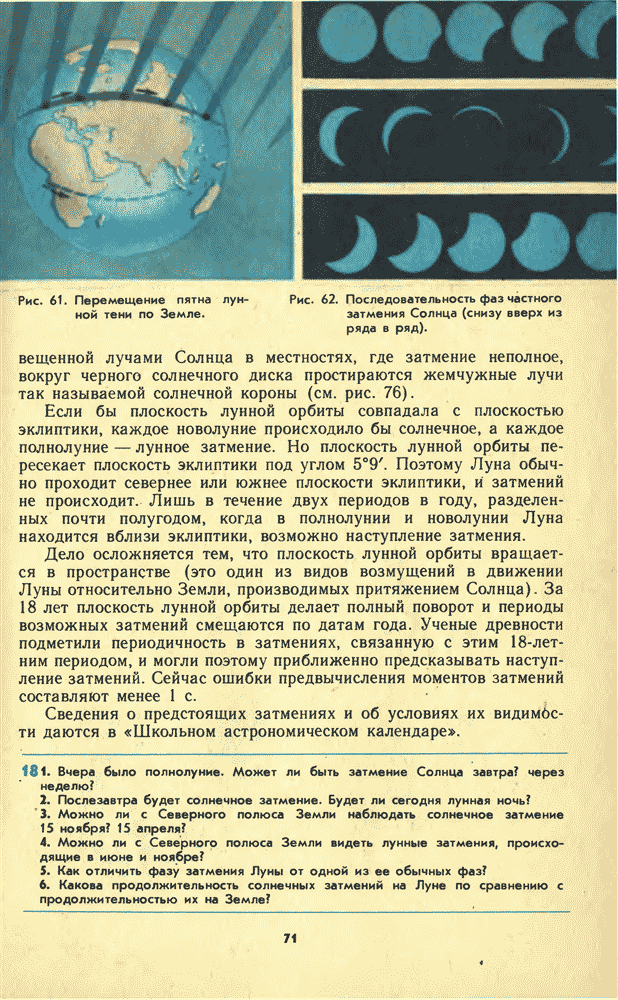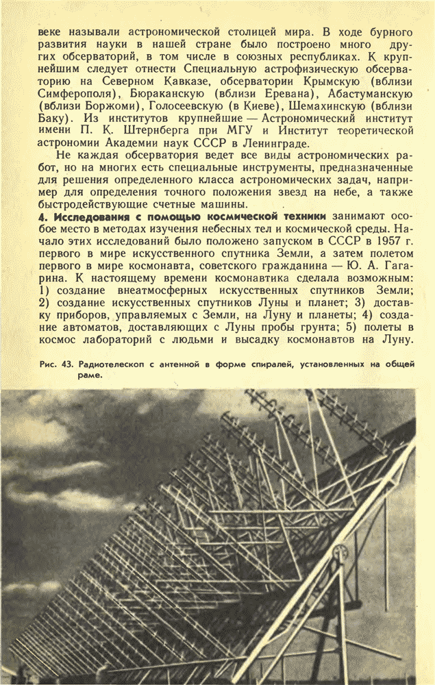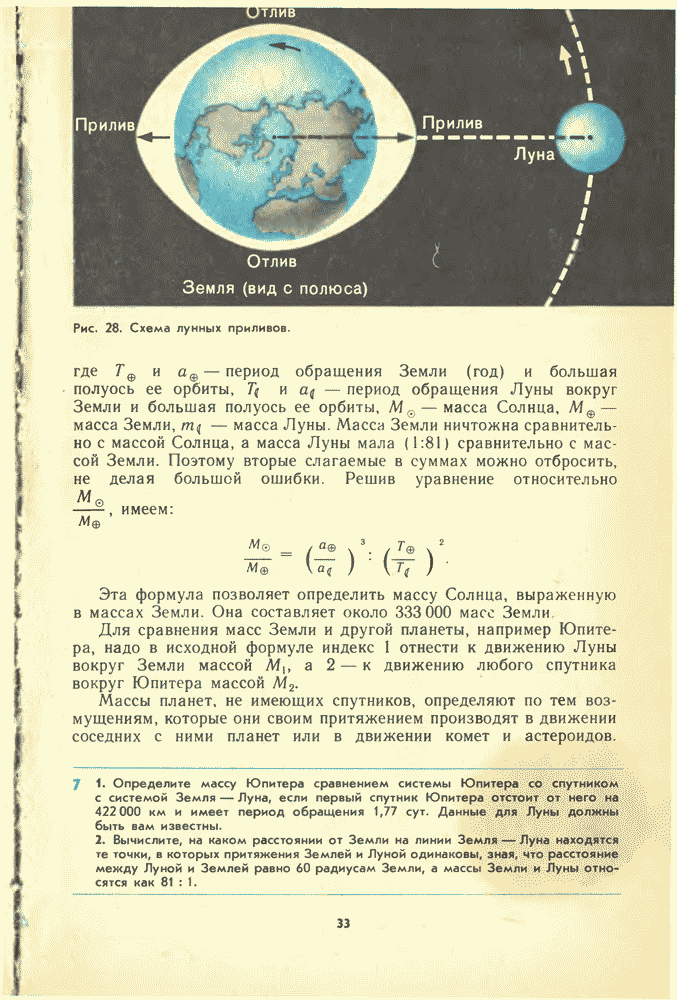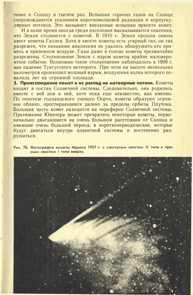 14. ОБЩИЕ ХАРАКТЕРИСТИКИ ПЛАНЕТ ЗЕМНОЙ ГРУППЫ И ЗЕМЛИ1. Изучение физической природы планет.Уже давно были установлены размеры и массы планет, период их вращения вокруг оси и наклон этой оси к плоскости орбиты для каждой планеты. Размеры и масса планет определяют еще одну важную характеристику — силу тяжести на поверхности, которая прежде всего указывает, может ли данная планета удерживать вокруг себя атмосферу. Молекулы, имеющие скорость большую, чем параболическая, покидают планету. В результате малые планеты и большинство спутников планет не имеют никакой атмосферы. У не очень массивной планеты атмосфера малоплотная; например, у Марса с меньшей силой тяжести на поверхности, чем у Земли, атмосфера более разреженная. У планет-гигантов, примером которых является Юпитер с большой силой тяжести у поверхности, атмосферы плотные и содержат молекулярный водород, который практически отсутствует в атмосферах четырех планет, ближайших к Солнцу. Плотность атмосферы и ее химический состав определяют степень поглощения в ней светового, теплового и корпускулярного излучения, идущего от Солнца. Температура поверхности планеты зависит от ее расстояния до Солнца и наличия атмосферы. Вращение планеты способствует выравниванию температур на ночном и дневном полушарии. Изучение планет проводится как с помощью наземных астрономических инструментов, установленных в обсерваториях, так и с помощью космических аппаратов. Об основных результатах исследований речь пойдет в следующих параграфах. 2. Характеристика планет земной группы.Четыре ближайшие к Солнцу планеты называются планетами типа Земли в отличие от планет-гигантов — Юпитера, Сатурна, Урана и Нептуна. Планеты в этих группах сходны между собой по физическим условиям. Это явление не случайное. Оно связано с историей образования и развития планет. Плутон, еще мало изученный, близок по размеру и массе к планетам земной группы. Меркурий, Венера, Земля и Марс отличаются от планет-гигантов меньшими размерами, меньшей массой, большей плотностью, более медленным вращением, гораздо более разреженными атмосферами, малым числом спутников или отсутствием их. Изучение этих планет способствует более глубокому знанию физической природы Земли. 3. Земля. Атмосфера.Газовая оболочка — атмосфера, окружающая Землю, содержит 18% азота, 21% кислорода и ничтожное количество других газов. Нижний слой атмосферы называется тропосферой, которая простирается до высоты 10—12 км (в средних широтах). В ней температура падает с высотой; выше лежит стратосфера — слой постоянной температуры порядка —40° С. С высоты около 25 км температура земной атмосферы медленно растет вследствие поглощения ультрафиолетового излучения. Плотность атмосферы падает с высотой. На высоте около 6 км она в 2 раза меньше, чем у поверхности Земли. На высоте в сотни километров плотность атмосферы измеряется по торможению движения искусственных спутников Земли. Там она в миллионы раз меньше, чем у поверхности. Выше, до нескольких радиусов Земли, имеется только разреженный водород. Плотность там порядка сотен атомов в кубическом сантиметре. В верхних слоях земной атмосферы солнечное излучение производит сильную ионизацию. Ионизованные слои атмосферы называются ионосферой. Атмосфера отражает или поглощает большую часть излучения, прих