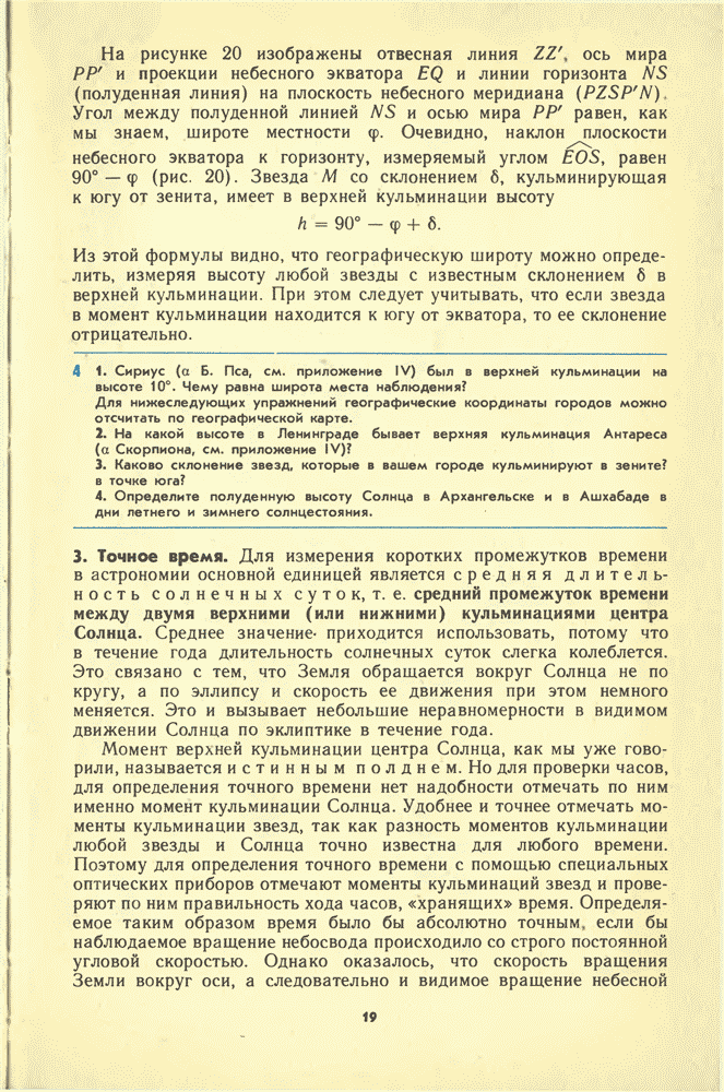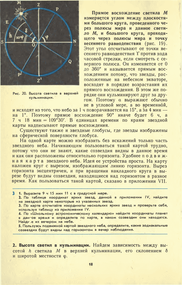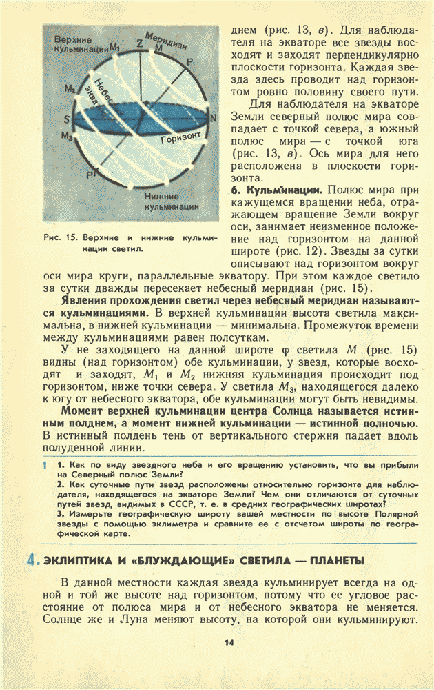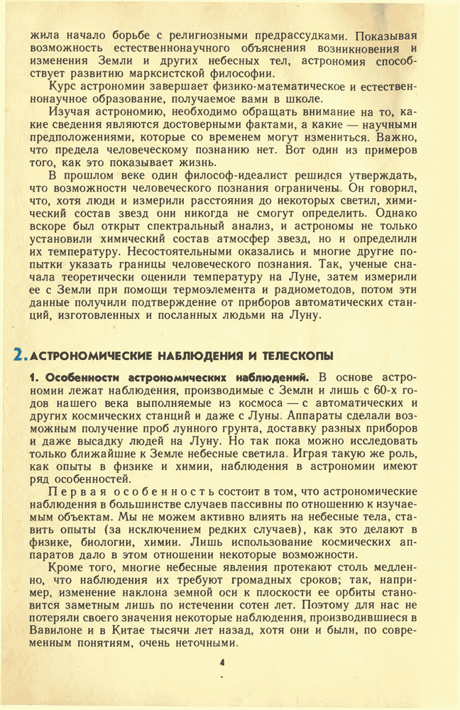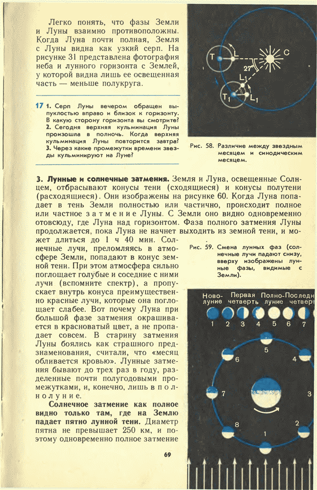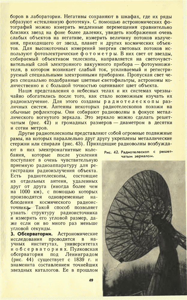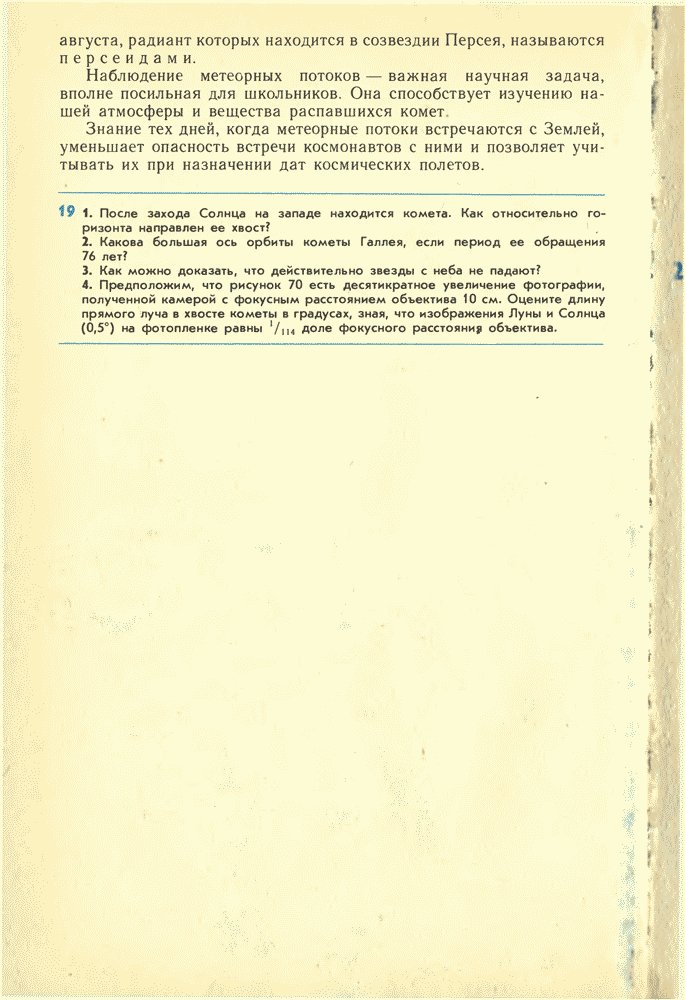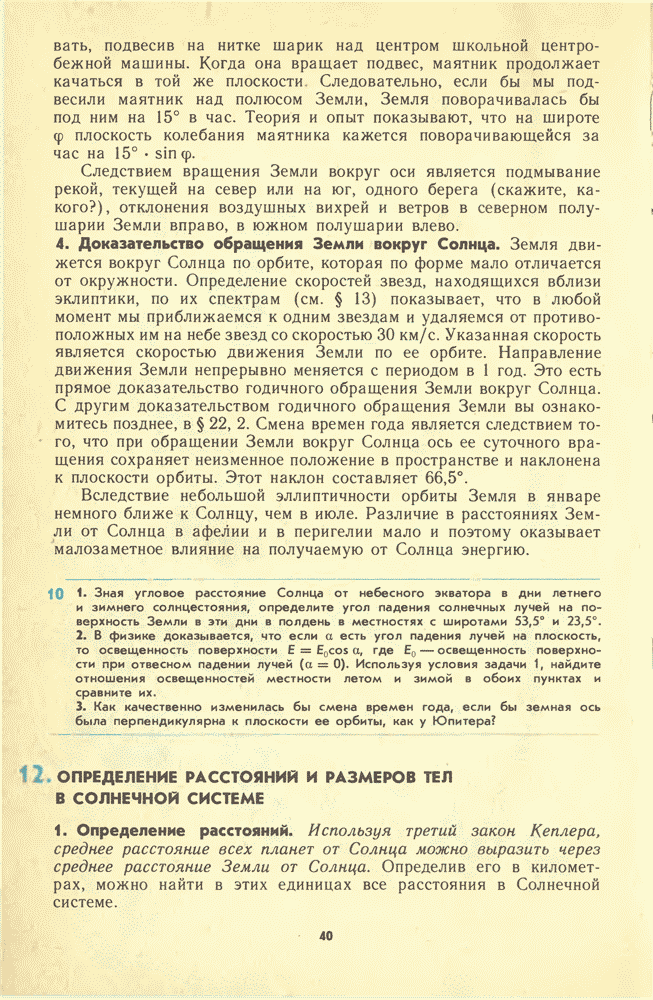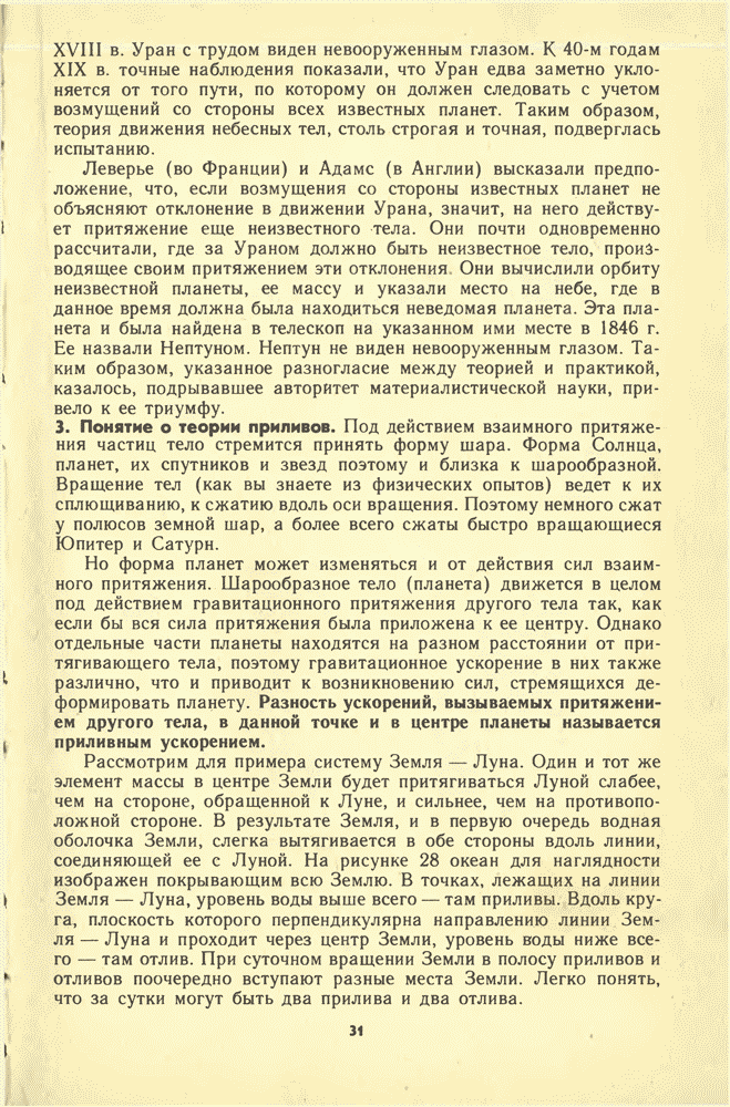 14. ОБЩИЕ ХАРАКТЕРИСТИКИ ПЛАНЕТ ЗЕМНОЙ ГРУППЫ И ЗЕМЛИ1. Изучение физической природы планет.Уже давно были установлены размеры и массы планет, период их вращения вокруг оси и наклон этой оси к плоскости орбиты для каждой планеты. Размеры и масса планет определяют еще одну важную характеристику — силу тяжести на поверхности, которая прежде всего указывает, может ли данная планета удерживать вокруг себя атмосферу. Молекулы, имеющие скорость большую, чем параболическая, покидают планету. В результате малые планеты и большинство спутников планет не имеют никакой атмосферы. У не очень массивной планеты атмосфера малоплотная; например, у Марса с меньшей силой тяжести на поверхности, чем у Земли, атмосфера более разреженная. У планет-гигантов, примером которых является Юпитер с большой силой тяжести у поверхности, атмосферы плотные и содержат молекулярный водород, который практически отсутствует в атмосферах четырех планет, ближайших к Солнцу. Плотность атмосферы и ее химический состав определяют степень поглощения в ней светового, теплового и корпускулярного излучения, идущего от Солнца. Температура поверхности планеты зависит от ее расстояния до Солнца и наличия атмосферы. Вращение планеты способствует выравниванию температур на ночном и дневном полушарии. Изучение планет проводится как с помощью наземных астрономических инструментов, установленных в обсерваториях, так и с помощью космических аппаратов. Об основных результатах исследований речь пойдет в следующих параграфах. 2. Характеристика планет земной группы.Четыре ближайшие к Солнцу планеты называются планетами типа Земли в отличие от планет-гигантов — Юпитера, Сатурна, Урана и Нептуна. Планеты в этих группах сходны между собой по физическим условиям. Это явление не случайное. Оно связано с историей образования и развития планет. Плутон, еще мало изученный, близок по размеру и массе к планетам земной группы. Меркурий, Венера, Земля и Марс отличаются от планет-гигантов меньшими размерами, меньшей массой, большей плотностью, более медленным вращением, гораздо более разреженными атмосферами, малым числом спутников или отсутствием их. Изучение этих планет способствует более глубокому знанию физической природы Земли. 3. Земля. Атмосфера.Газовая оболочка — атмосфера, окружающая Землю, содержит 18% азота, 21% кислорода и ничтожное количество других газов. Нижний слой атмосферы называется тропосферой, которая простирается до высоты 10—12 км (в средних широтах). В ней температура падает с высотой; выше лежит стратосфера — слой постоянной температуры порядка —40° С. С высоты около 25 км температура земной атмосферы медленно растет вследствие поглощения ультрафиолетового излучения. Плотность атмосферы падает с высотой. На высоте около 6 км она в 2 раза меньше, чем у поверхности Земли. На высоте в сотни километров плотность атмосферы измеряется по торможению движения искусственных спутников Земли. Там она в миллионы раз меньше, чем у поверхности. Выше, до нескольких радиусов Земли, имеется только разреженный водород. Плотность там порядка сотен атомов в кубическом сантиметре. В верхних слоях земной атмосферы солнечное излучение производит сильную ионизацию. Ионизованные слои атмосферы называются ионосферой. Атмосфера отражает или поглощает большую часть излучения, прих