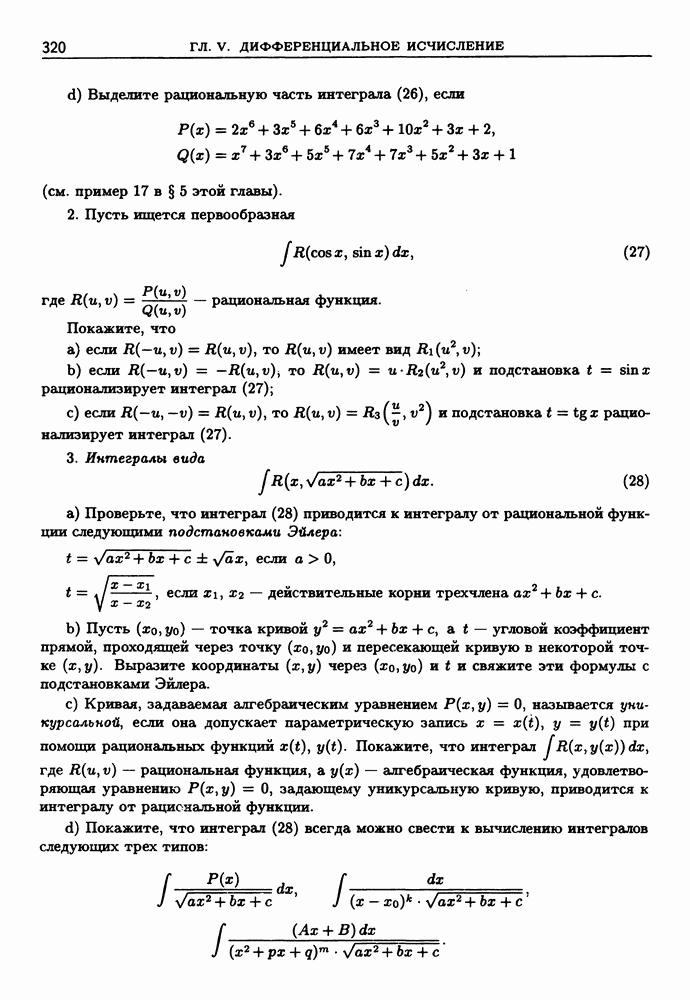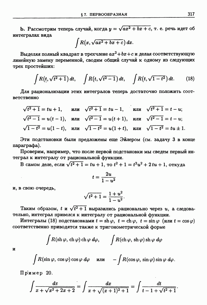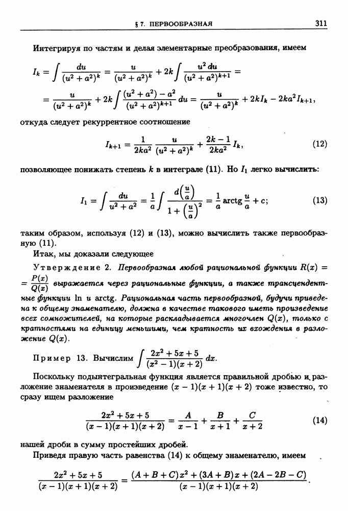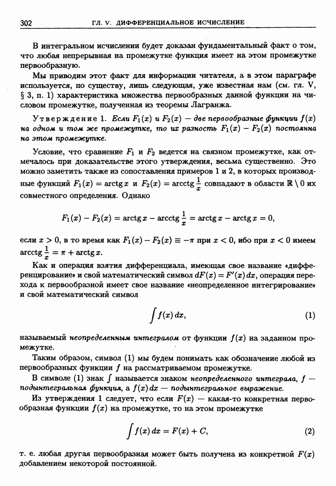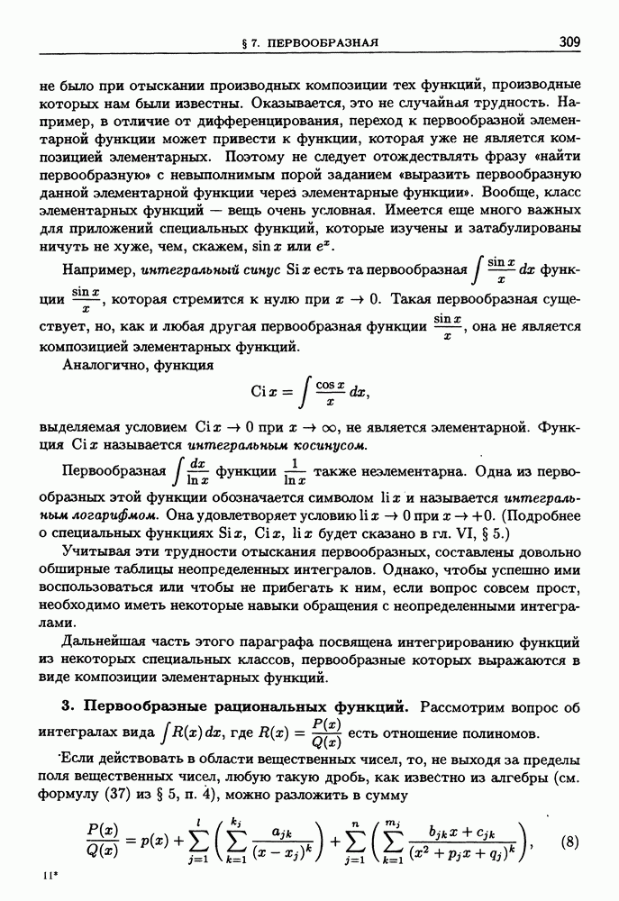 выделяемая условием Первообразная Учитывая эти трудности отыскания первообразных, составлены довольно обширные таблицы неопределенных интегралов. Однако, чтобы успешно ими воспользоваться или чтобы не прибегать к ним, если вопрос совсем прост, необходимо иметь некоторые навыки обращения с неопределенными интегралами. Дальнейшая часть этого параграфа посвящена интегрированию функций из некоторых специальных классов, первообразные которых выражаются в виде композиции элементарных функций.