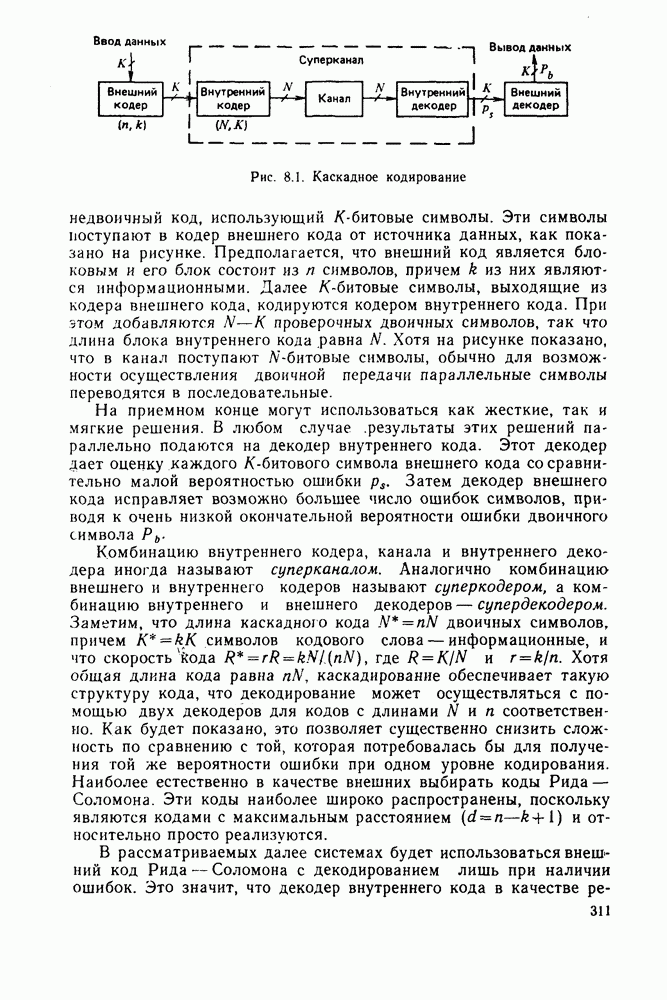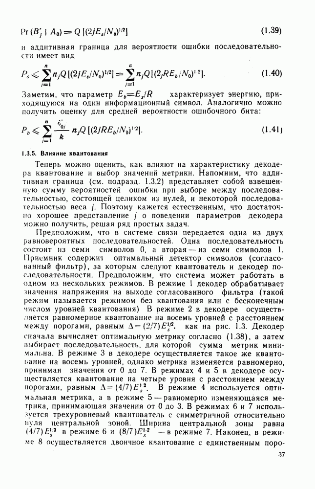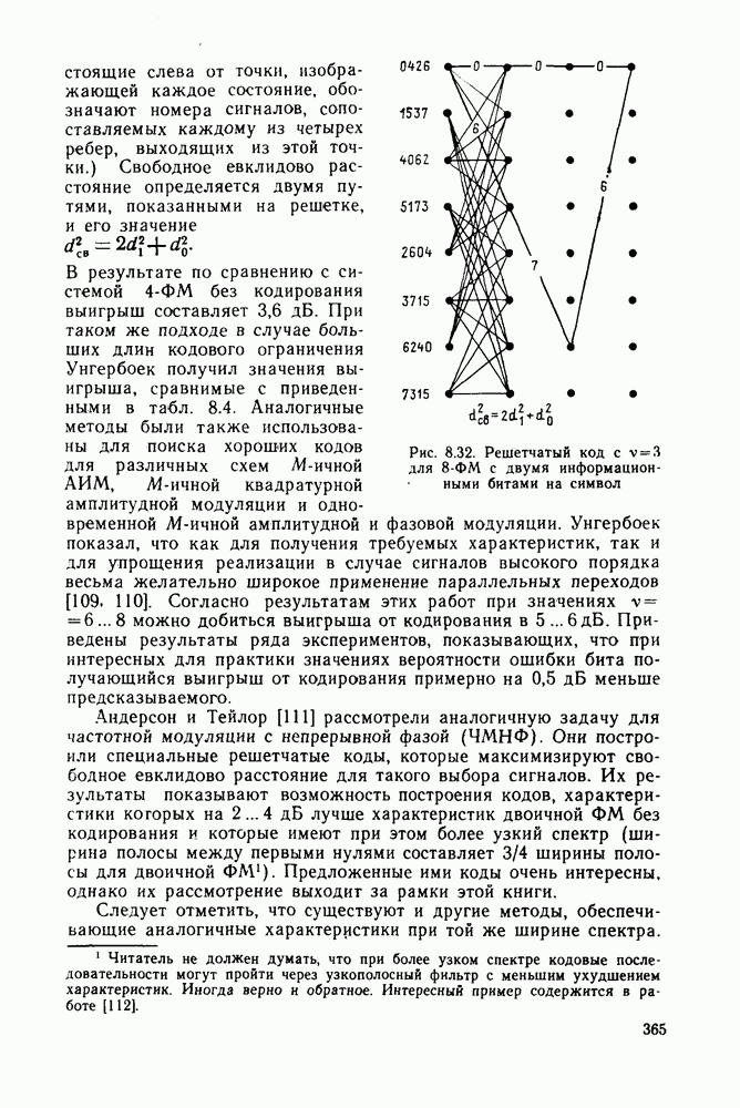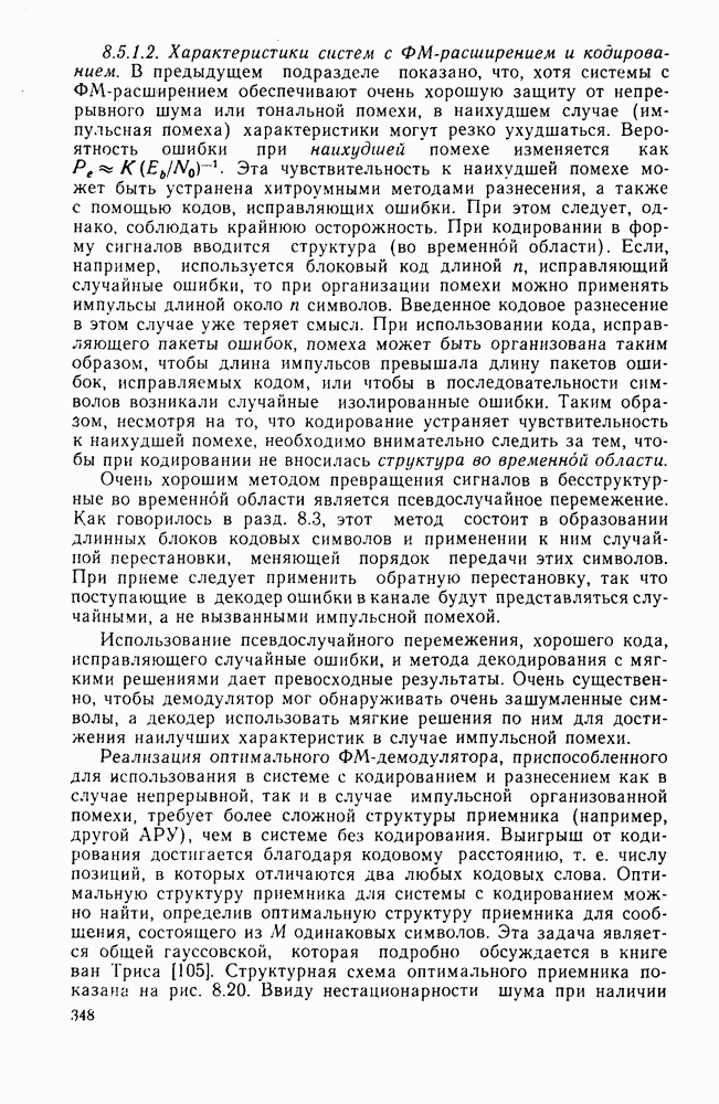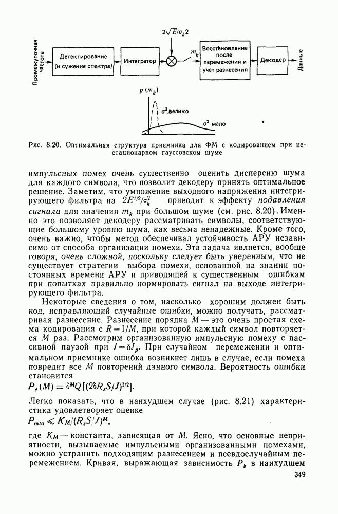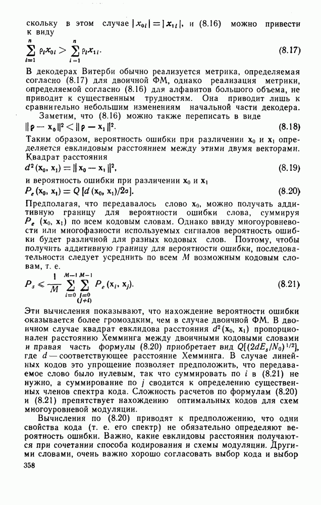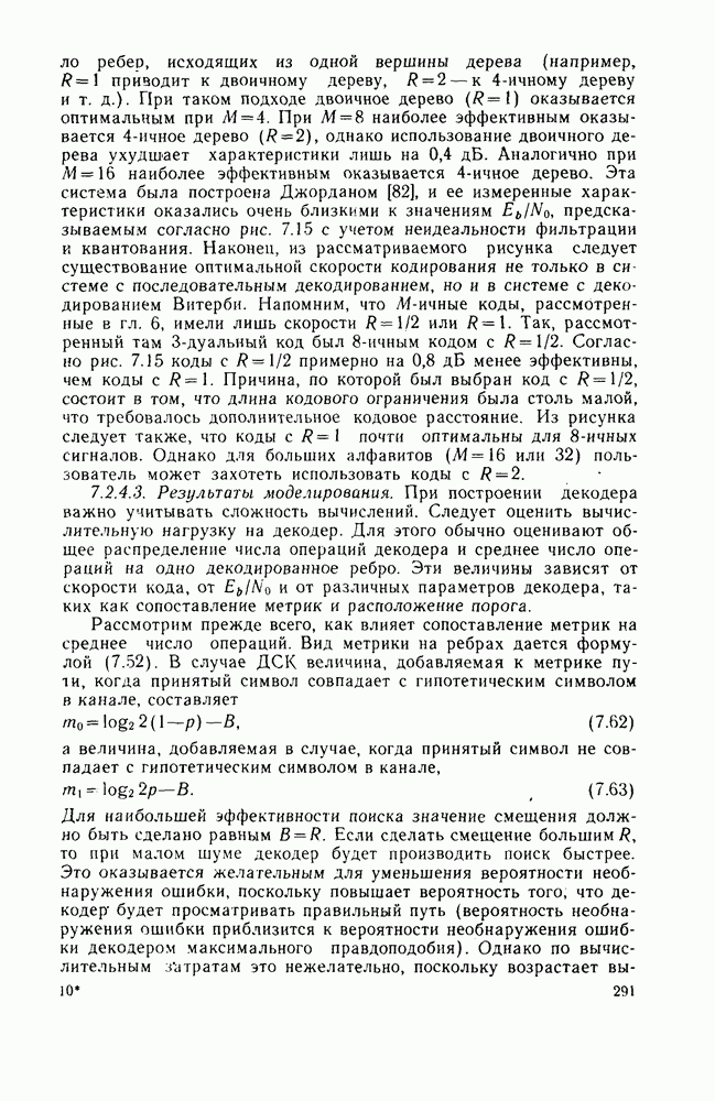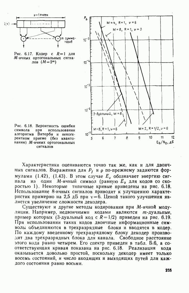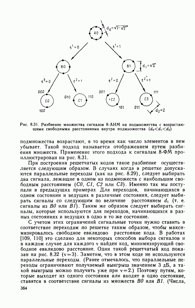 Модулятор порождает множество непрерывных сигналов конечной длительности и реализует отображение выходных последовательностей кодера в это множество сигналов. Для схем двоичной модуляции по каждому выходному символу кодера выбирается один из двух возможных сигналов. В схемах -ичной модуляции выходная последовательность декодера разбивается на множества, но символов (где и каждое множество используется для выбора одного из сигналов. В этом случае существуют различные отображения и выбор одного из них зависит от поставленных целей. В двух часто встречающихся ситуациях набор из символов отвечает -ичному символу блокового кода или выходным символам древовидного кода.