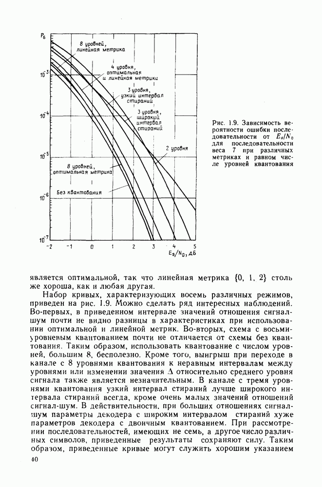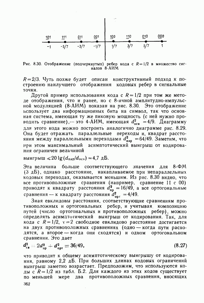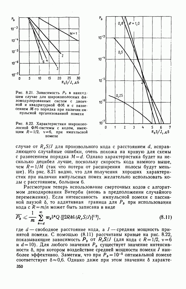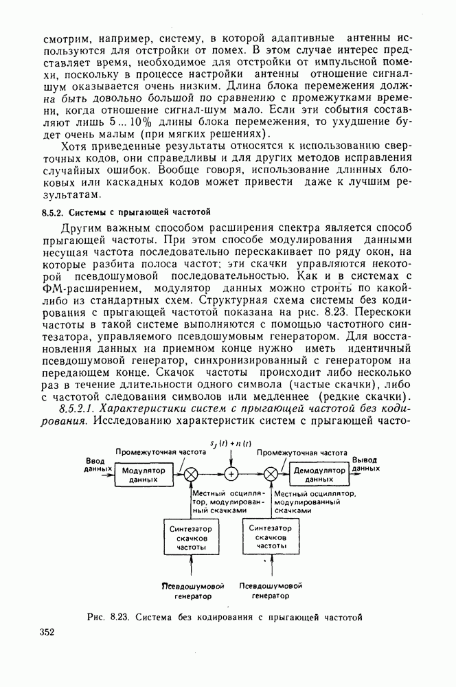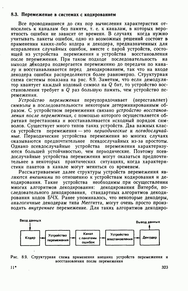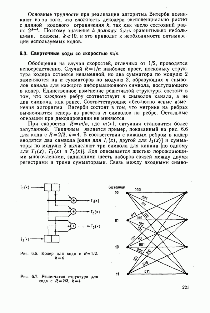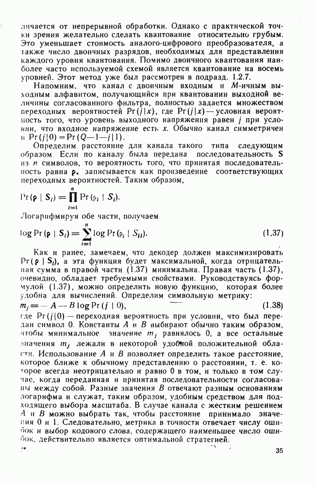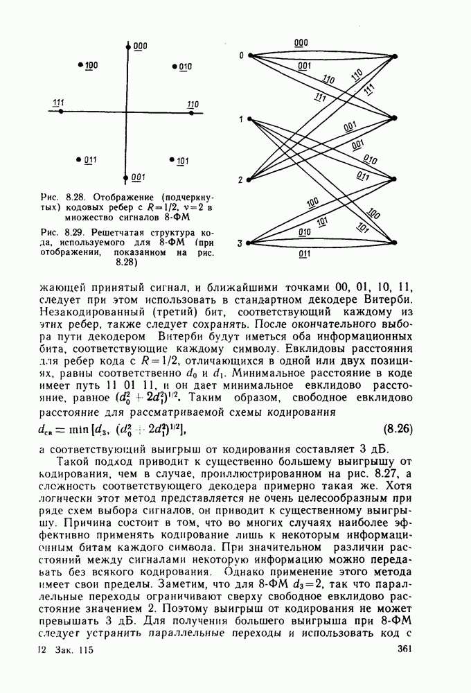 Модулятор порождает множество непрерывных сигналов конечной длительности и реализует отображение выходных последовательностей кодера в это множество сигналов. Для схем двоичной модуляции по каждому выходному символу кодера выбирается один из двух возможных сигналов. В схемах -ичной модуляции выходная последовательность декодера разбивается на множества, но символов (где и каждое множество используется для выбора одного из сигналов. В этом случае существуют различные отображения и выбор одного из них зависит от поставленных целей. В двух часто встречающихся ситуациях набор из символов отвечает -ичному символу блокового кода или выходным символам древовидного кода.