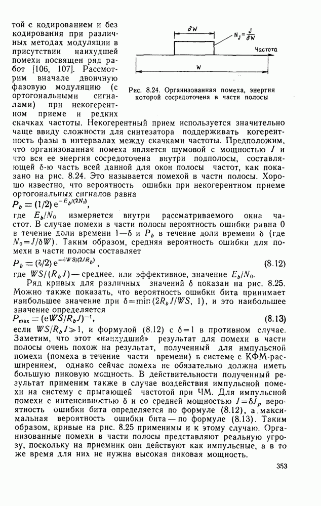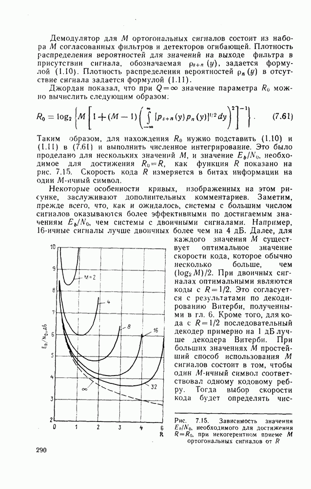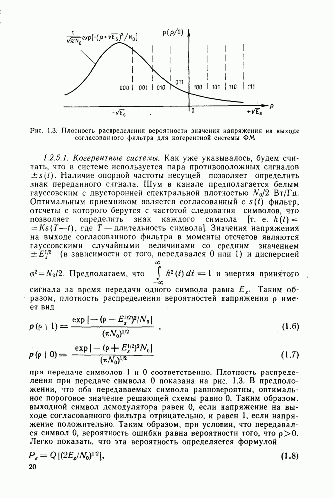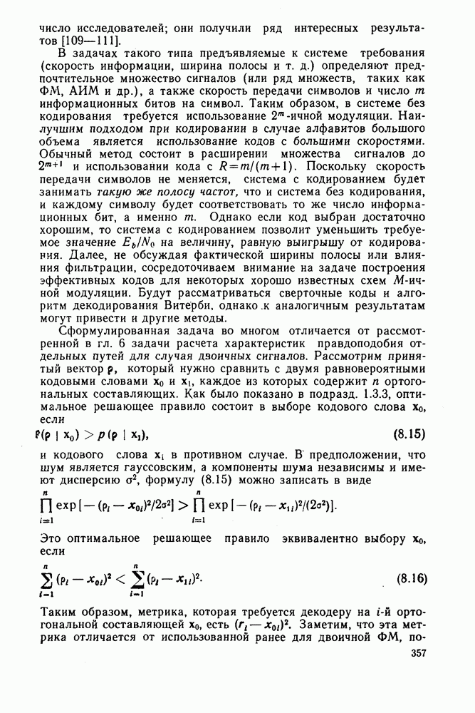 Имеется несколько интересных частных случаев. В системах с когерентной демодуляцией (когда имеется опорная частота несущей) часто используется схема двоичной модуляции, называемая фазовой модуляцией (ФМ). При этом методе передаваемый символ 1 представляется сигналом а передаваемый символ 0 представляется обратным сигналом . В некогерентных системах определение знака переданного сигнала невозможно, так что для представления переданных символов 0 и 1 обычно используется пара взаимно ортогональных сигналов Случай -ичной модуляции в некогерентных системах является простым обобщением случая двоичной модуляции: используется ортогональных сигналов: