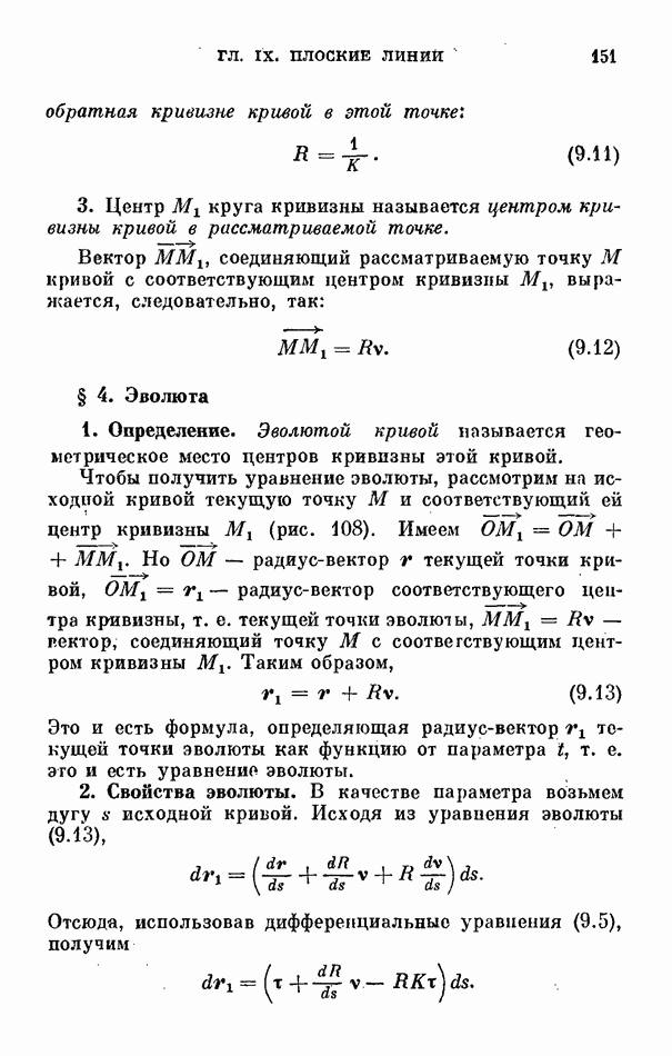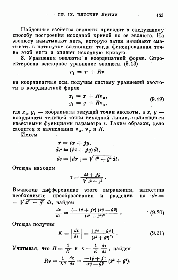 исходной кривой. Исходя из уравнения эволюты (9.13),