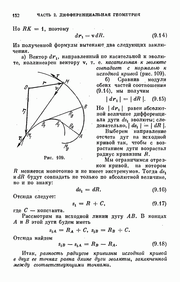 т. е. касательная к эволюте совпадает с нормалью к исходной кривой (рис. 109).