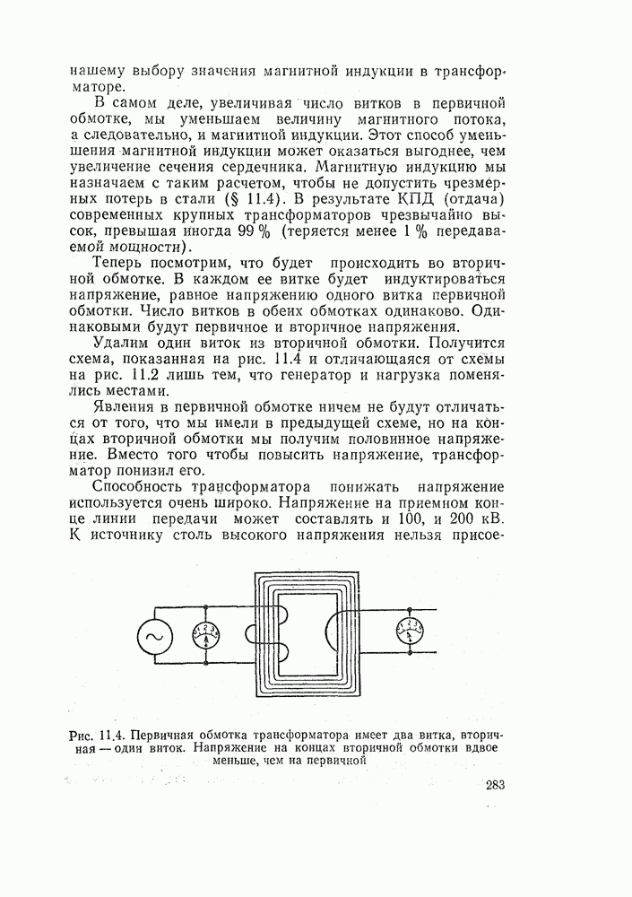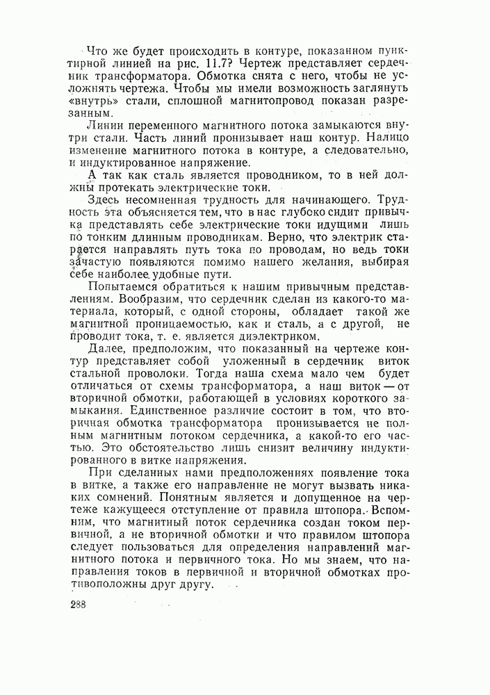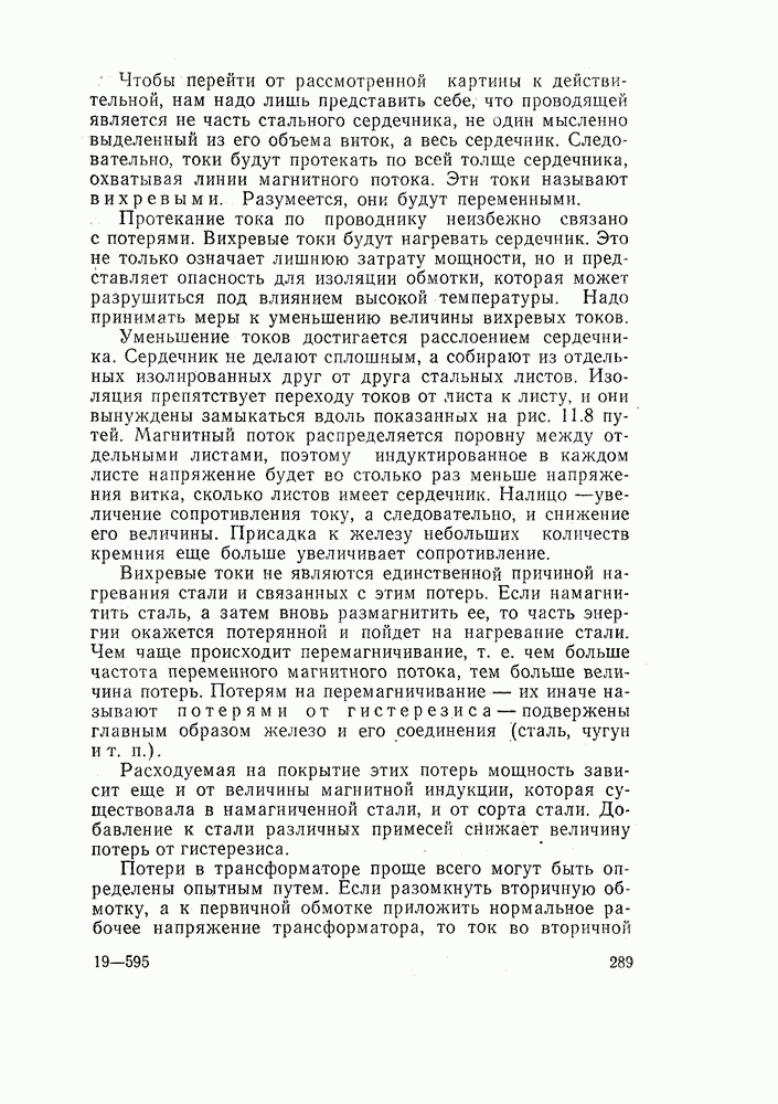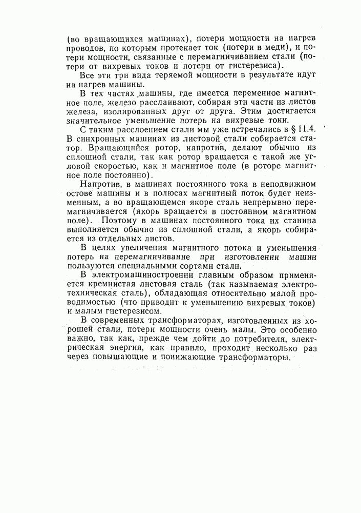 11.4. ПОТЕРИ В ТРАНСФОРМАТОРЕГоворя о работе трансформаторов, мы почти не касались явлений, происходящих в его стальном сердечнике (магнитопроводе). Мы считались лишь с тем, что магнитная проницаемость стали весьма велика, благодаря чему все линии магнитного потока замкнулись в стали.
