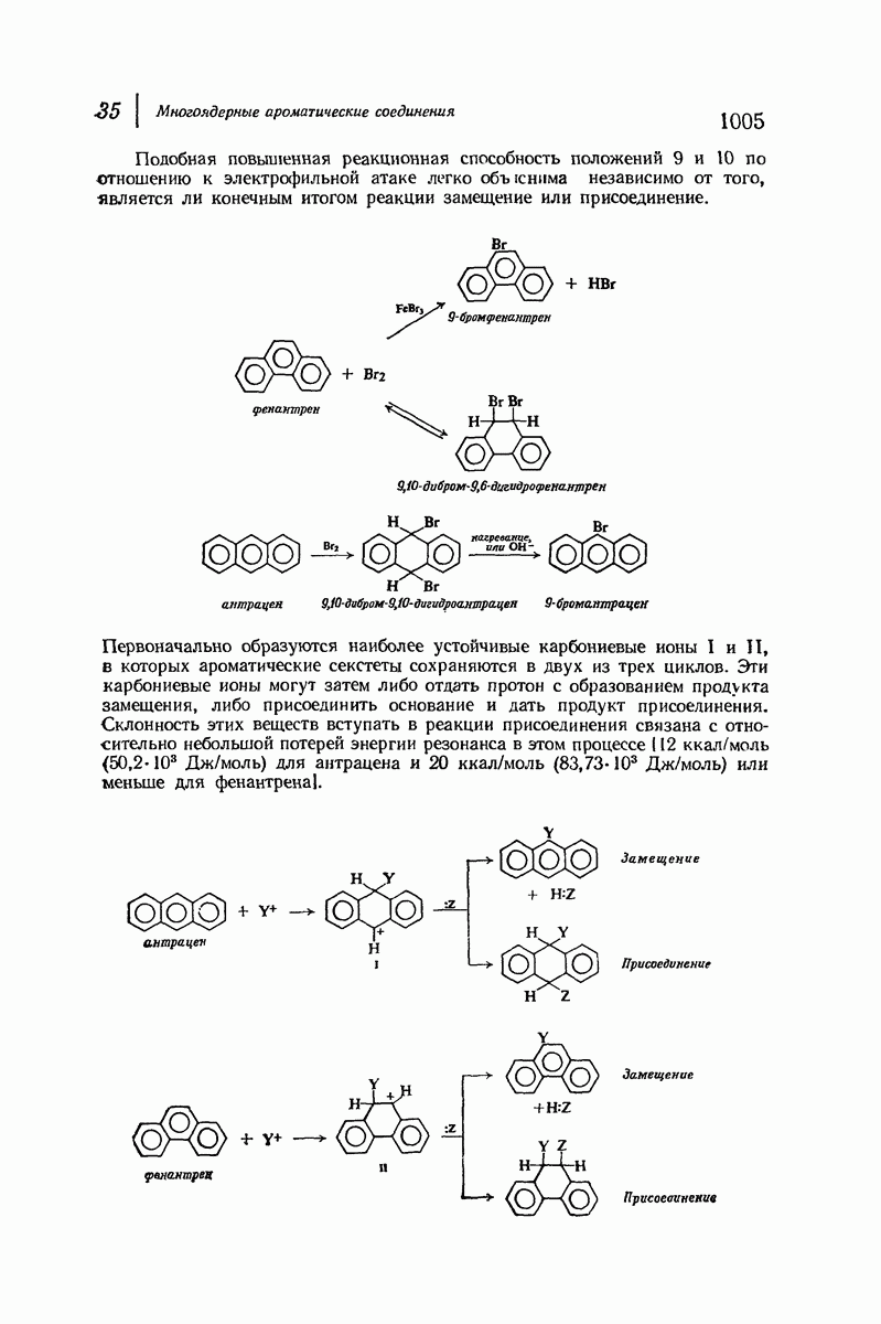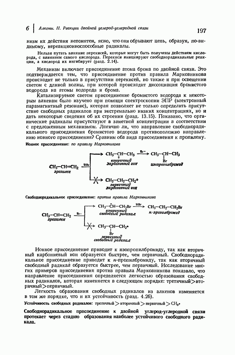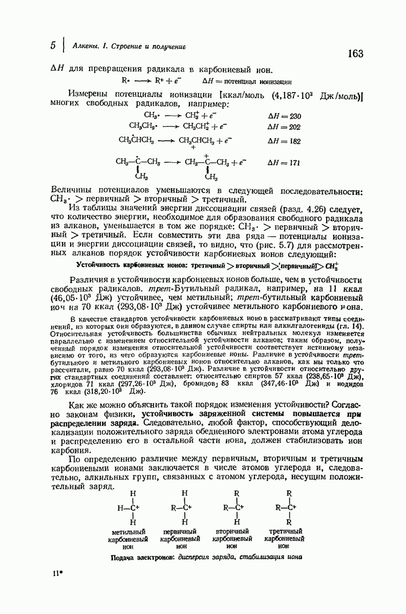 Ион I, образующийся в этом случае, исключительно стабилен, причем его стабильность объясняется тем, что его едва ли можно считать «карбоние-вым» ионом вообще, поскольку кислород может нести заряд, сохраняя свой октет электронов. Действительно, ион является протонированным кетоном; при отщеплении протона образуется бромацетон.