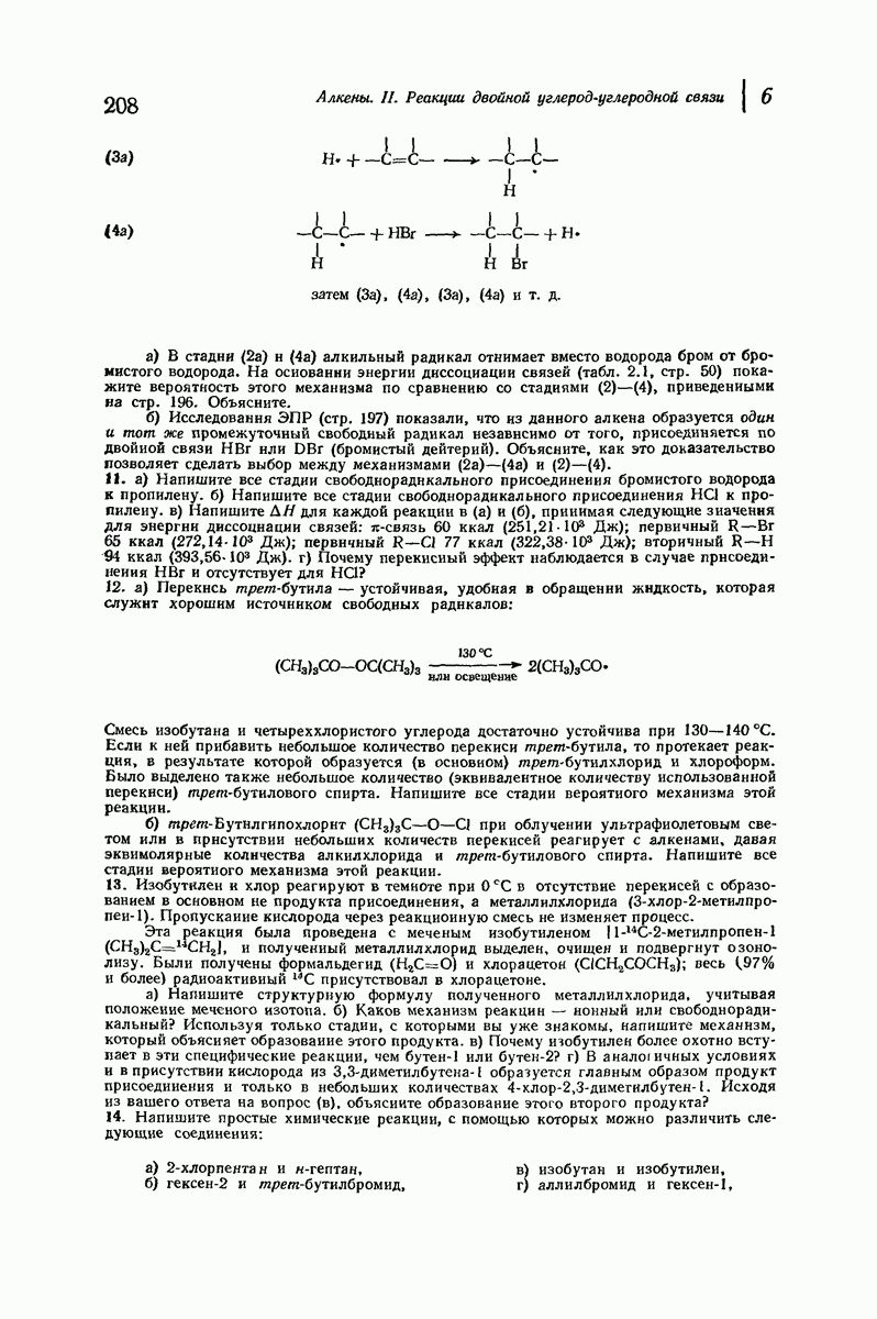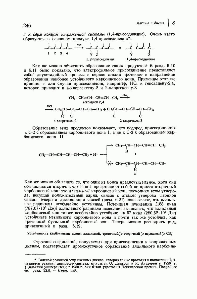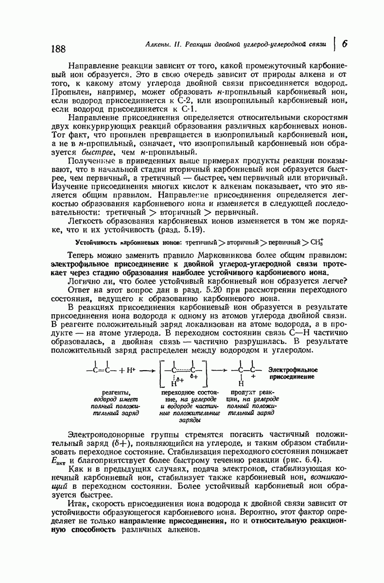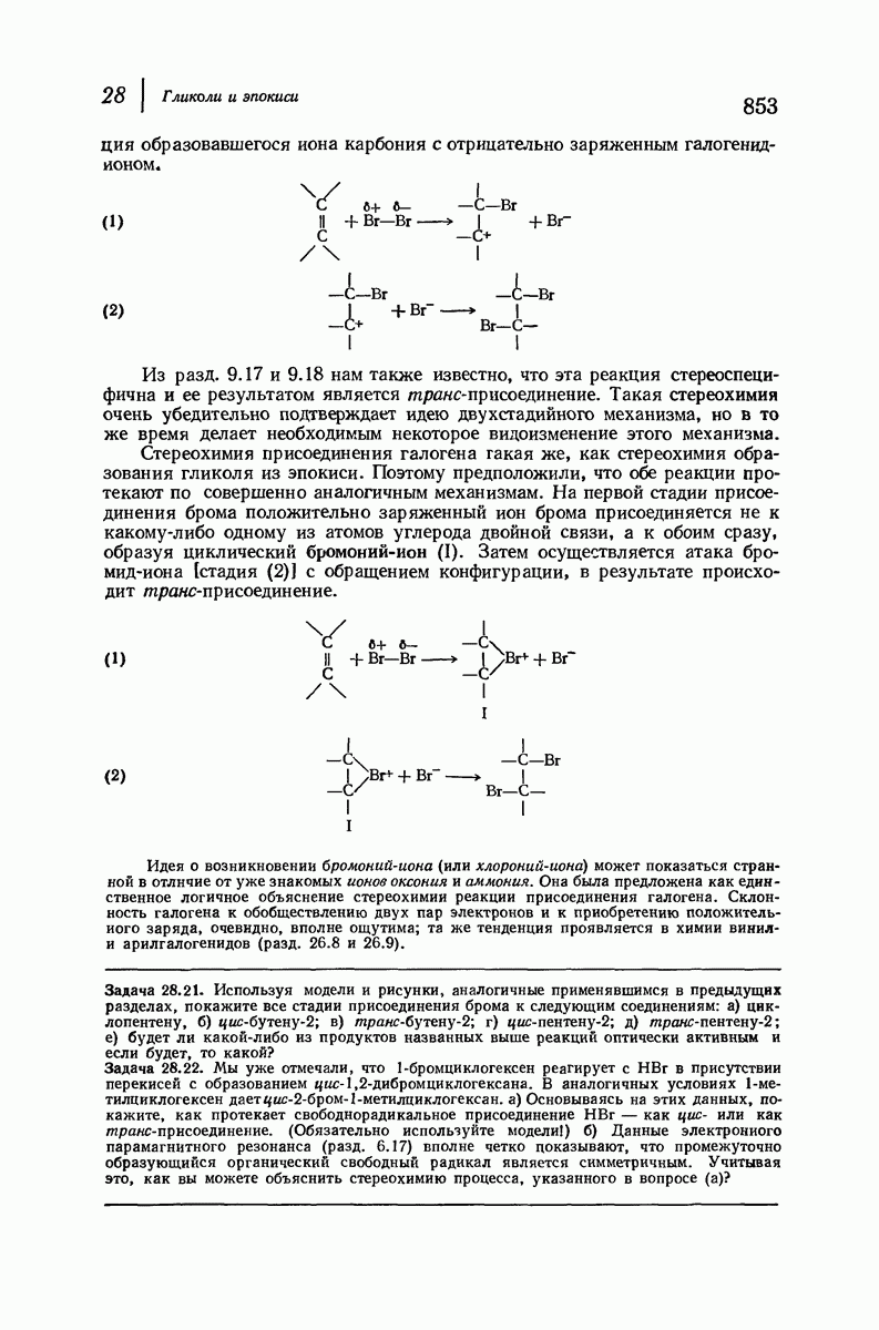По мере образования енол немедленно реагирует с галогеном [стадия (3)]. Можно было бы ожидать, что непредельный енол будет вступать в реакцию присоединения, и действительно, реакция так и происходит: положительный ион галогена присоединяется с образованием карбониевого иона. Как обычно (разд. 6.11), присоединение происходит таким образом, чтобы получился наиболее устойчивый карбониевый ион.