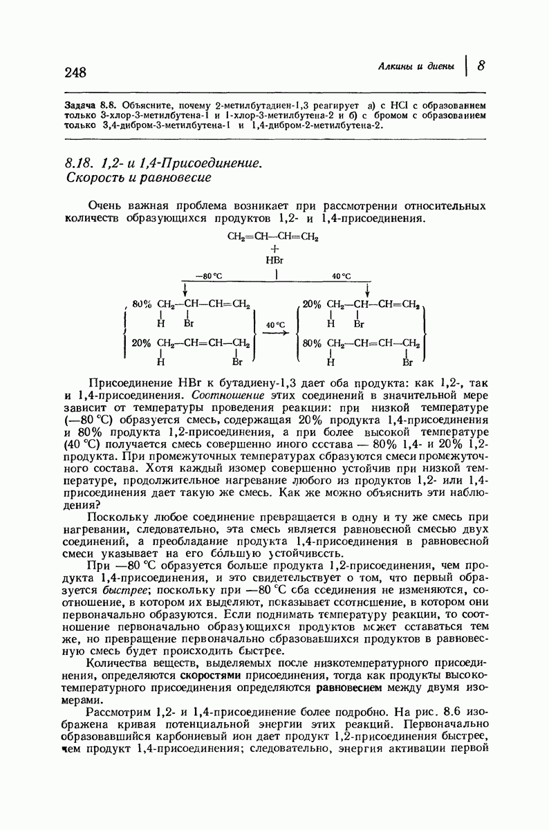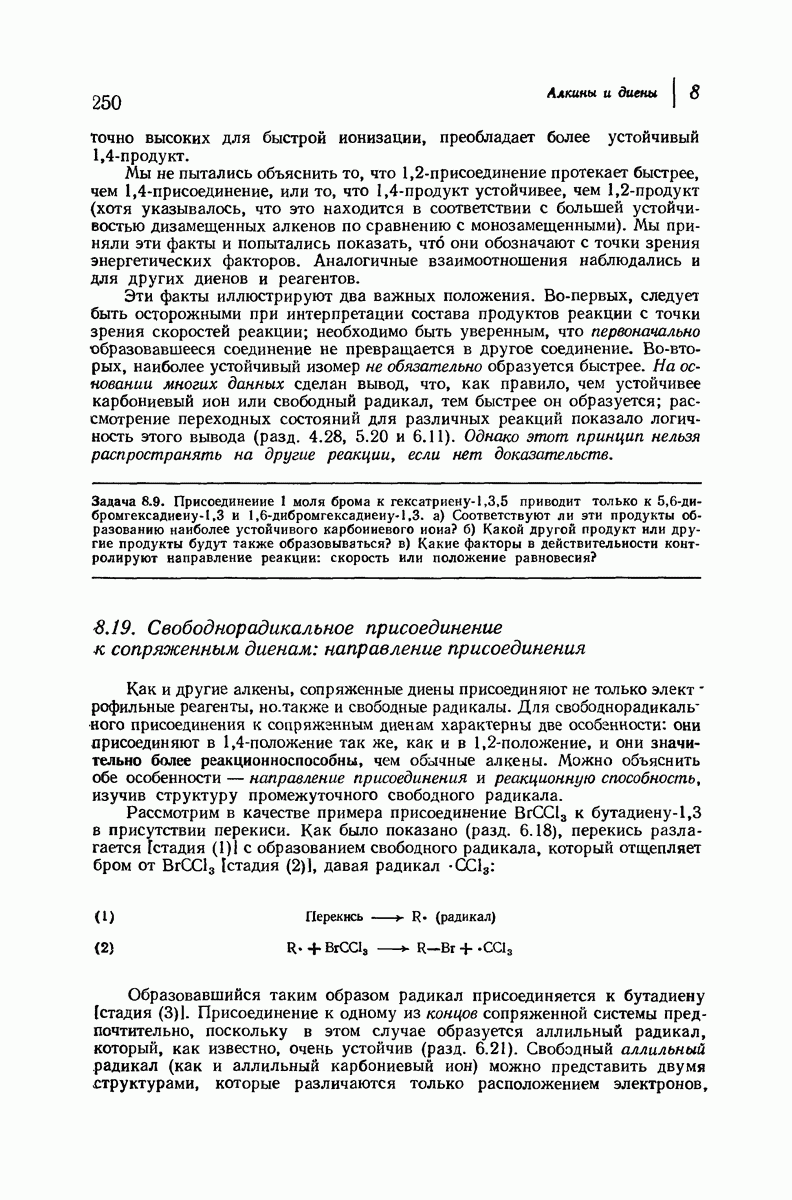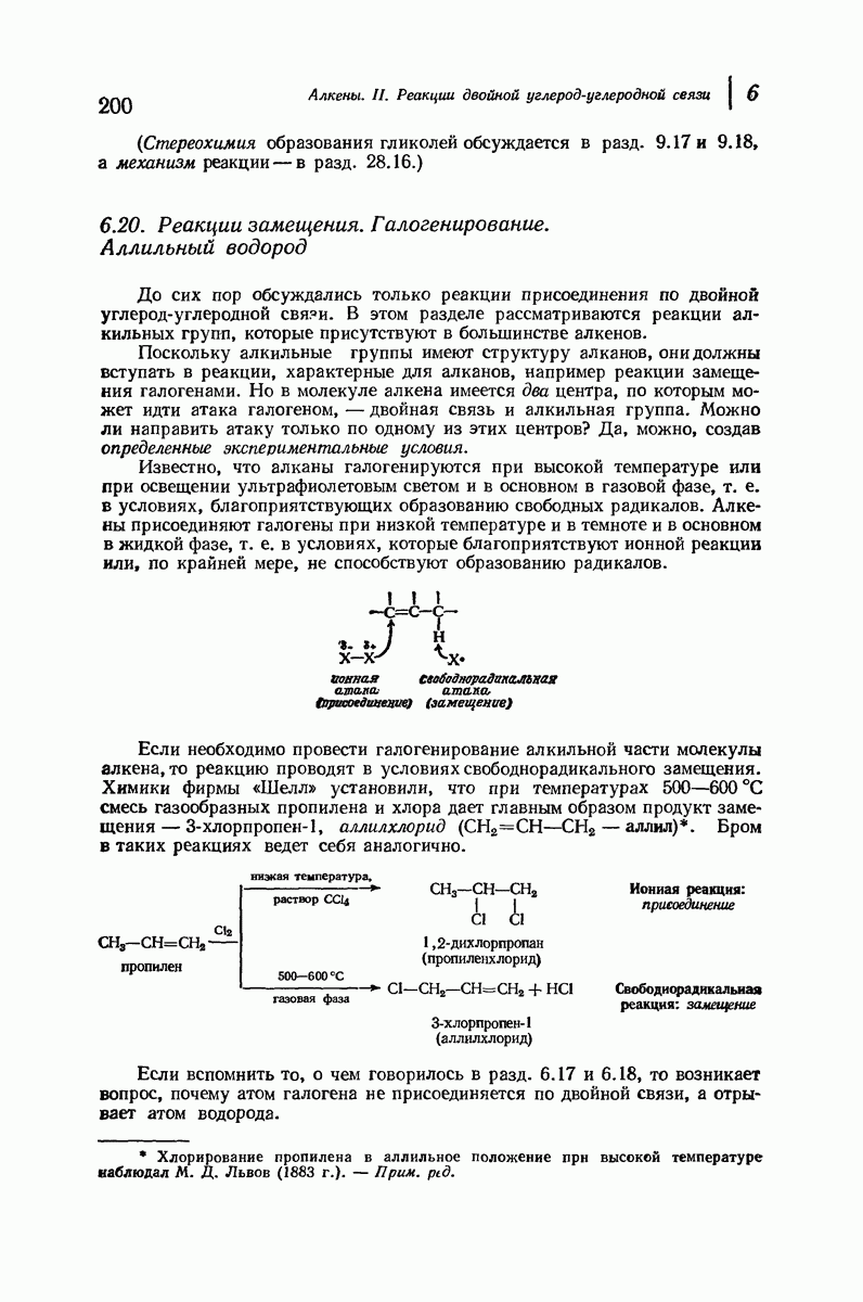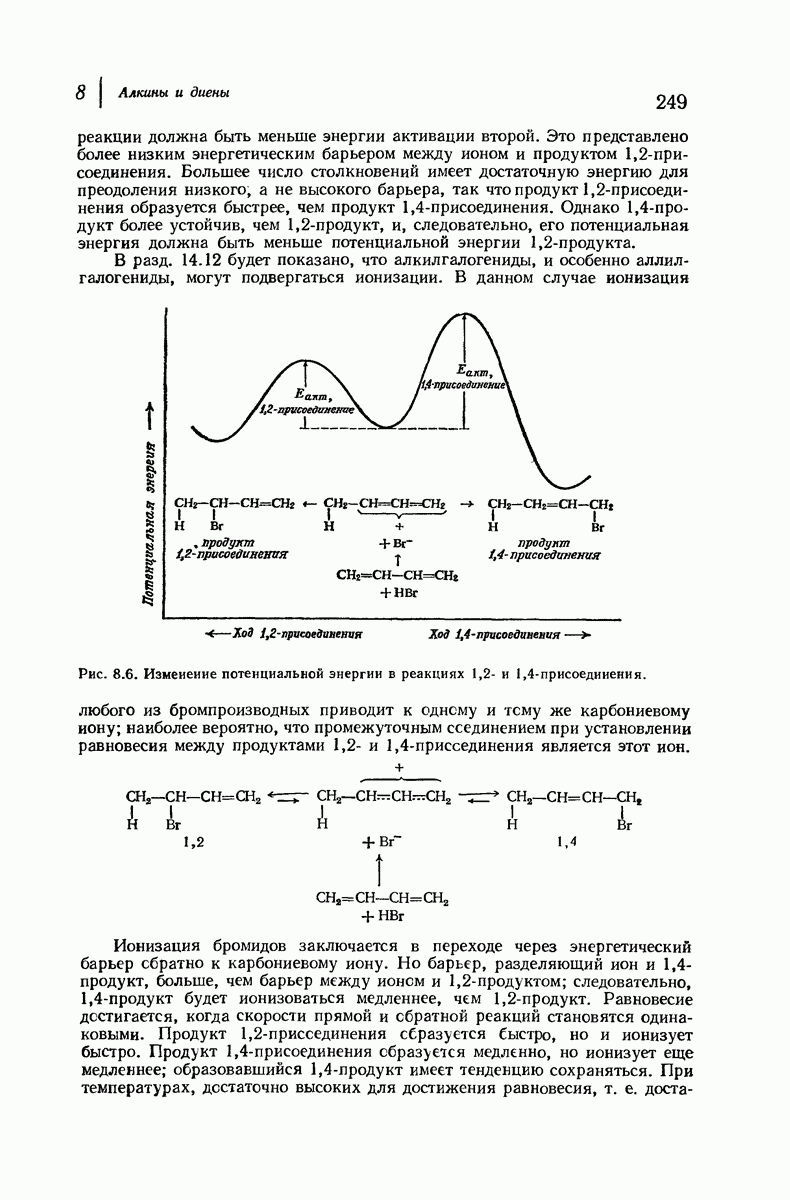 По мере образования енол немедленно реагирует с галогеном [стадия (3)]. Можно было бы ожидать, что непредельный енол будет вступать в реакцию присоединения, и действительно, реакция так и происходит: положительный ион галогена присоединяется с образованием карбониевого иона. Как обычно (разд. 6.11), присоединение происходит таким образом, чтобы получился наиболее устойчивый карбониевый ион.