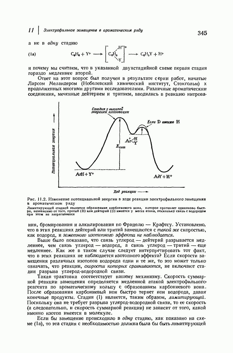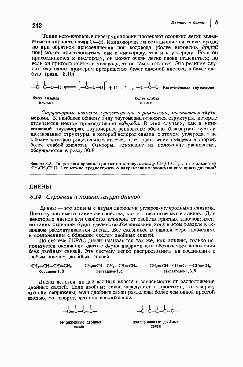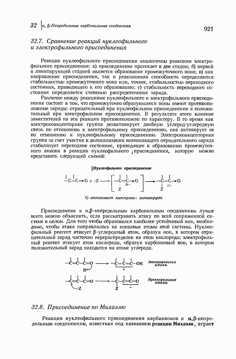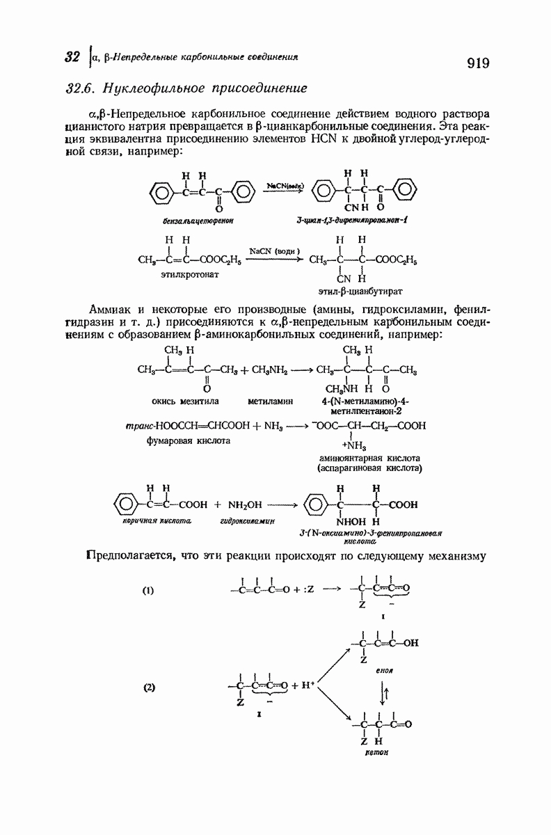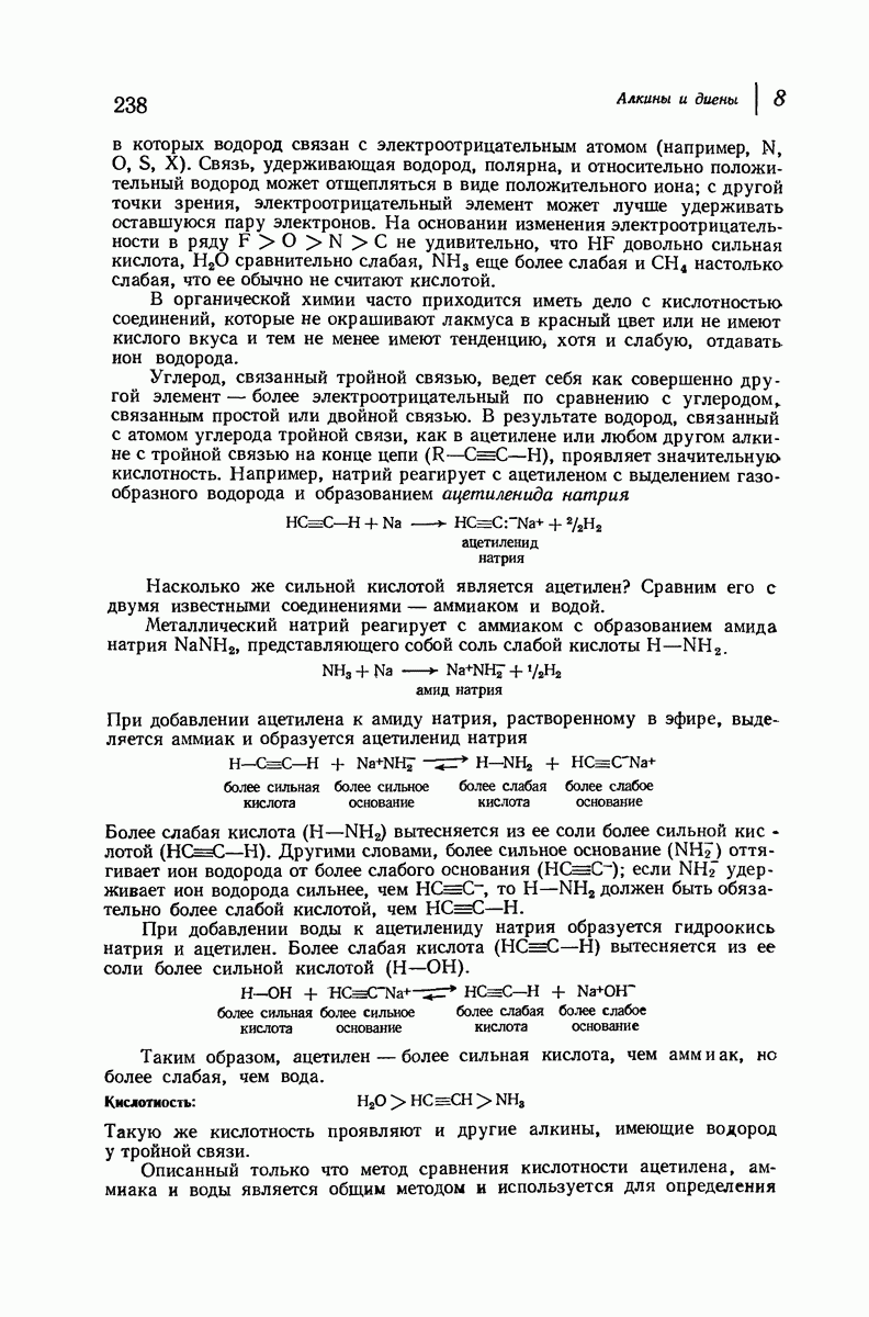 -углеродного атома [стадия (2)] и тем самым завершает енолизацию. Как кислота, так и основание ускоряют лимитирующую стадию (2): основание — непосредственно как один из реагентов, а кислота — косвенно, путем увеличения концентрации другого реагента, протонированного кетона. При использовании сильной минеральной кислоты в водном растворе можно не заметить роли, выполняемой в реакции основанием, поскольку в этих условиях кислотой является