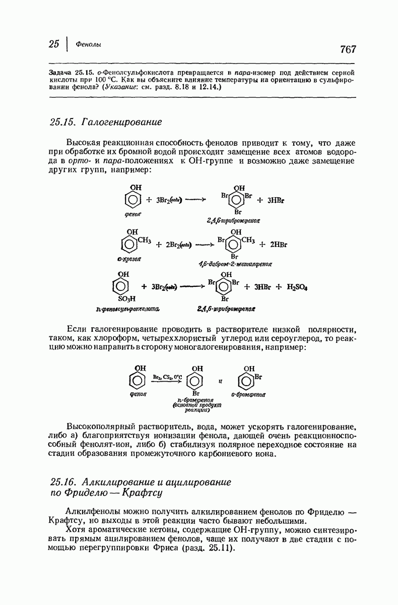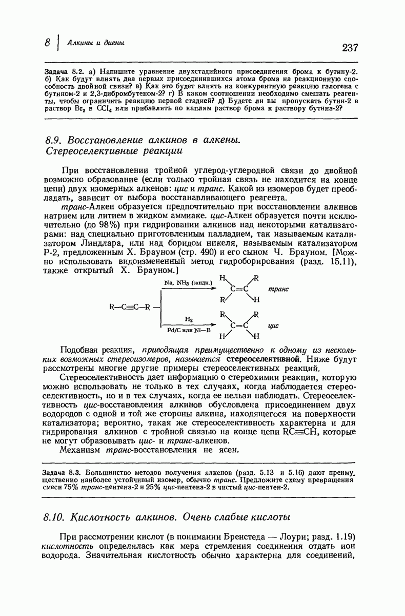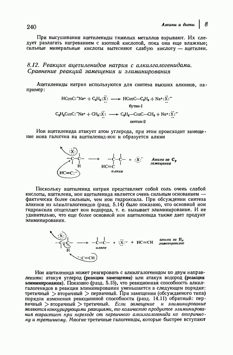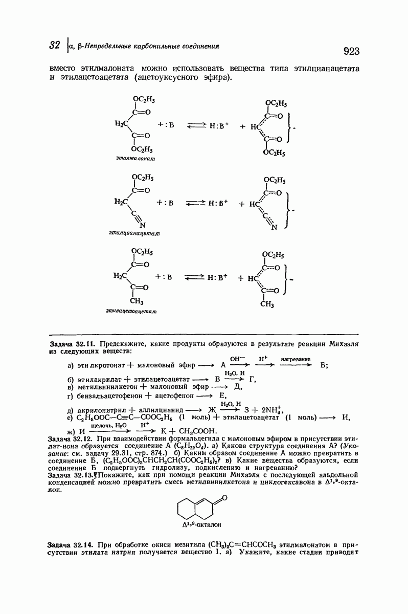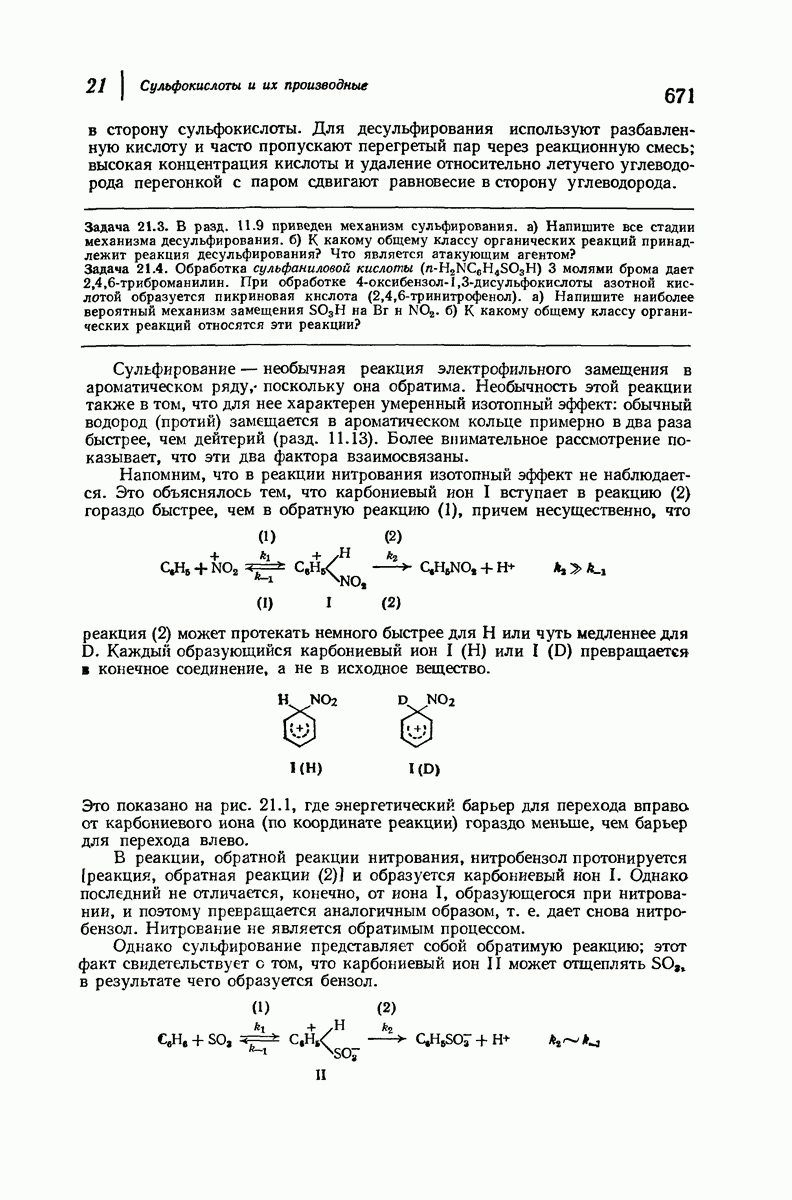 -углеродного атома [стадия (2)] и тем самым завершает енолизацию. Как кислота, так и основание ускоряют лимитирующую стадию (2): основание — непосредственно как один из реагентов, а кислота — косвенно, путем увеличения концентрации другого реагента, протонированного кетона. При использовании сильной минеральной кислоты в водном растворе можно не заметить роли, выполняемой в реакции основанием, поскольку в этих условиях кислотой является