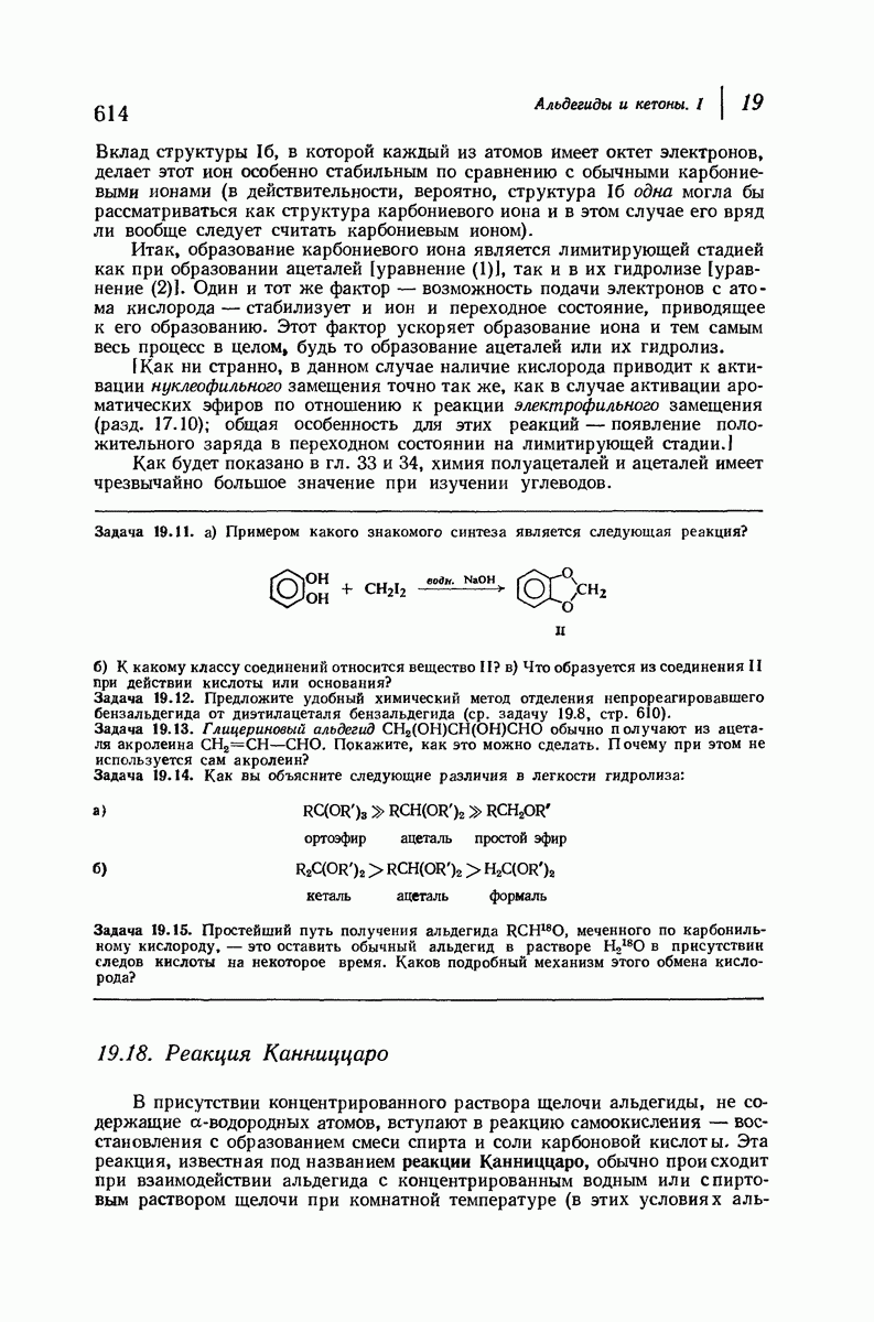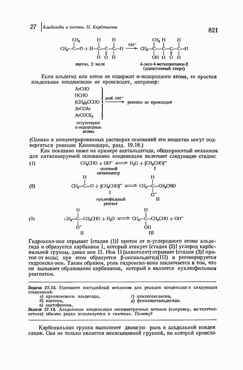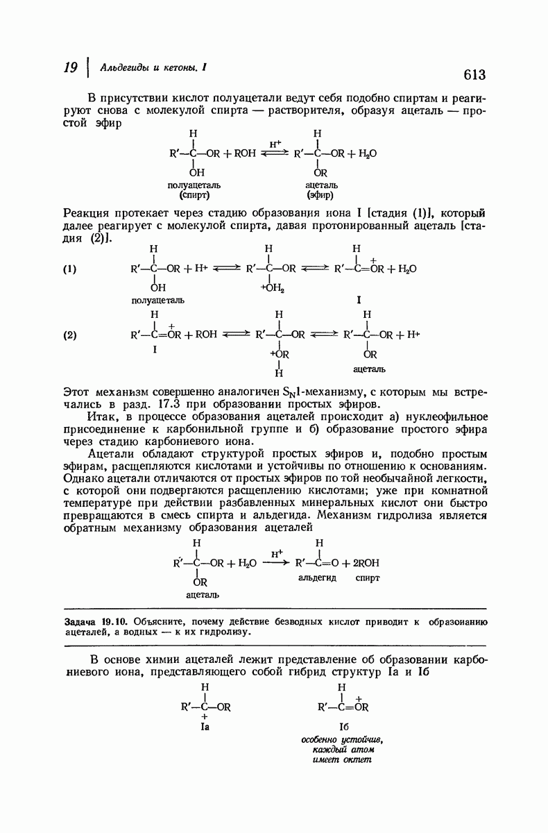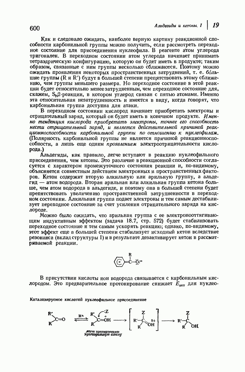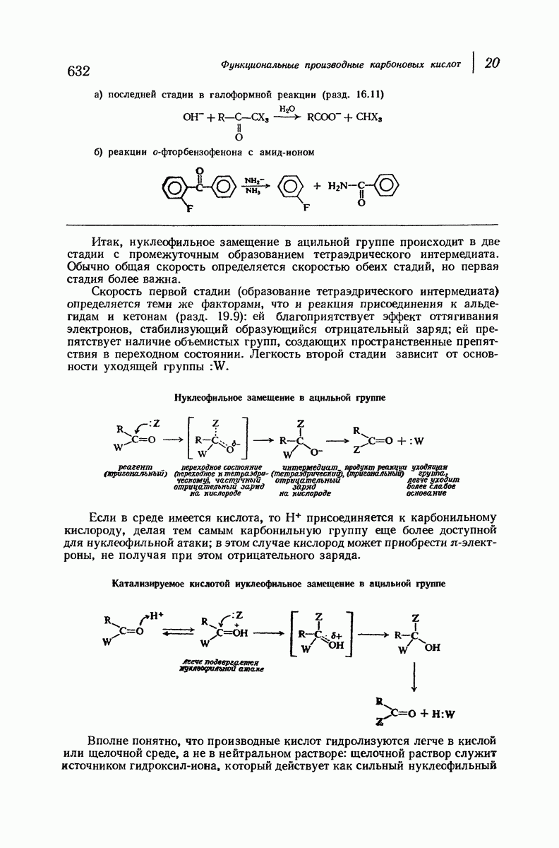 Может показаться странным, что, хотя реакция называется кислотно-катализируемой, лимитирующая стадия (2) по существу та же, что и в реакции, вызываемой основаниями: отрыв