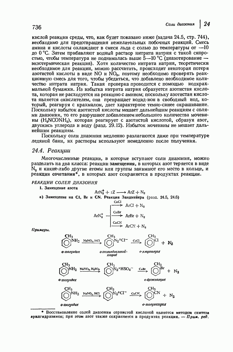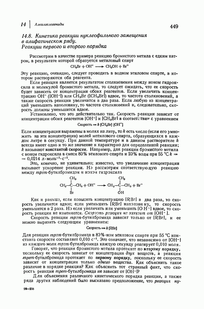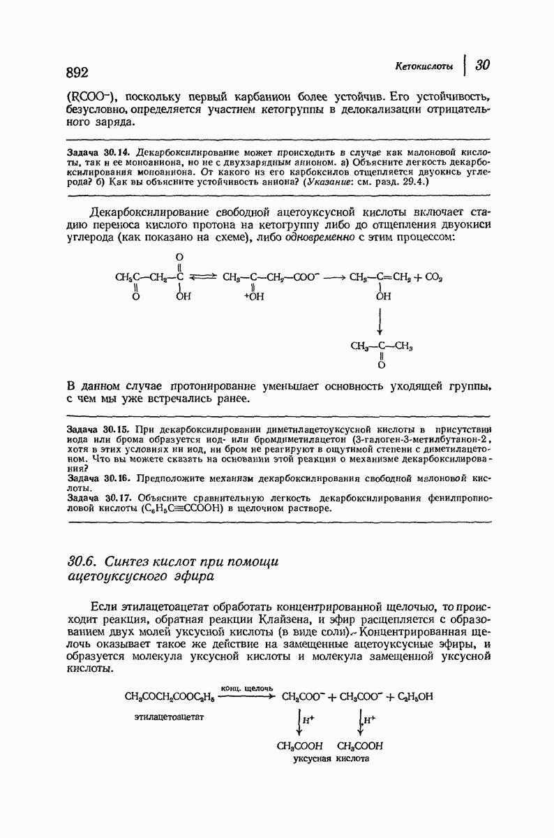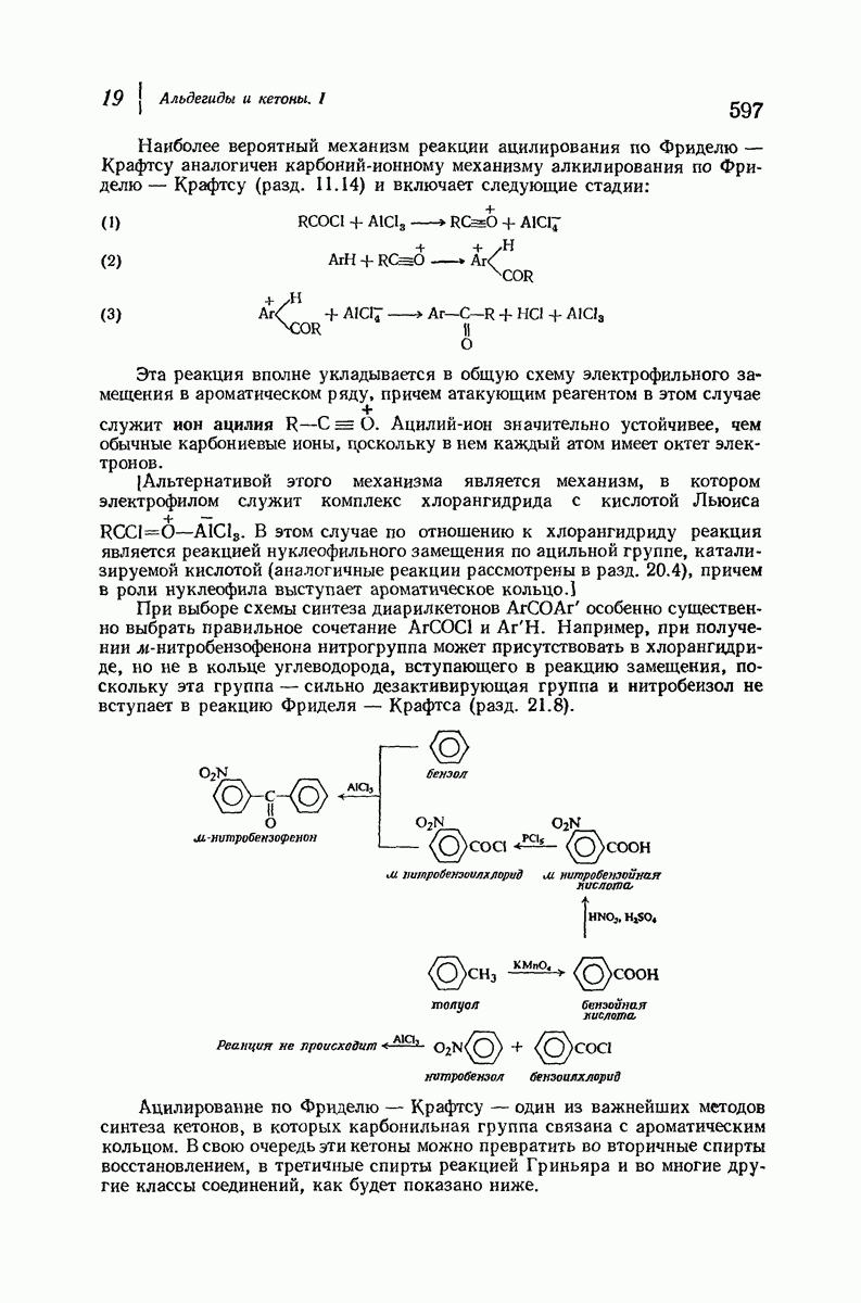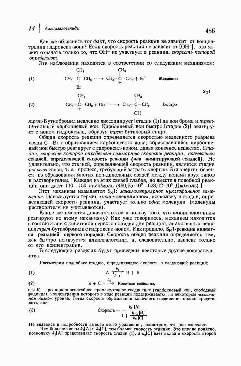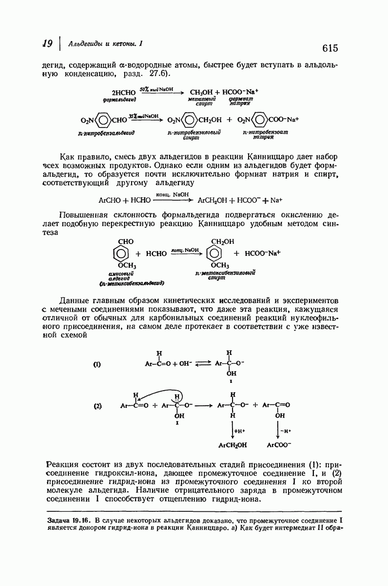 Может показаться странным, что, хотя реакция называется кислотно-катализируемой, лимитирующая стадия (2) по существу та же, что и в реакции, вызываемой основаниями: отрыв