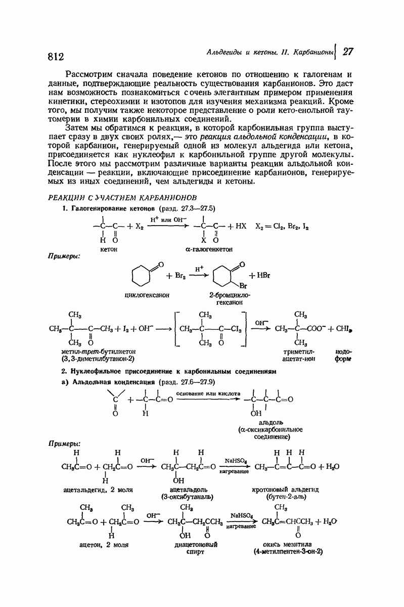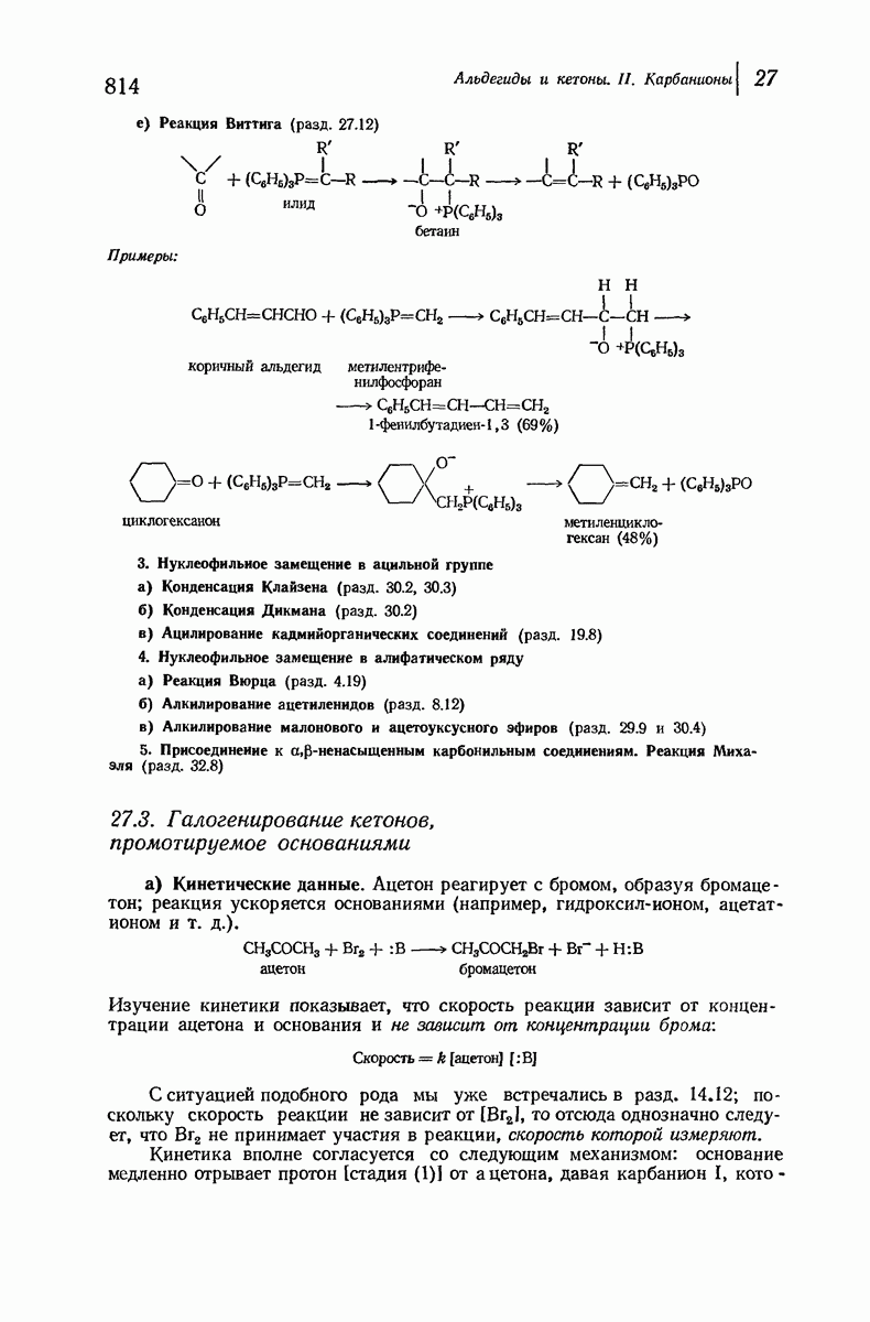 Хотя эта реакция, строго говоря, не относится к разделу химии карбанионов, все же, вероятно, уместно ее рассмотреть здесь, поскольку во всех аспектах она обнаруживает удивительное сходство с рассмотренной выше реакцией галогенирования, вызываемой присутствием оснований.