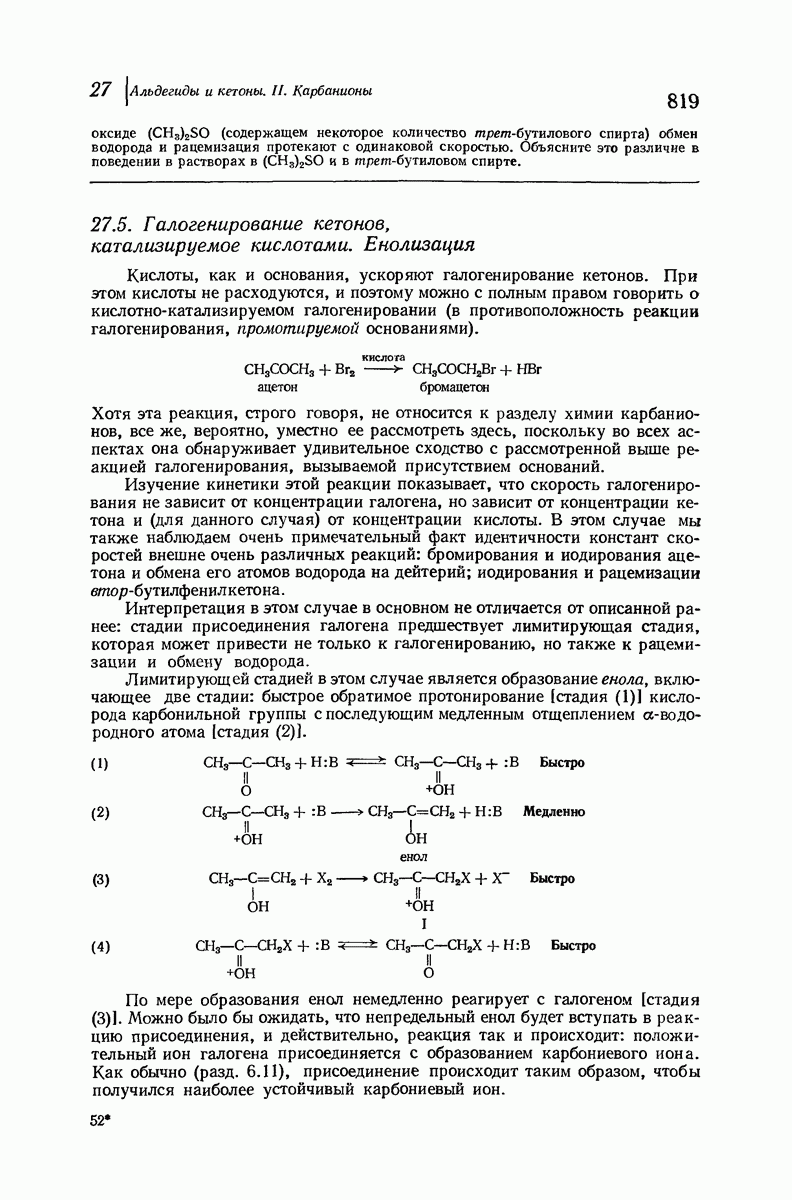 27.5. Галогенирование кетонов, катализируемое кислотами. Енолизация