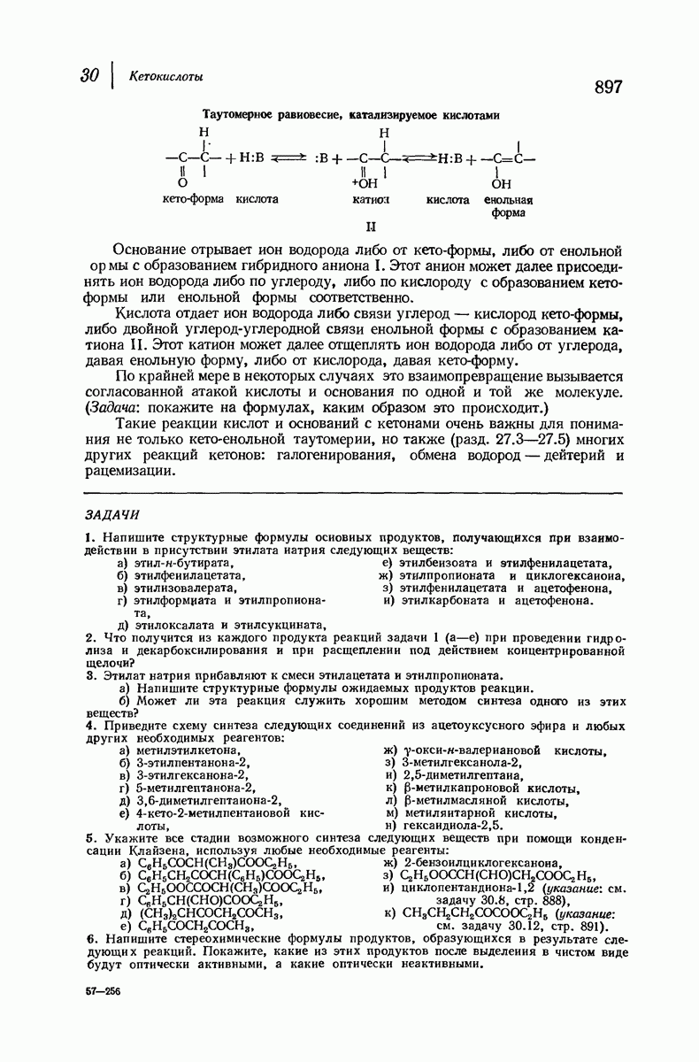 на кислород карбонильной группы [стадия (1)] делает кетон более реакционноспособным и поэтому ускоряет енолизацию. Но если эта реакция является каталитической, то кислота не должна расходоваться. Регенерация кислоты