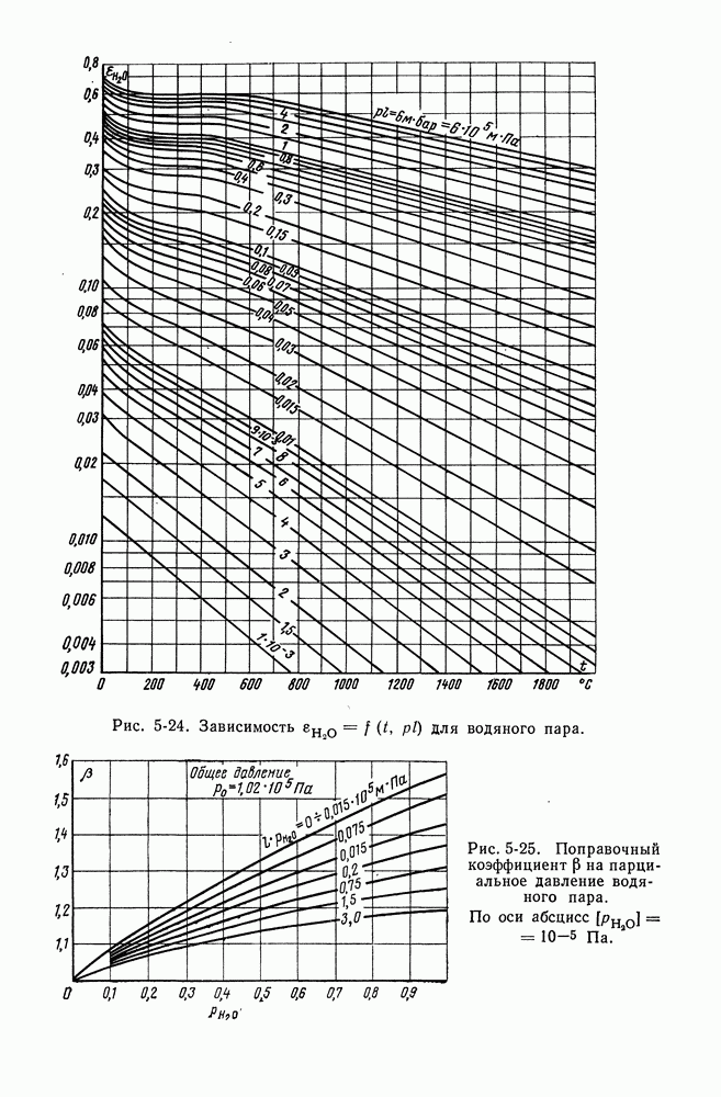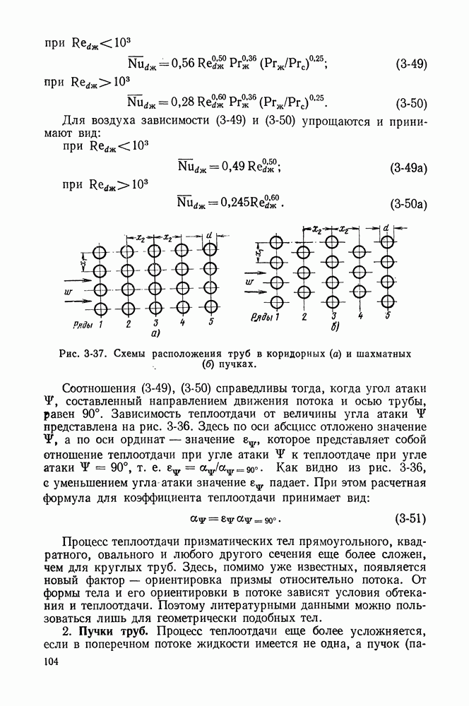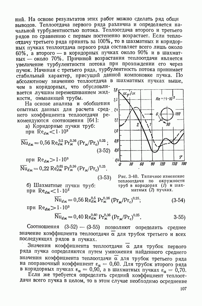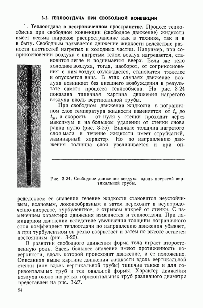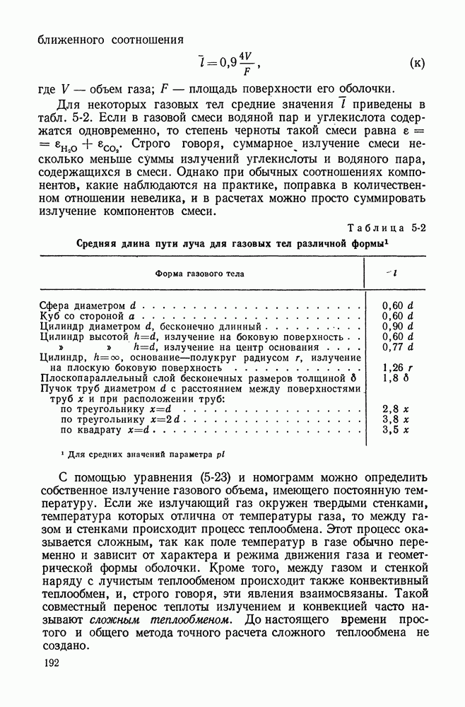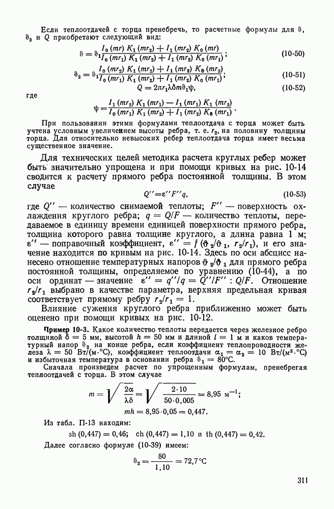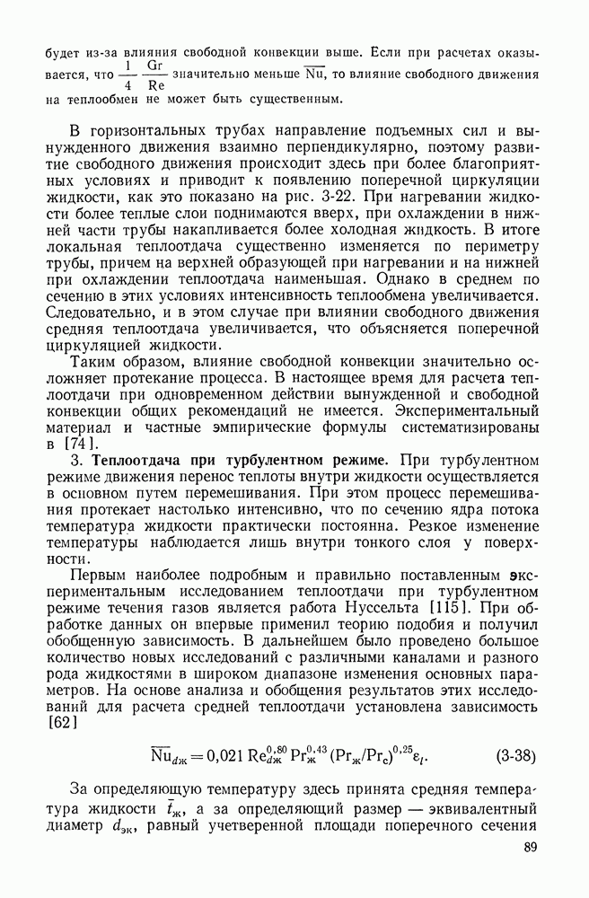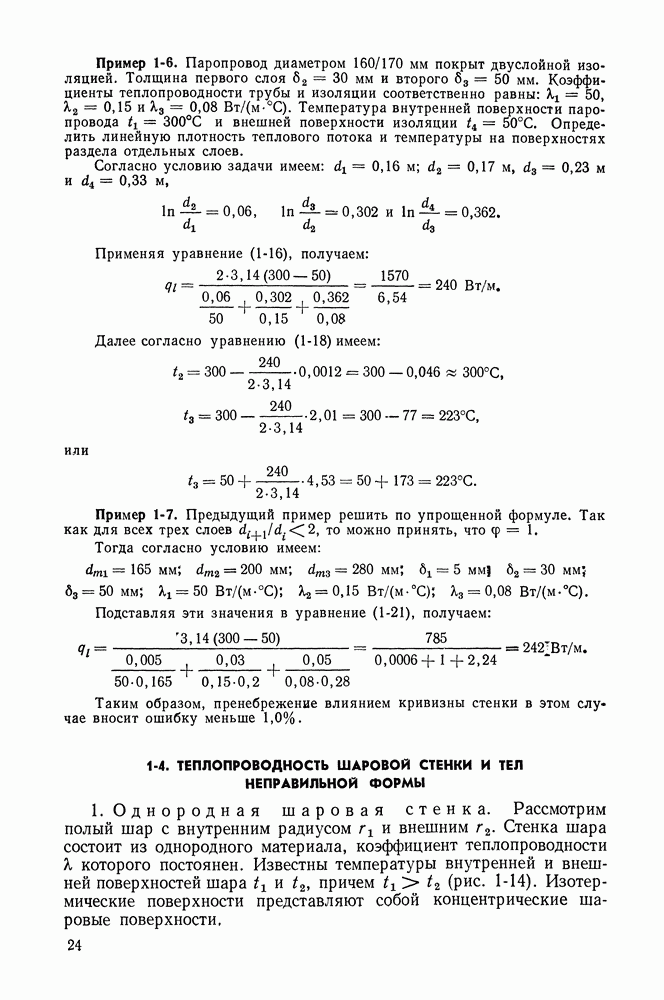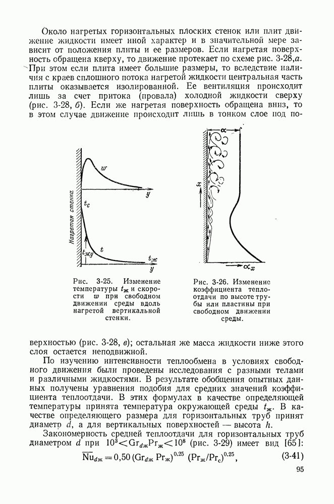 Пример 4-3. Найти коэффициент теплоотдачи и плотность теплового потока, отводимого конвективным путем от поверхности горизонтальной трубы Расчет коэффициента теплоотдачи проводим по формуле (4-13). Определяющая температура Физические свойства водяного пара при этой температуре и атмосферном давлении (см. табл. П-5): Подставляя эти величины в формулу (4-13), имеем:
