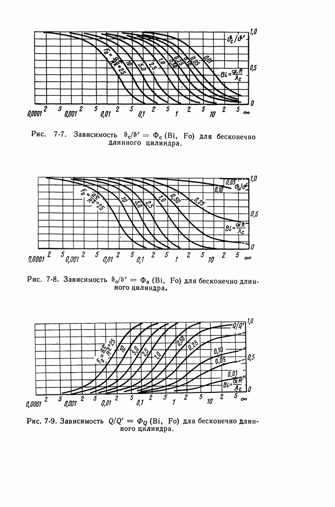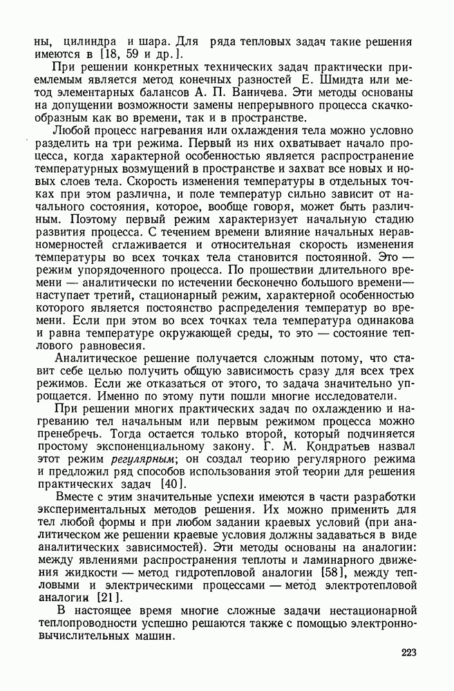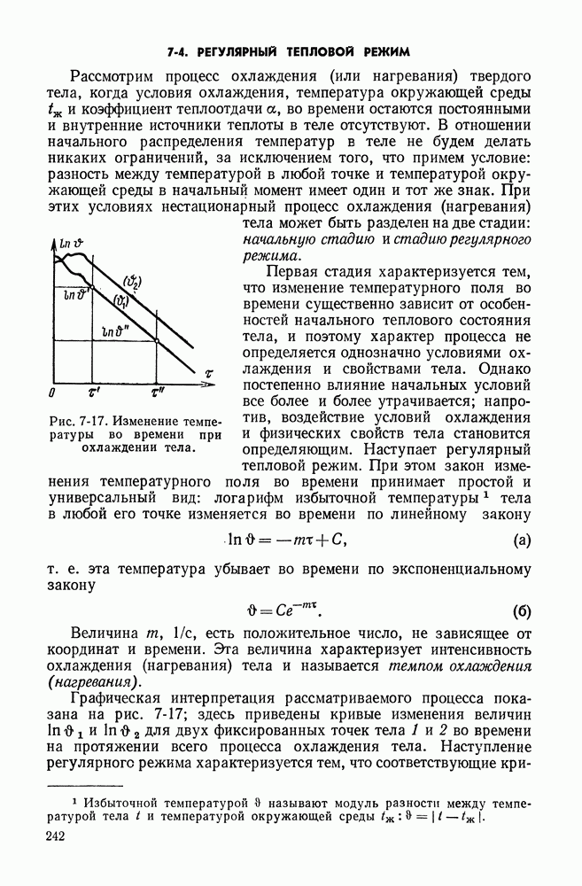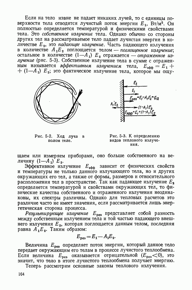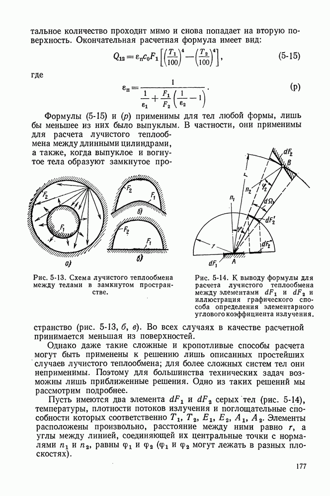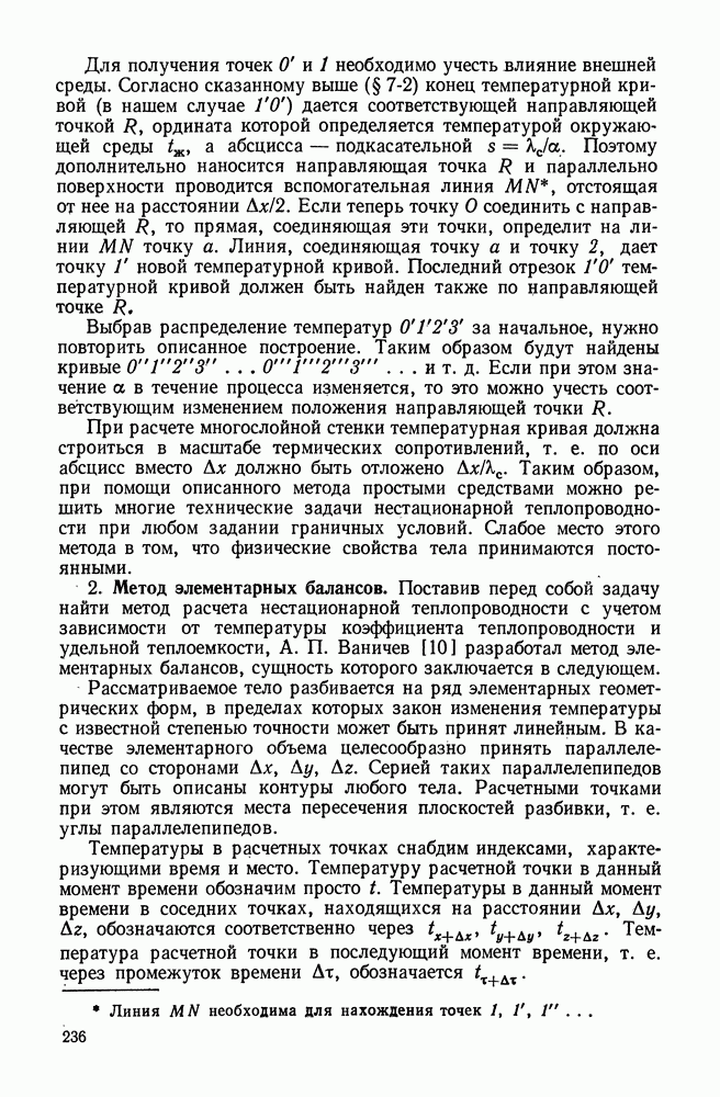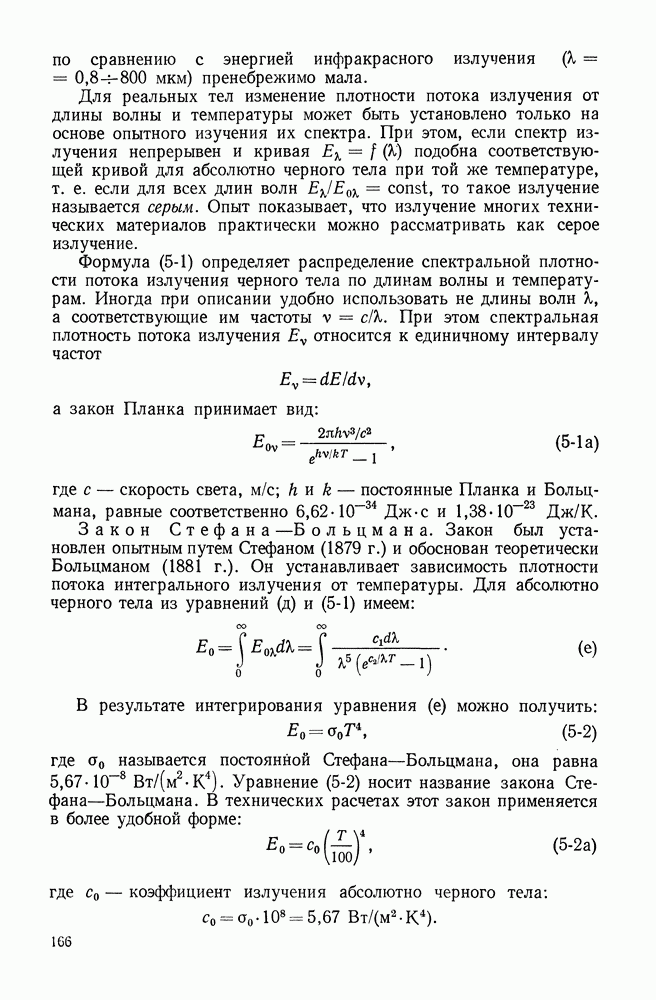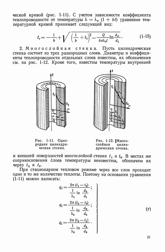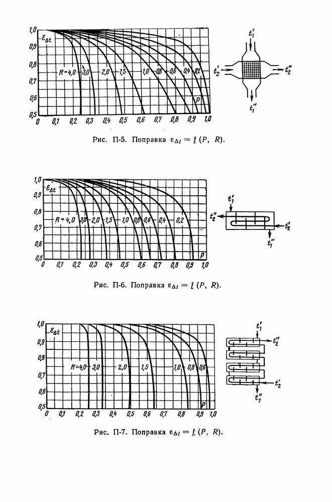 (кликните для просмотра скана) Все три режима кипения можно наблюдать в обратном порядке, если, например, раскаленное массивное металлическое изделие опустить в воду для закалки. Вода закипает, вначале охлаждение тела идет относительно медленно (пленочное кипение), затем скорость охлаждения быстро нарастает (переходный режим), вода начинает периодически смачивать поверхность, и наибольшая скорость снижения температуры поверхности достигается в конечной стадии охлаждения (пузырьковое кипение). В этом примере кипение протекает в нестационарных условиях во времени. Стационарное кипение в переходном режиме на практике может наблюдаться в том случае, когда температура поверхности нагрева поддерживается неизменной за счет контакта этой поверхности с внешней стороны с другим теплоносителем, имеющим более высокую температуру и значительную интенсивность теплоотдачи. Такие условия подвода теплоты можно кратко характеризовать как условия обогрева при Соответственно увеличивается скорость разогрева поверхности. Развитие процесса приобретает кризисный характер. За доли секунды температура материала поверхности нагрева возрастает на сотни градусов, и лишь при условии, что стенка достаточно тугоплавкая, кризис заканчивается благополучно новым стационарным состоянием, отвечающим области пленочного кипения при весьма высокой температуре поверхности. На рис. 4-3 этот кризисный переход от пузырькового режима кипения к пленочному условно показан стрелкой как «перескок» с кривой пузырькового кипения на линию пленочного кипения при той же тепловой нагрузке Вторая особенность состоит в том, что если произошел кризис и установился пленочный режим кипения (поверхность не разрушилась), то при снижении тепловой нагрузки пленочное кипение будет сохраняться, т. е. обратный процесс теперь будет происходить по линии пленочного кипения (рис. 4-3). Лишь при достижении Итак, в условиях фиксированного значения плотности теплового потока q, подводимого к поверхности нагрева, оба перехода от пузырькового к пленочному и обратно носят кризисный характер. Они происходят при критических плотностях теплового потока Отвод теплоты в режиме пузырькового кипения является одним из наиболее совершенных методов охлаждения поверхности нагрева. Он находит широкое применение в атомных реакторах, при охлаждении реактивных двигателей, а также в ряде других технических устройств. На практике широко применяются методы отвода теплоты при кипении жидкости, движущейся внутри труб или каналов различной формы. Так, процессы генерации пара на современных тепловых электрических станциях осуществляются за счет кипения воды, движущейся внутри котельных труб при высоком давлении. Теплота к поверхности труб подводится от раскаленных продуктов сгорания топлива за счет излучения и конвективного теплообмена. Для процесса кипения жидкости, движущейся внутри ограниченного объема трубы (канала), описанные выше условия остаются в силе, но вместе с этим появляется ряд новых особенностей. На развитие процесса может влиять скорость вынужденного движения жидкости или пароводяной смеси. Кроме того, сама структура двухфазного потока (характер распределения паровой и жидкой фаз внутри канала) также имеет важное значение для развития процесса кипения и возникно