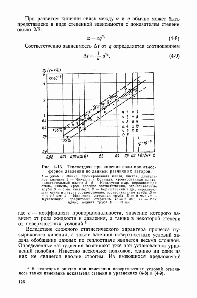 (кликните для просмотра скана) При развитом кипении связь между а и q обычно может быть представлена в виде степенной зависимости с показателем степени около 2/3: