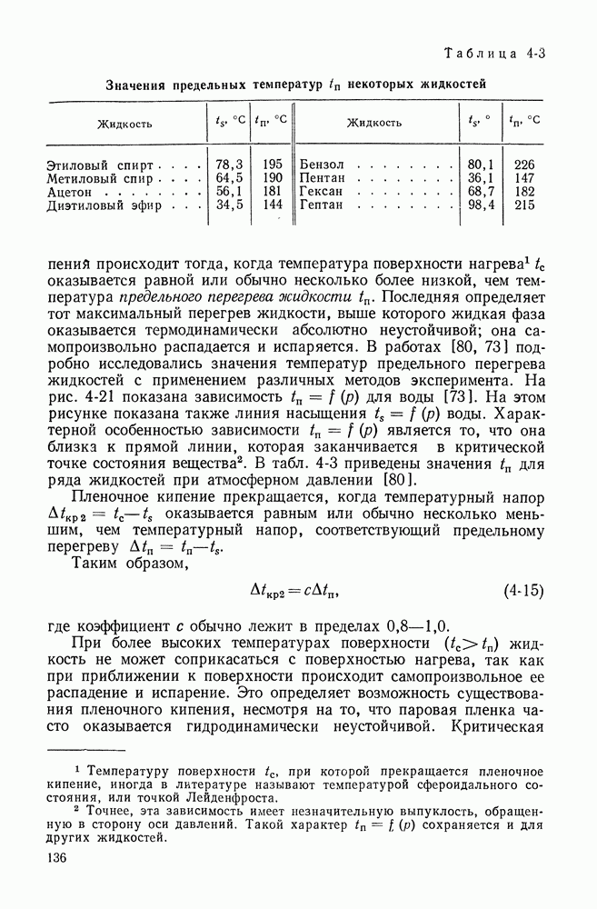 где коэффициент с обычно лежит в пределах 0,8—1,0. При более высоких температурах поверхности Критическая плотность теплового потока при прекращении пленочного режима кипения