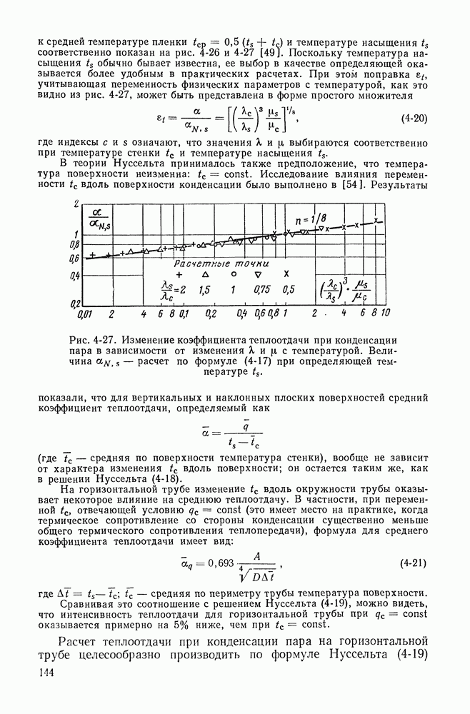 где Физические свойства в этой формуле (за исключением плотности жидкости р) относятся к паровой фазе. Их следует выбирать по средней температуре пара: