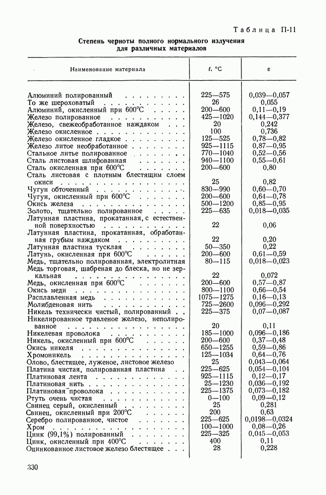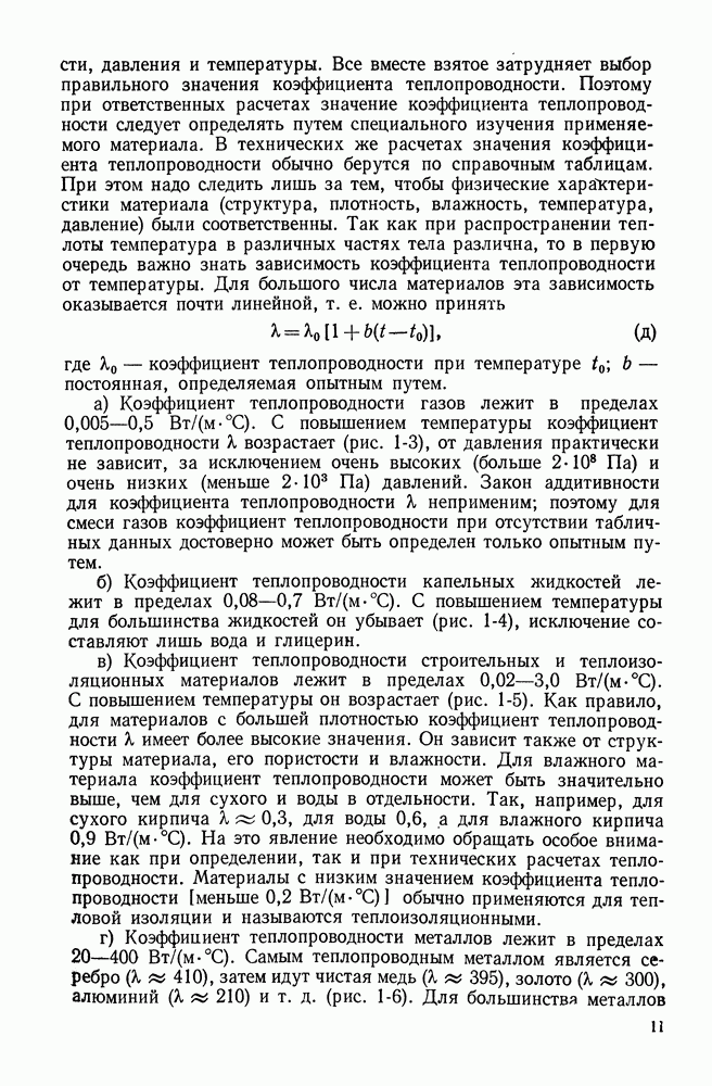 Рис. 4-13. Теплоотдача при кипении воды при атмосферном давлении по данным различных авторов. 1 — Якоб и Линке, хромированная плита, чистая, длительное кипение; 2 — Чикелли и Бонилла, хромированная плита, незначительный налет; 3—6 — Кольчугин и др.. нержавеющая сталь, никель, хром, серебро соответственно, горизонтальные трубы D = 5 мм. чистые; 7, 8 — Боришанский и др.. нержавеющая сталь и латунь соответственно, горизонтальные трубы D = 4—5 мм; 9 — Минченко, латунная труба D = 9 мм; 10 — Кутателадзе, графитовый стержень D = 2 мм; 11 — Мак Адамс, медная труба D = 13 мм. Вследствие сложного статистического характера процесса пузырькового кипения, а также влияния поверхностных условий задача обобщения данных по теплоотдаче является весьма сложной. Определенные затруднения возникают уже при установлении уравнений подобия. Известно несколько подходов, однако ни один из них не является вполне строгим. Из имеющихся предложений в этом направлении наиболее последовательным является анализ, проведенный в [45]. Автор [51] предложил прямой приближенный метод описания теплоотдачи. В целом при достаточно развитом кипении, когда вблизи поверхности нагрева объемное паросодержание становится значительным, высокая интенсивность теплоотдачи при кипении определяется малым термическим сопротивлением тонкой жидкостной прослойки, остающейся на самой поверхности нагрева. Наличие такой прослойки во всей области пузырькового кипения подтверждается результатами ряда экспериментальных работ, связанных с изучением механизма кипения. Перенос теплоты через этот пристенный слой жидкости вследствие его малой толщины осуществляется в основном, по-видимому, путем теплопроводности. Поэтому если обозначить некоторую осредненную во времени и по поверхности эффективную толщину такой пленки через