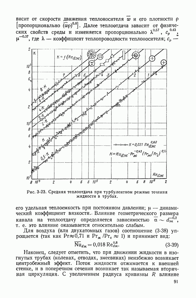 связывающая коэффициент теплоотдачи а с плотностью теплового потока q и физическими свойствами жидкости. Величина Соотношение (в) с учетом приведенных выше соображений может быть положено в основу анализа и обобщения экспериментальных данных по теплоотдаче при развитом пузырьковом кипении. Рассмотрение проведенных исследований и опытных данных показывает, что для расчета теплоотдачи может быть рекомендована зависимость
