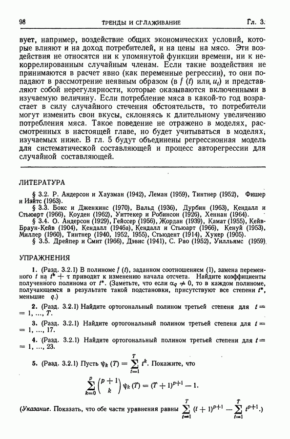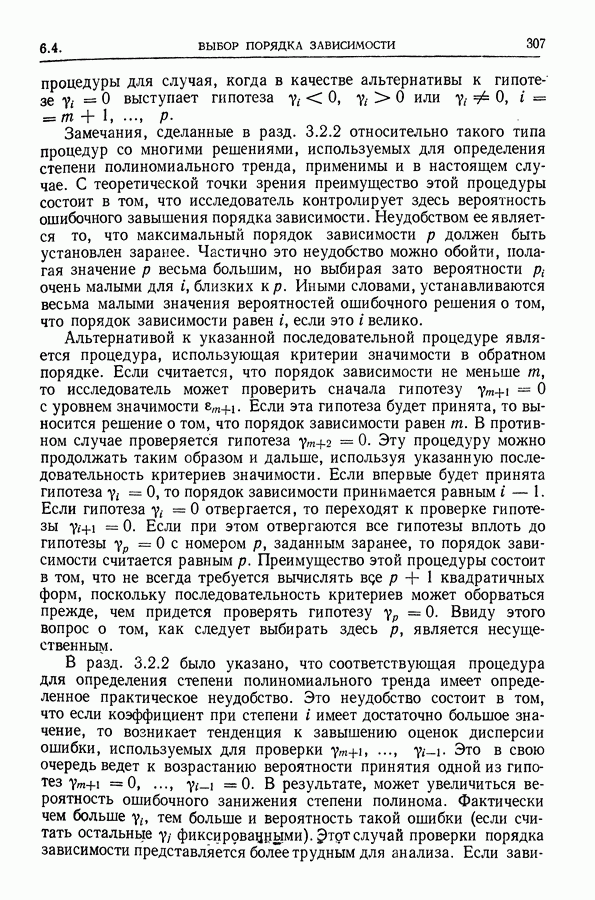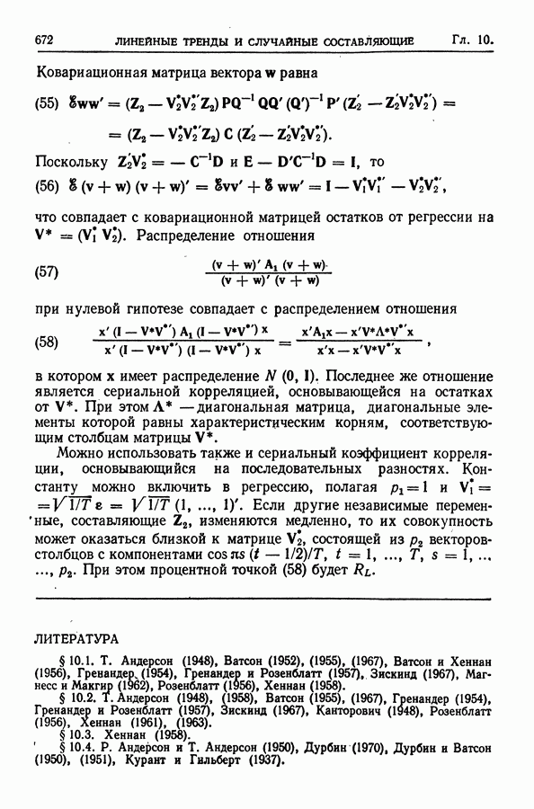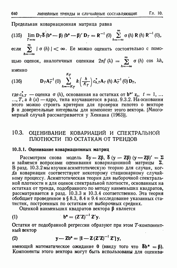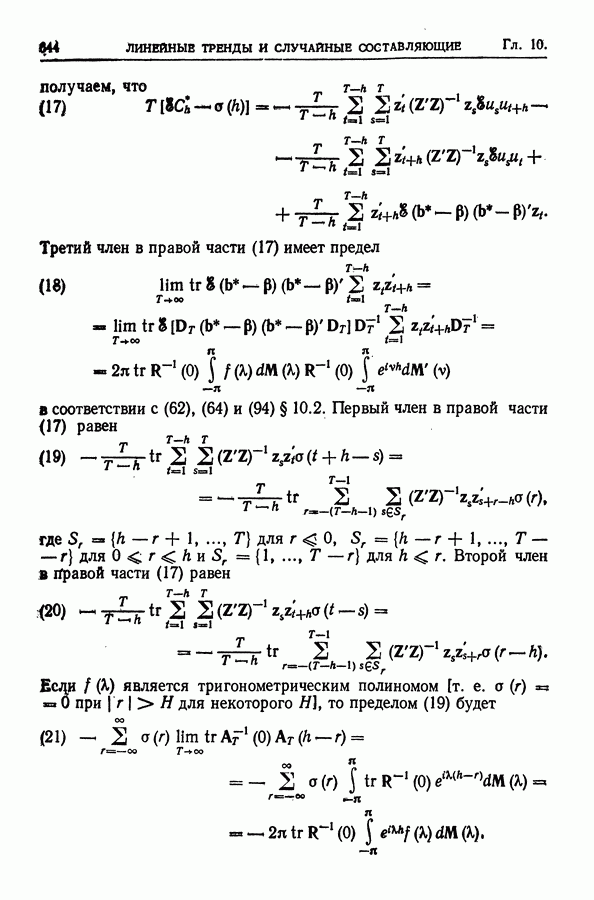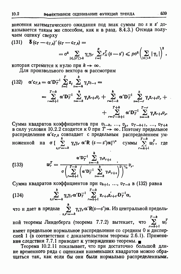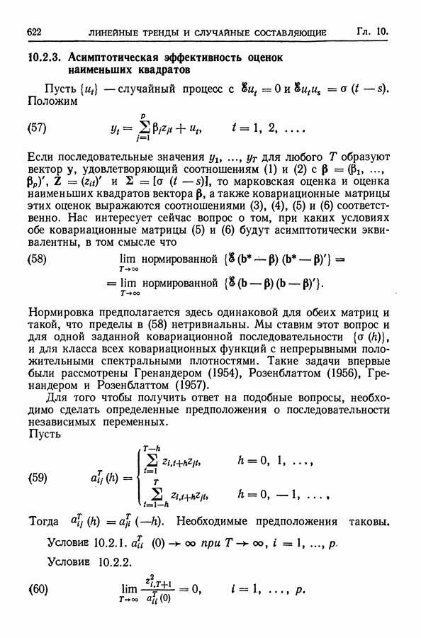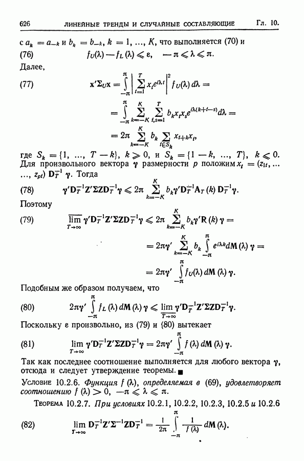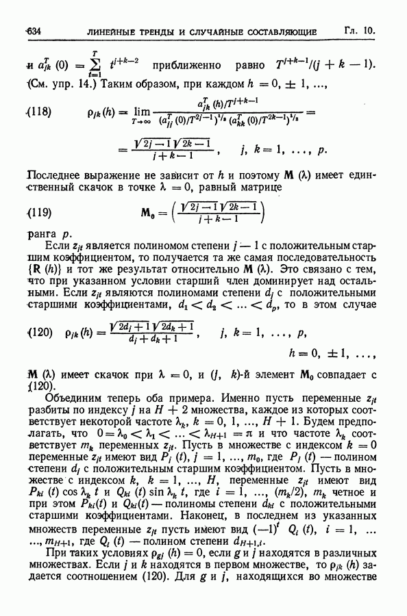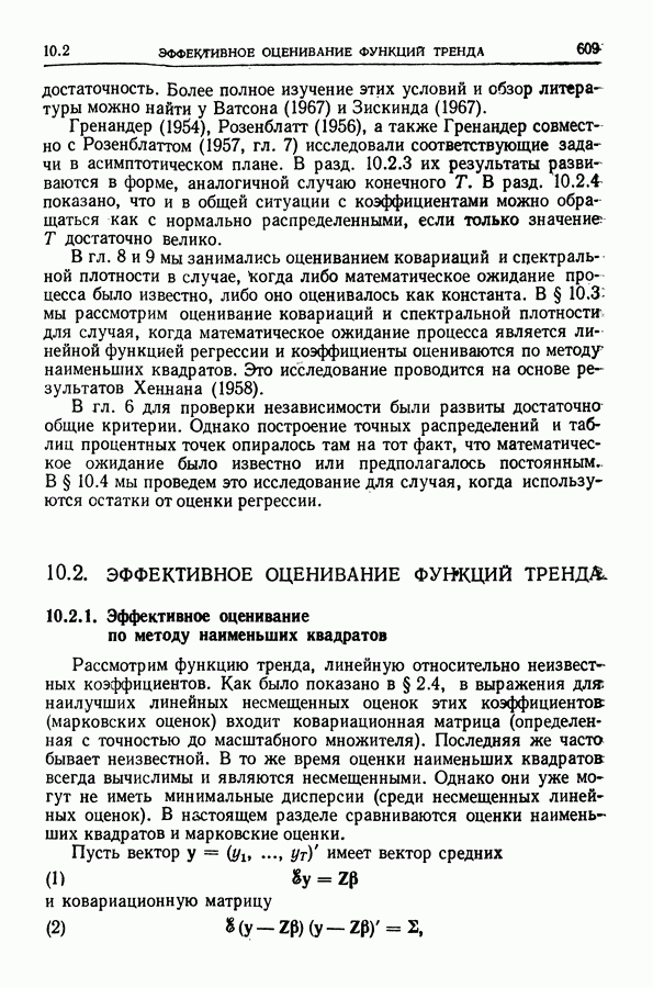 В гл. 10 изучаются статистические процедуры, используемые при анализе тренда в предположении, что случайные составляющие образуют стационарный случайный процесс. При изложении регрессионного анализа определенное место уделяется асимптотической теории, которую можно использовать и при нарушении предположения о нормальном распределении случайных составляющих (§ 2.6).