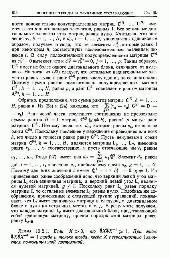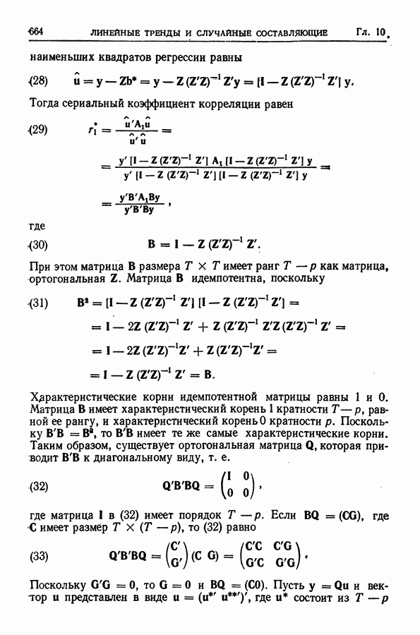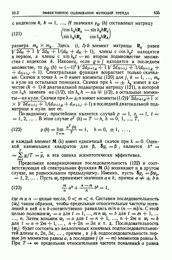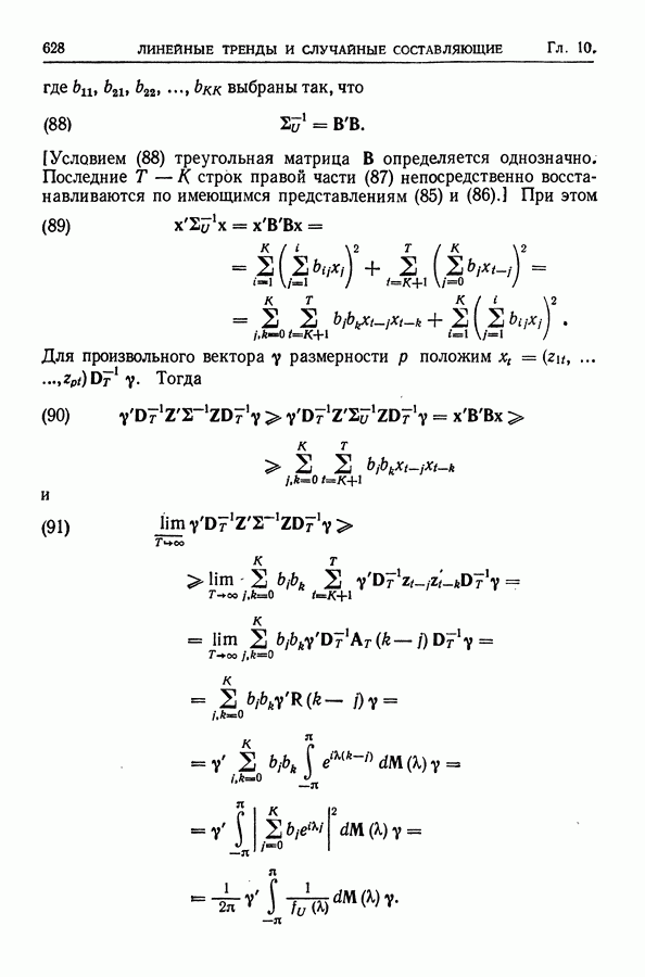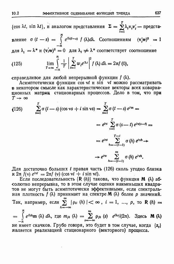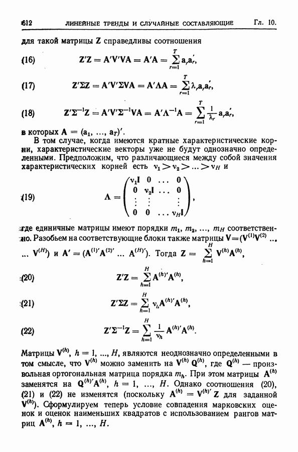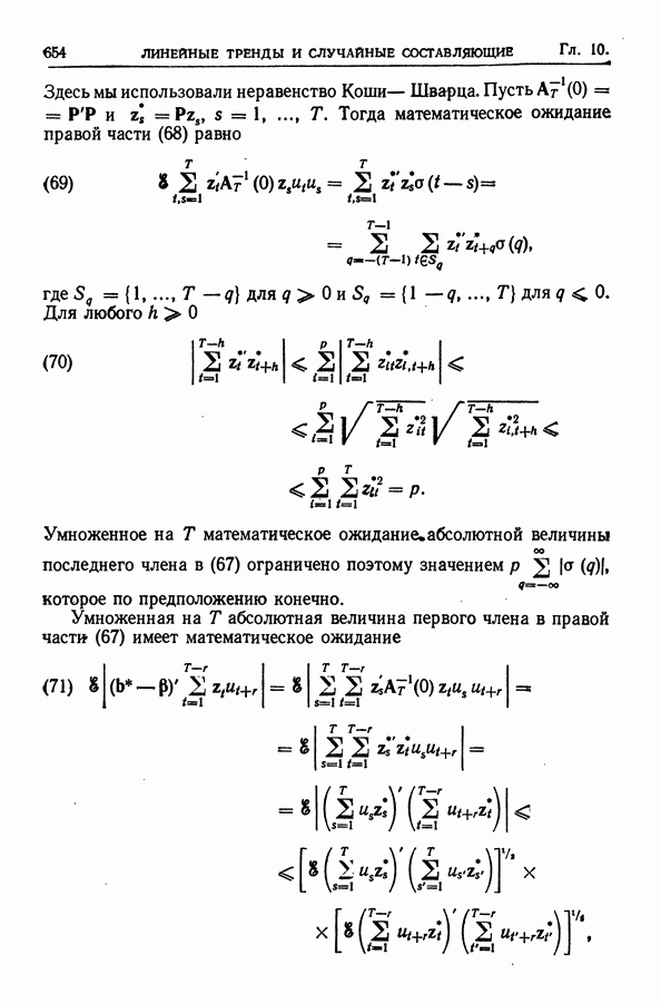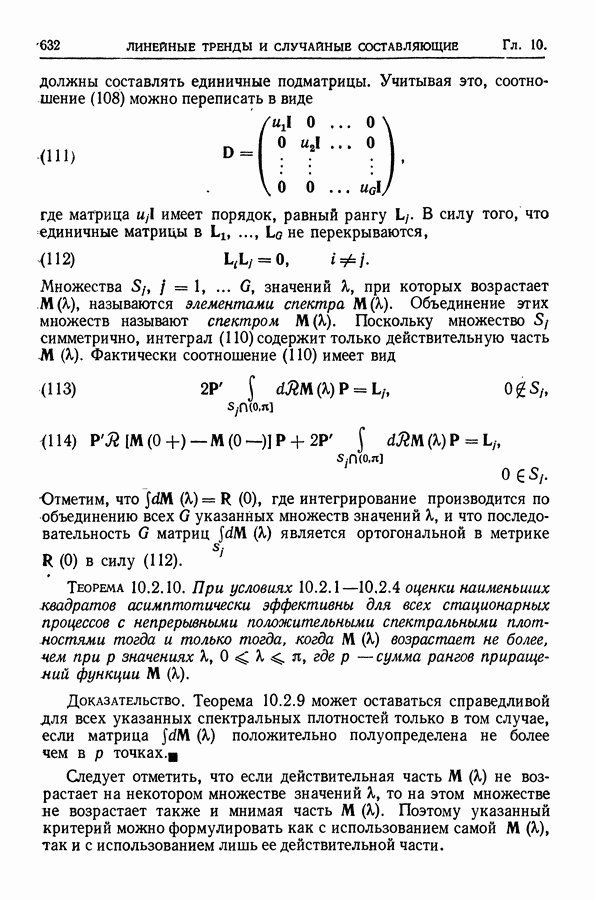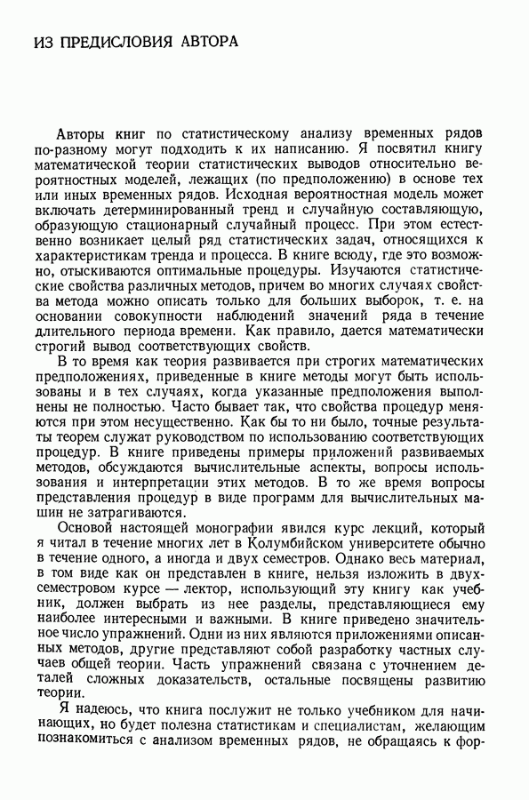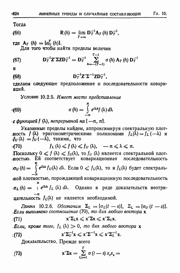 В гл. 10 изучаются статистические процедуры, используемые при анализе тренда в предположении, что случайные составляющие образуют стационарный случайный процесс. При изложении регрессионного анализа определенное место уделяется асимптотической теории, которую можно использовать и при нарушении предположения о нормальном распределении случайных составляющих (§ 2.6).
