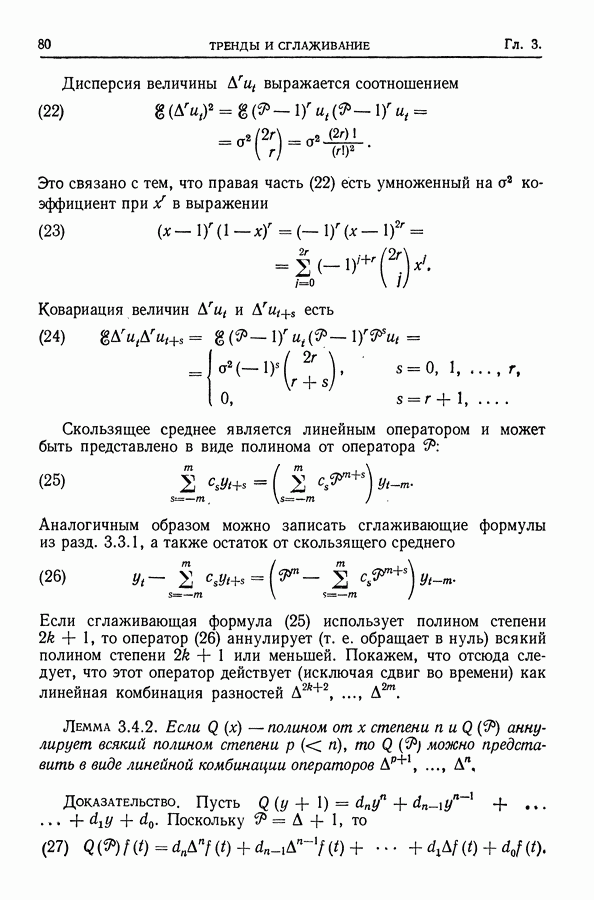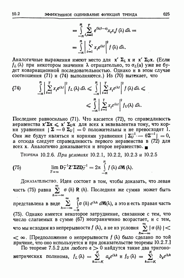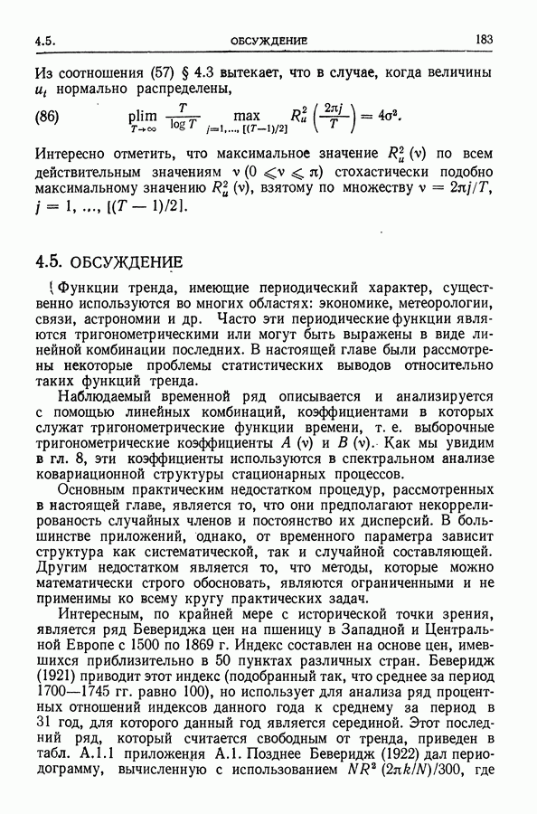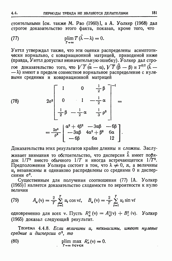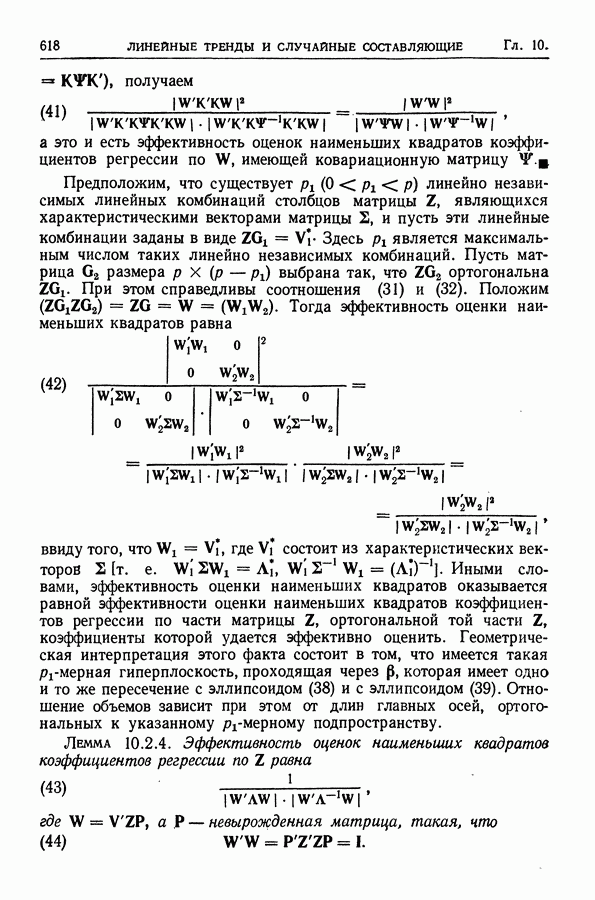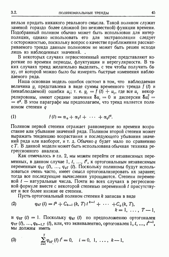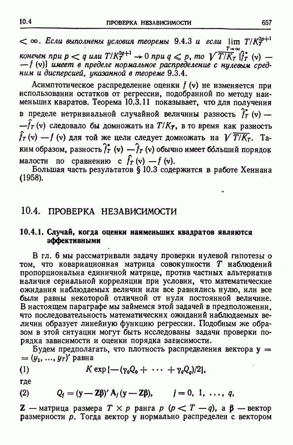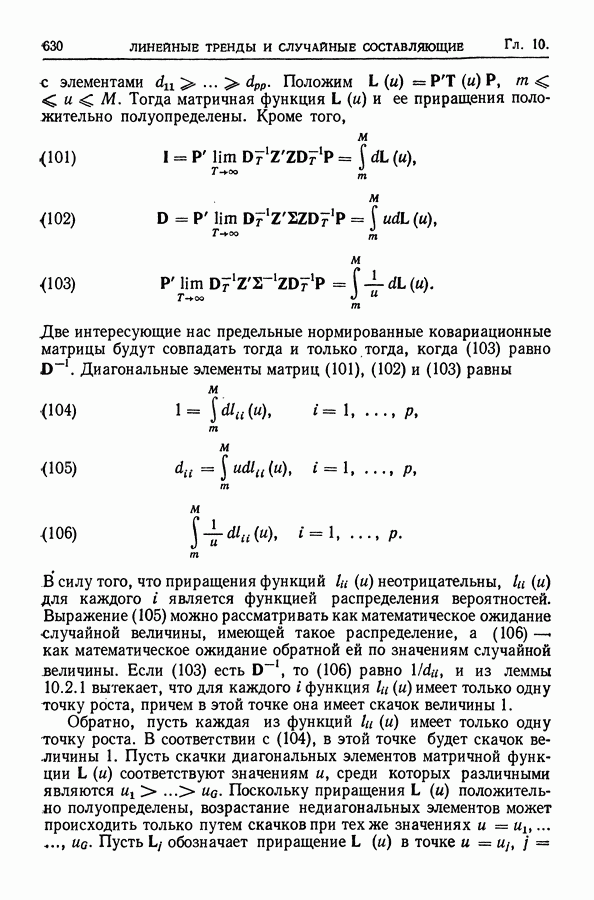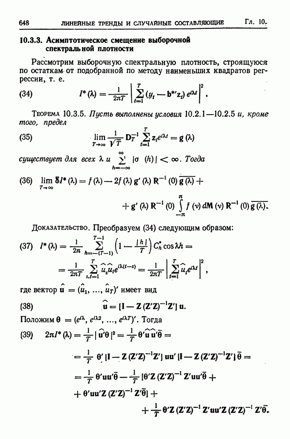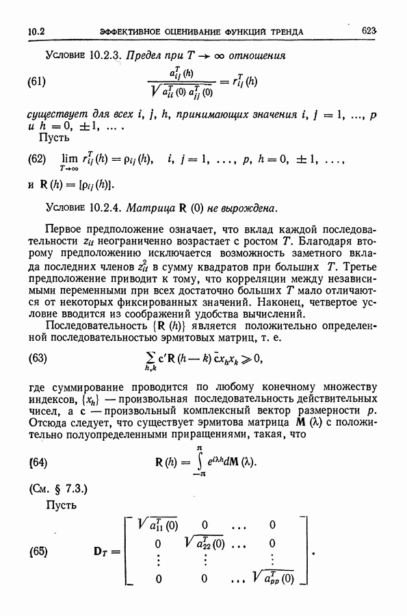 В гл. 10 изучаются статистические процедуры, используемые при анализе тренда в предположении, что случайные составляющие образуют стационарный случайный процесс. При изложении регрессионного анализа определенное место уделяется асимптотической теории, которую можно использовать и при нарушении предположения о нормальном распределении случайных составляющих (§ 2.6).