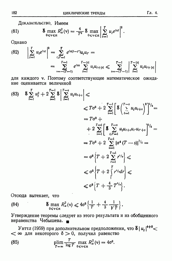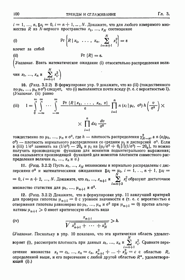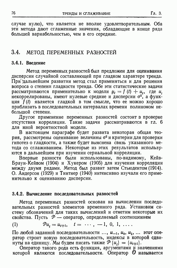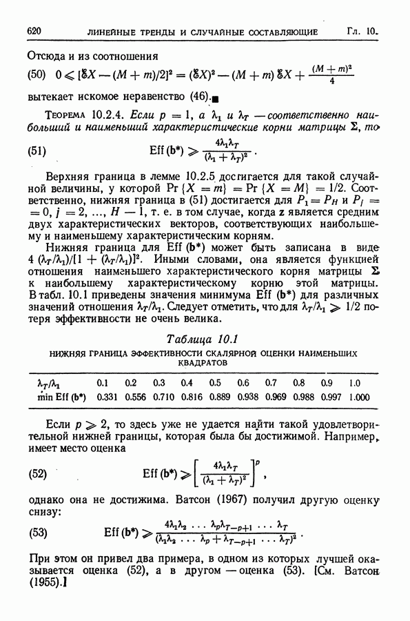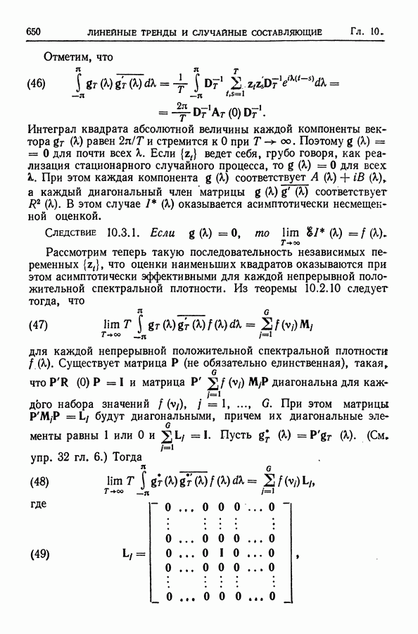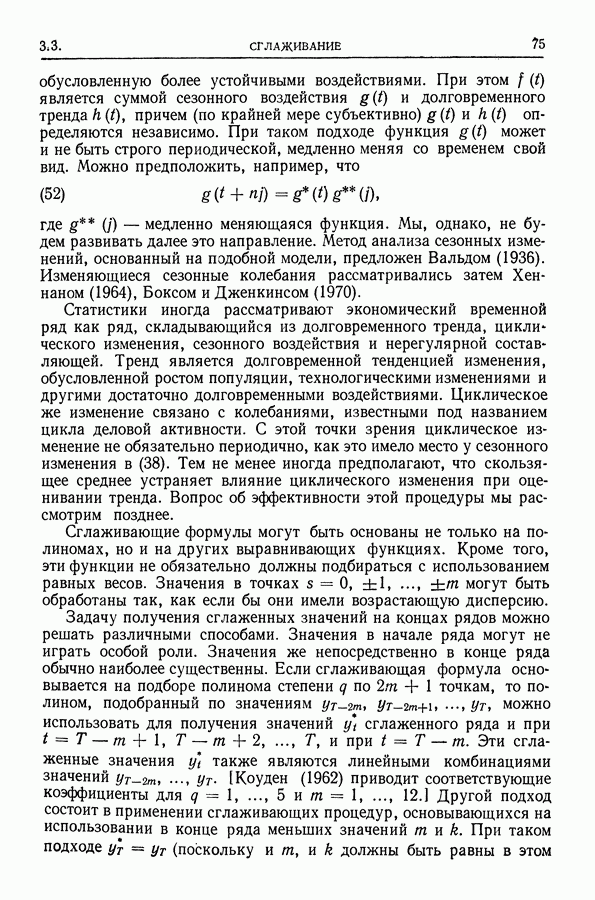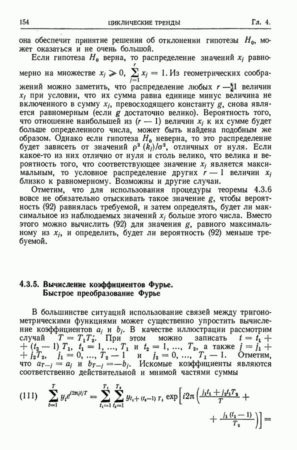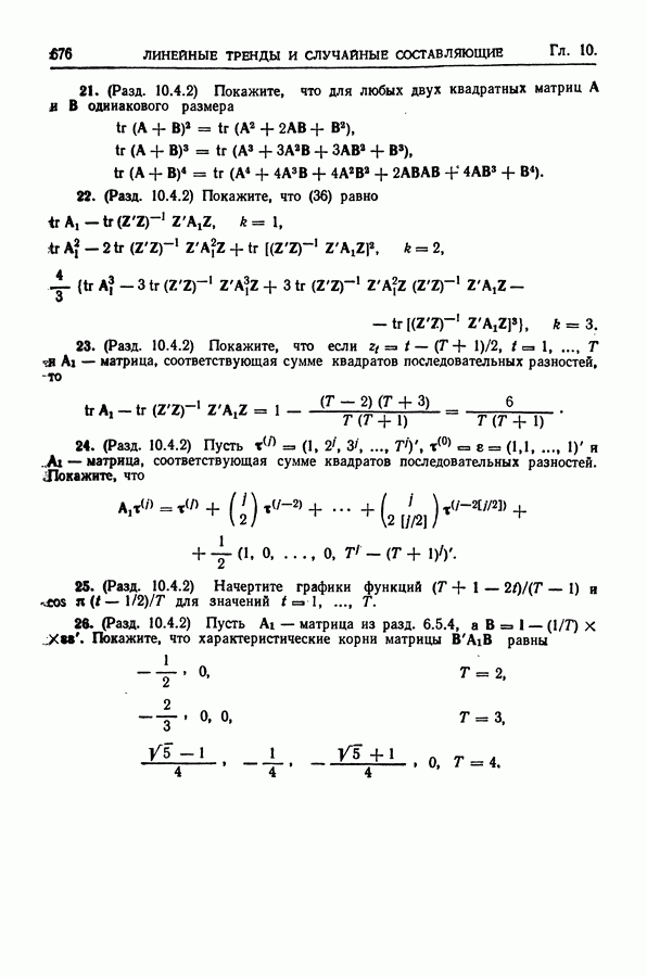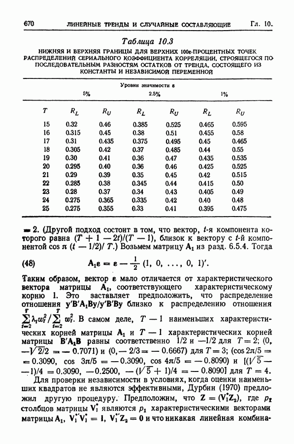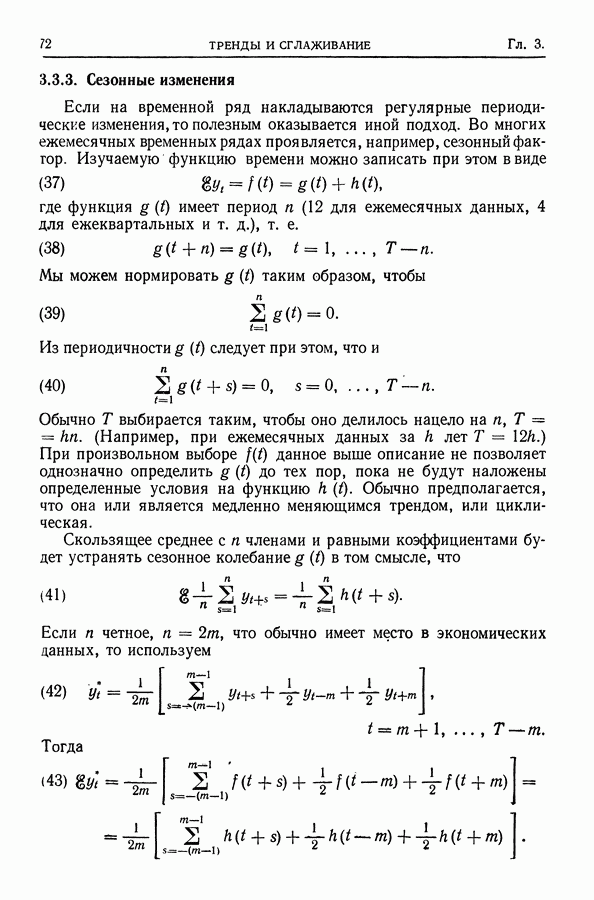 В гл. 10 изучаются статистические процедуры, используемые при анализе тренда в предположении, что случайные составляющие образуют стационарный случайный процесс. При изложении регрессионного анализа определенное место уделяется асимптотической теории, которую можно использовать и при нарушении предположения о нормальном распределении случайных составляющих (§ 2.6).
