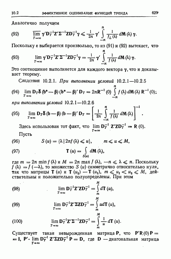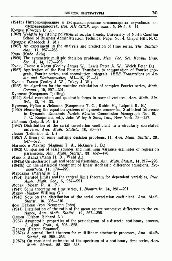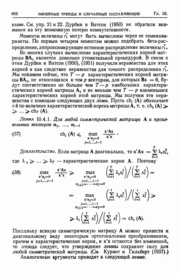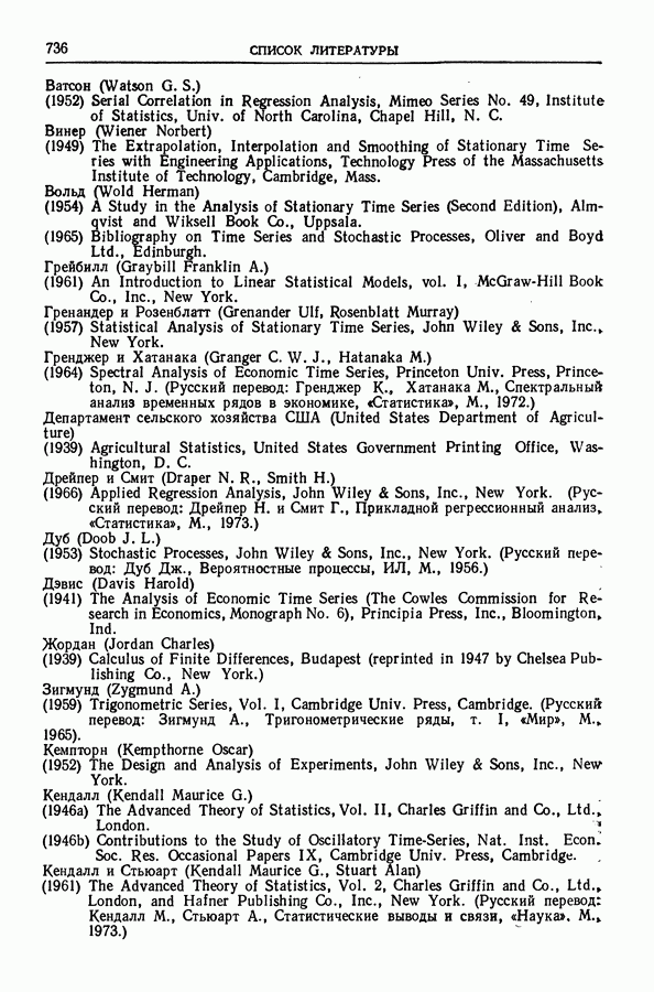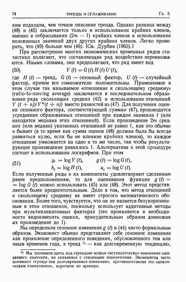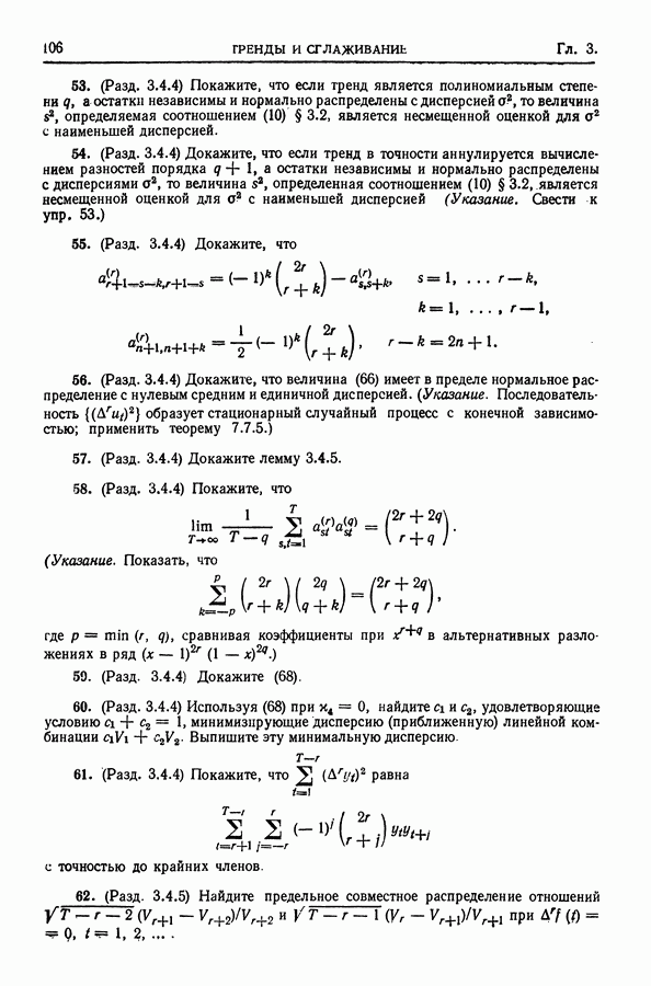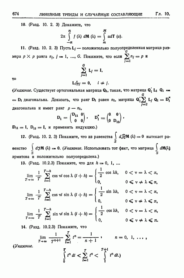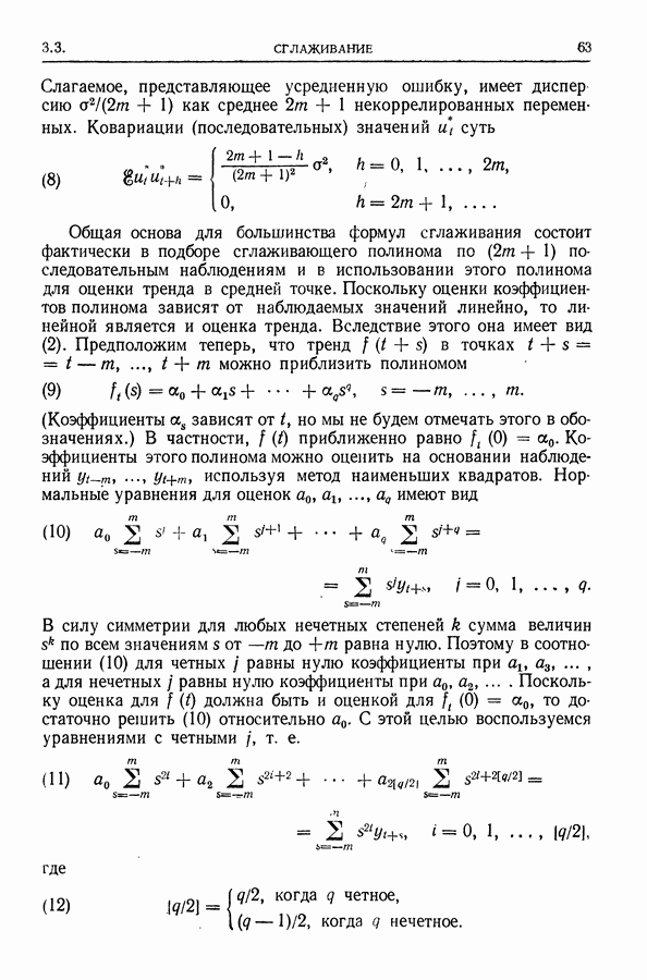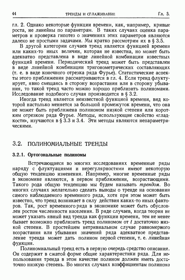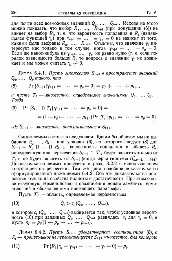 В гл. 10 изучаются статистические процедуры, используемые при анализе тренда в предположении, что случайные составляющие образуют стационарный случайный процесс. При изложении регрессионного анализа определенное место уделяется асимптотической теории, которую можно использовать и при нарушении предположения о нормальном распределении случайных составляющих (§ 2.6).