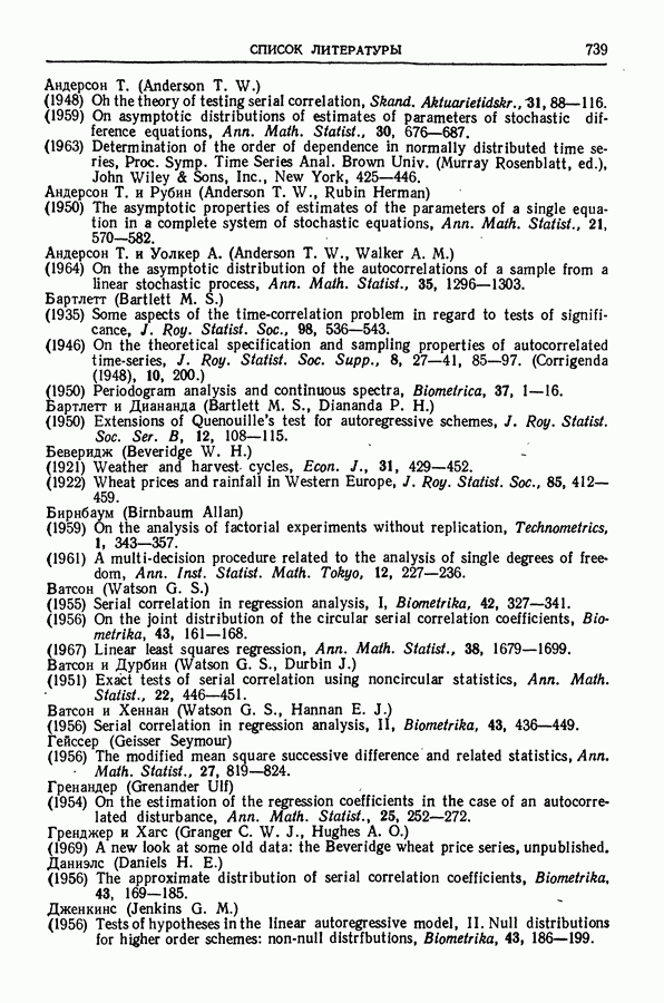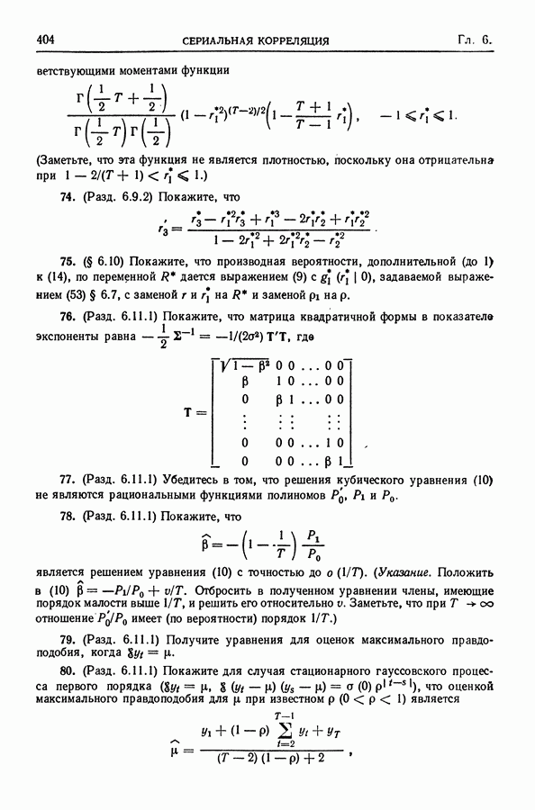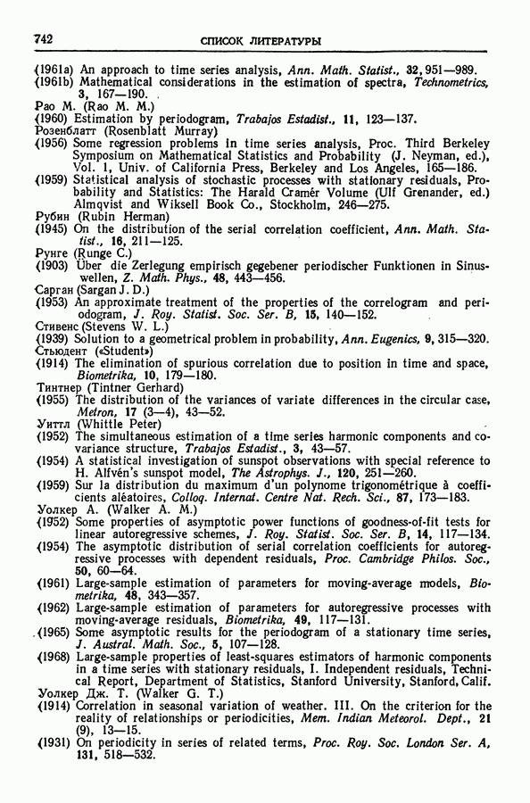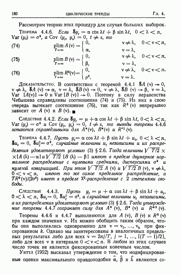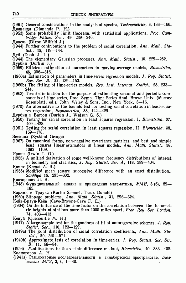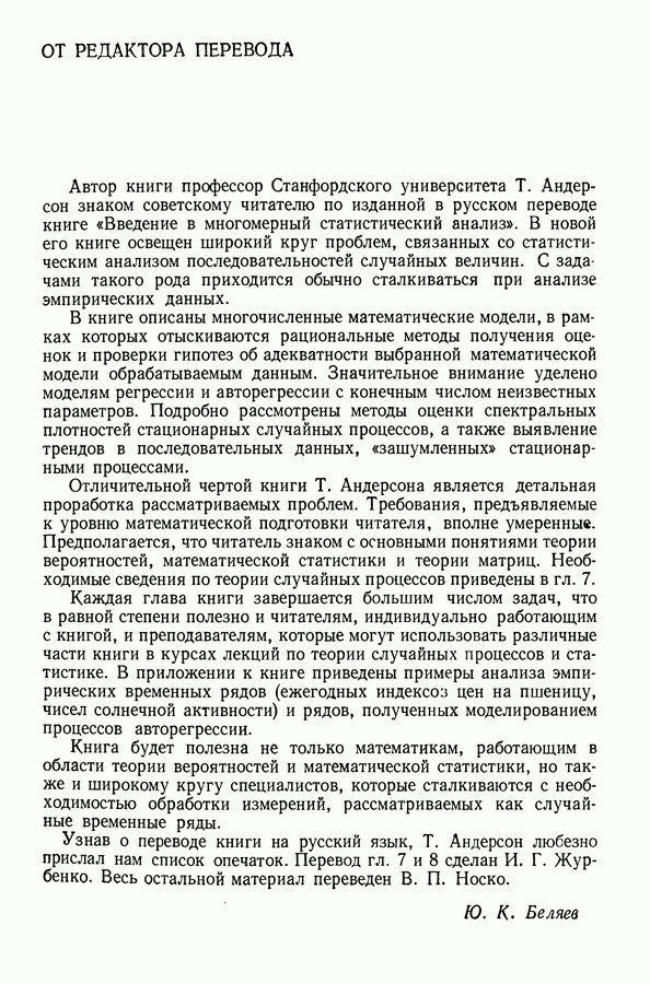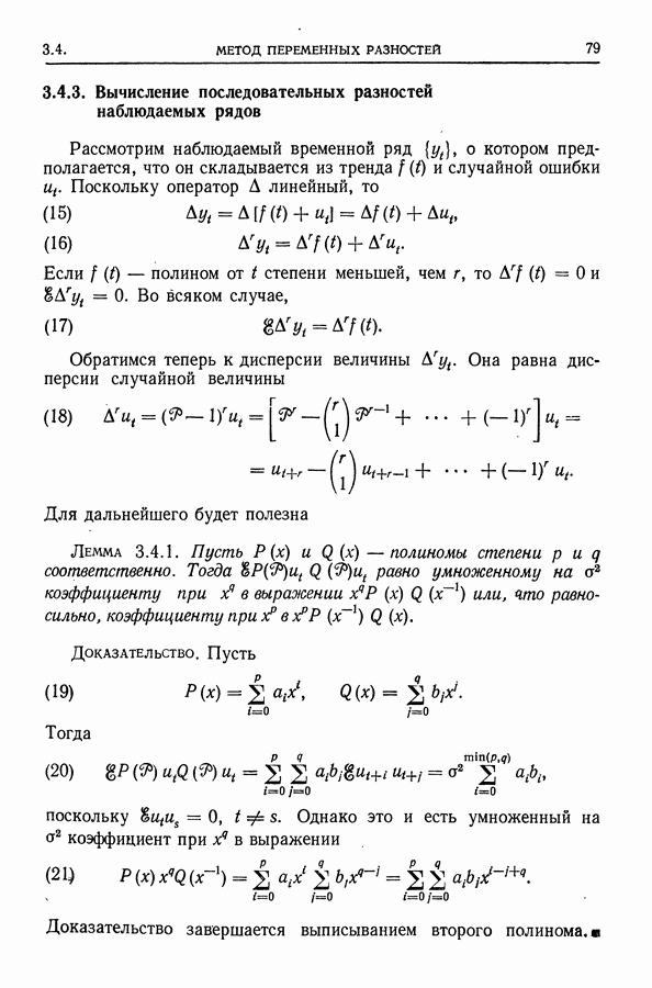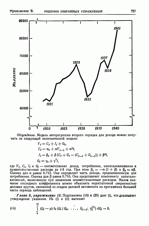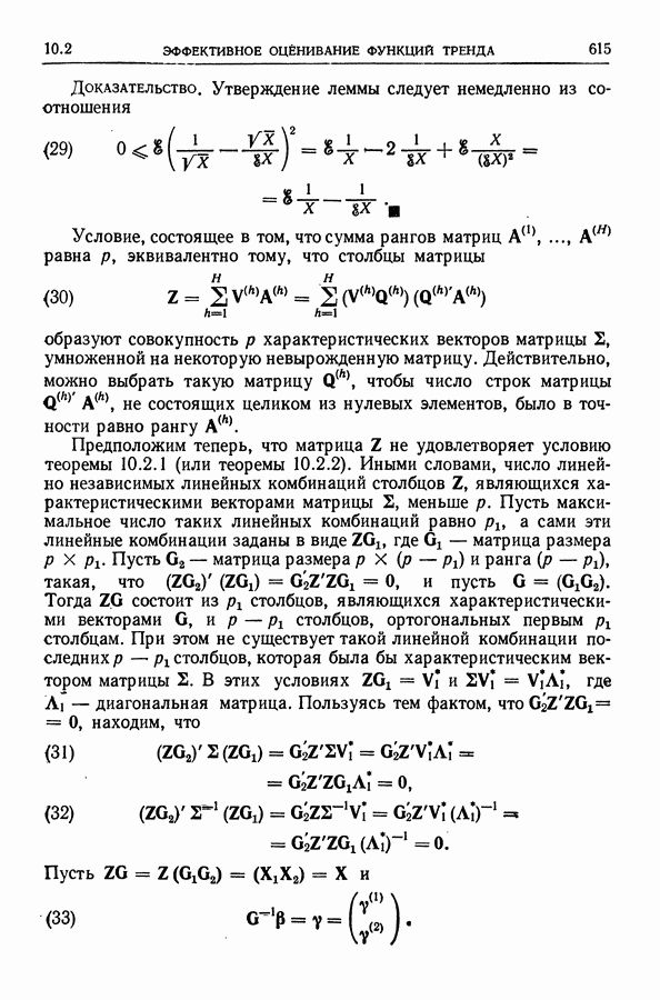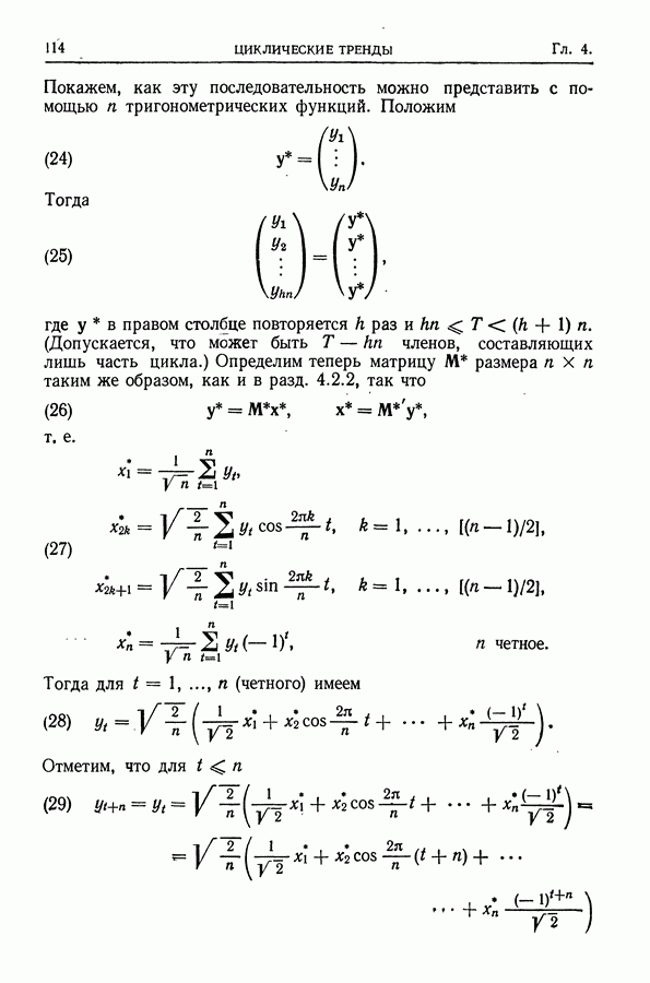 В гл. 10 изучаются статистические процедуры, используемые при анализе тренда в предположении, что случайные составляющие образуют стационарный случайный процесс. При изложении регрессионного анализа определенное место уделяется асимптотической теории, которую можно использовать и при нарушении предположения о нормальном распределении случайных составляющих (§ 2.6).