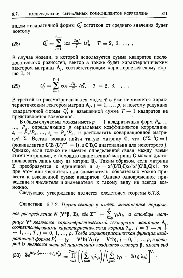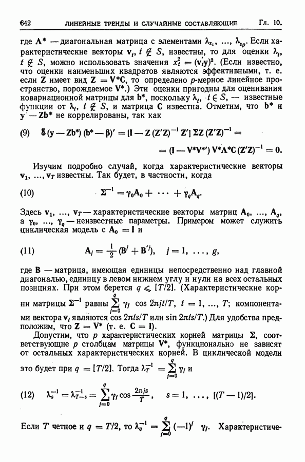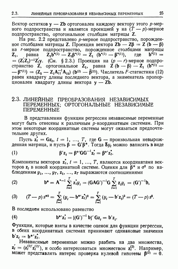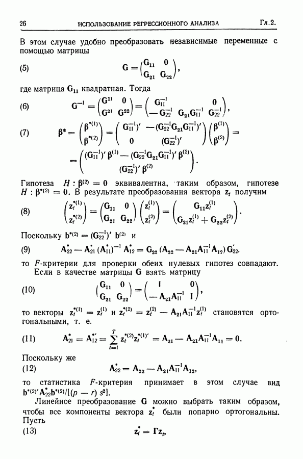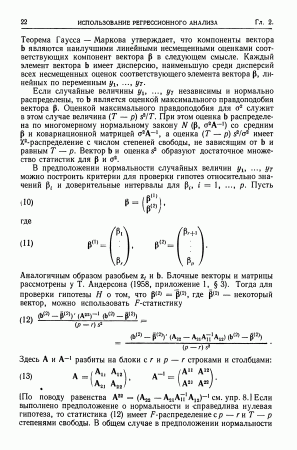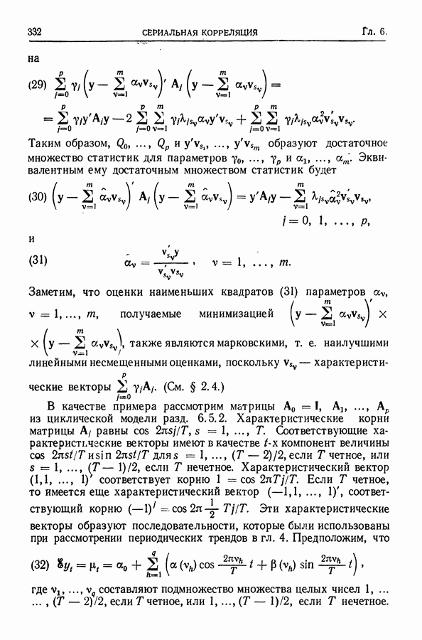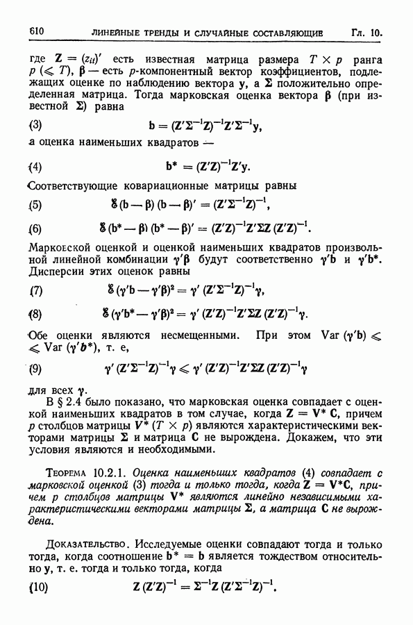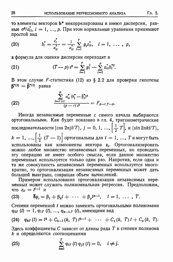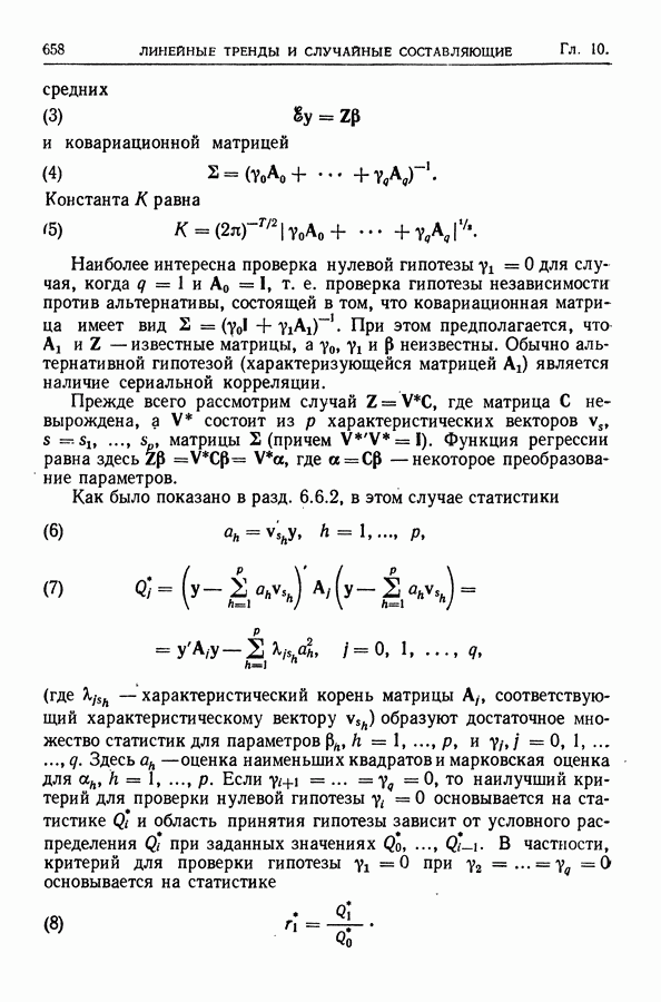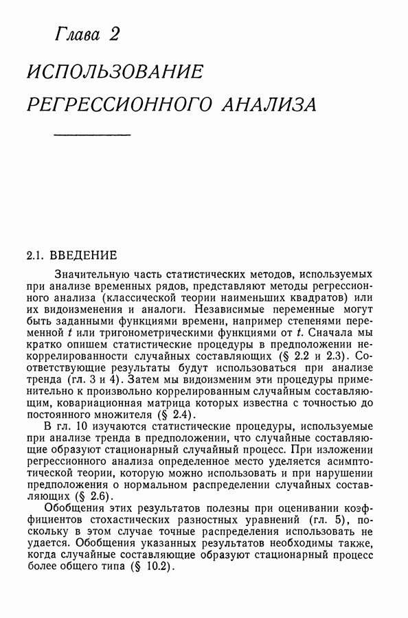 Сначала мы кратко опишем статистические процедуры в предположении некоррелированности случайных составляющих (§ 2.2 и 2.3). Соответствующие результаты будут использоваться при анализе тренда (гл. 3 и 4). Затем мы видоизменим эти процедуры применительно к произвольно коррелированным случайным составляющим, ковариационная матрица которых известна с точностью до постоянного множителя (§ 2.4).