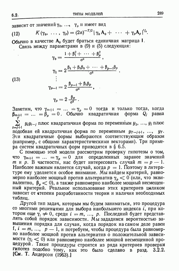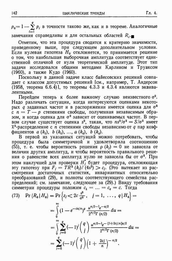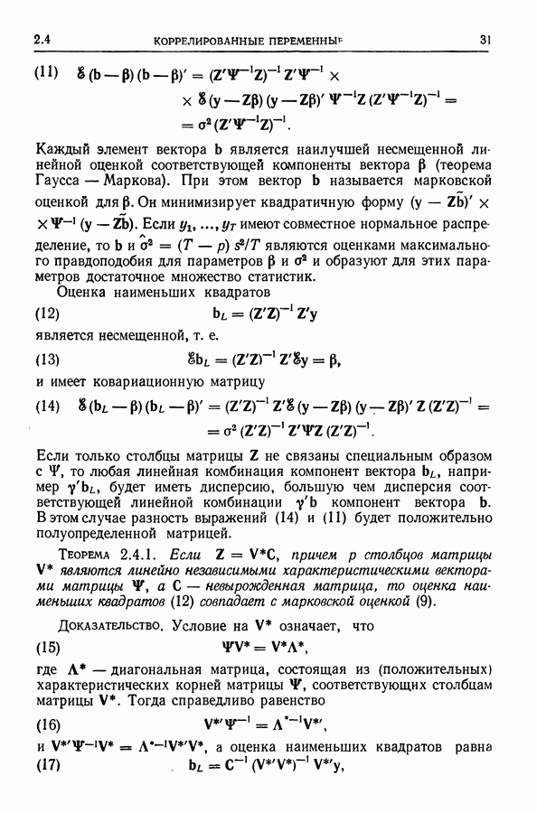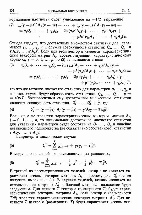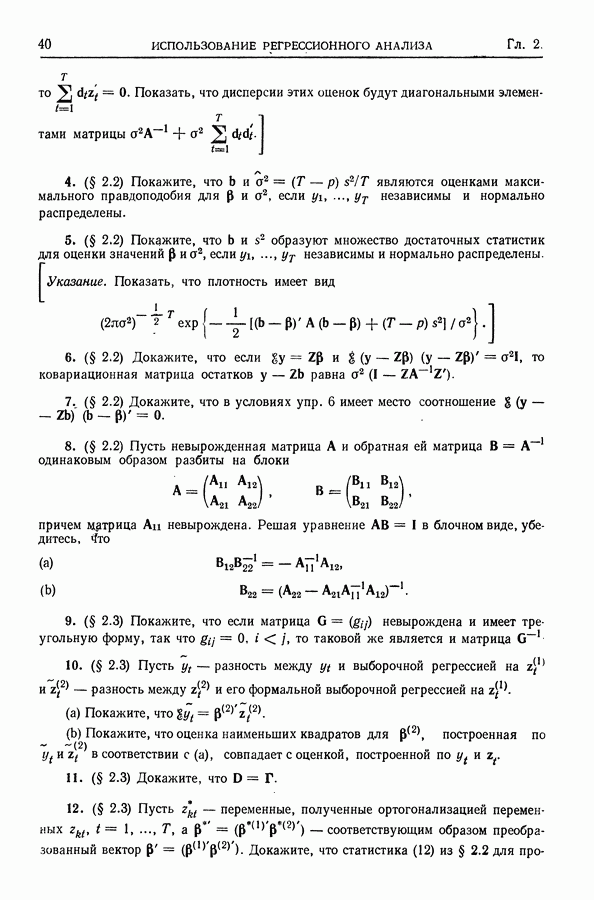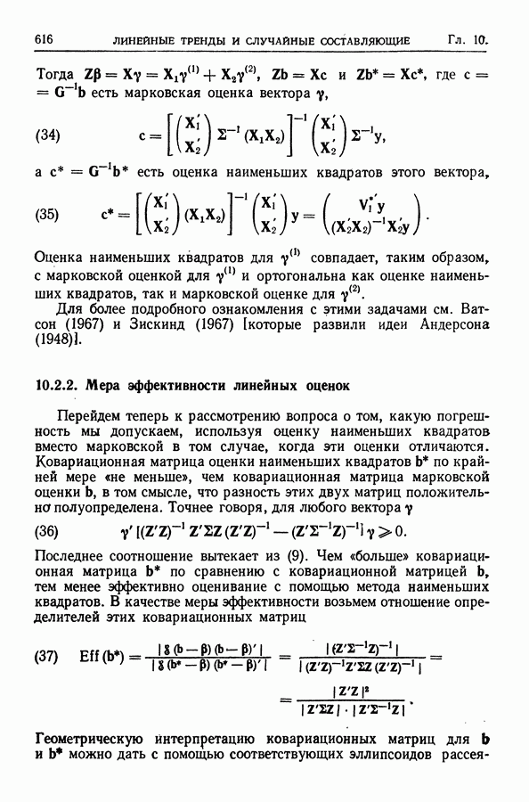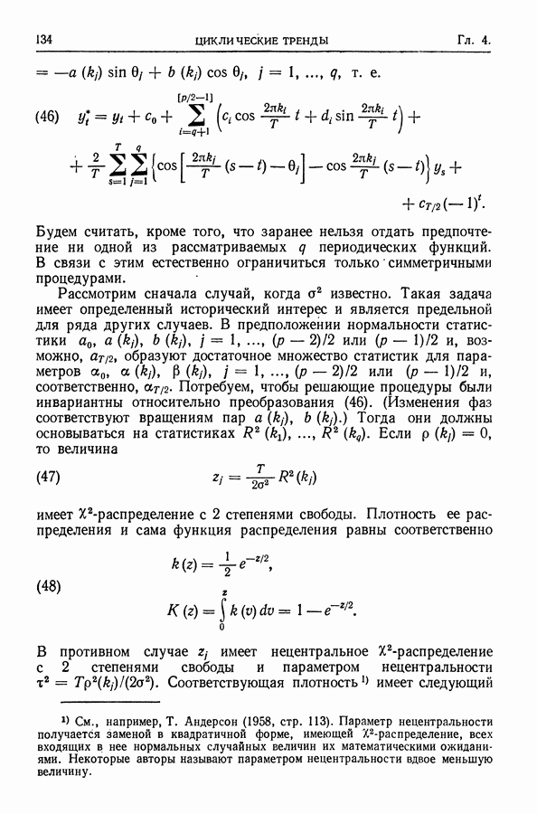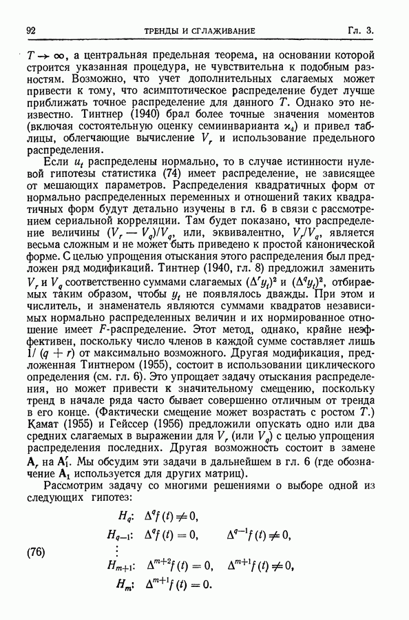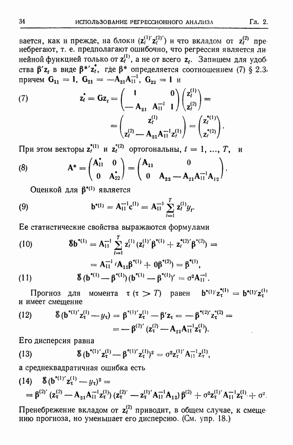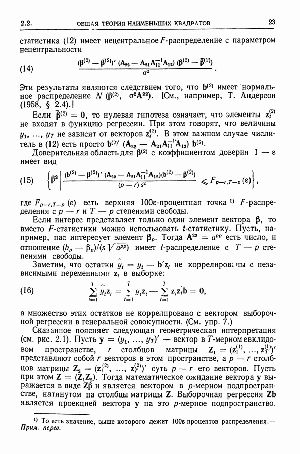Сначала мы кратко опишем статистические процедуры в предположении некоррелированности случайных составляющих (§ 2.2 и 2.3). Соответствующие результаты будут использоваться при анализе тренда (гл. 3 и 4). Затем мы видоизменим эти процедуры применительно к произвольно коррелированным случайным составляющим, ковариационная матрица которых известна с точностью до постоянного множителя (§ 2.4).