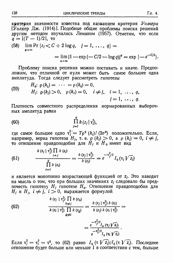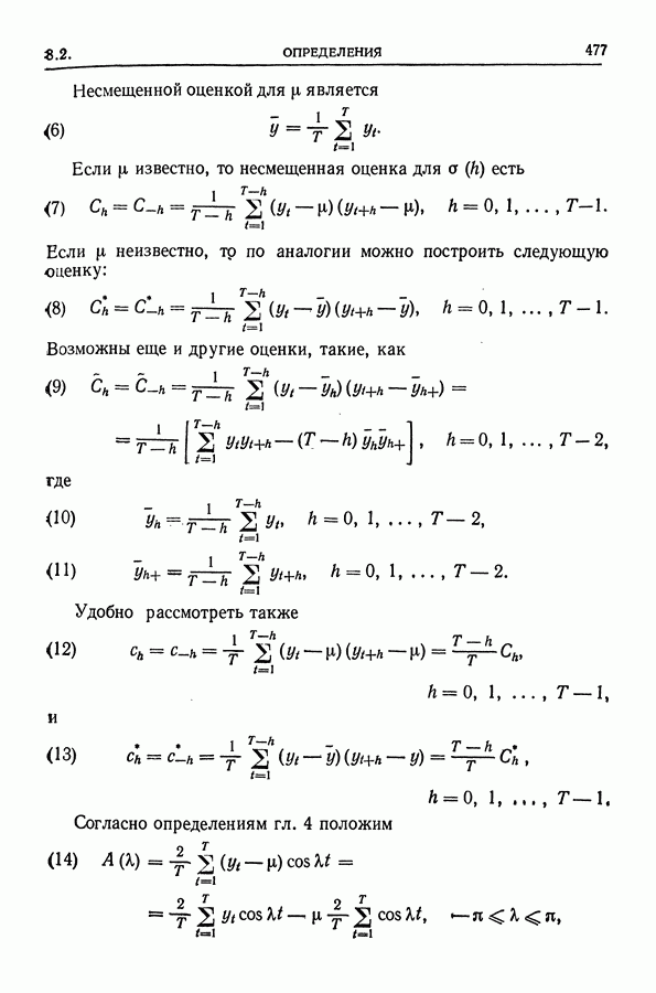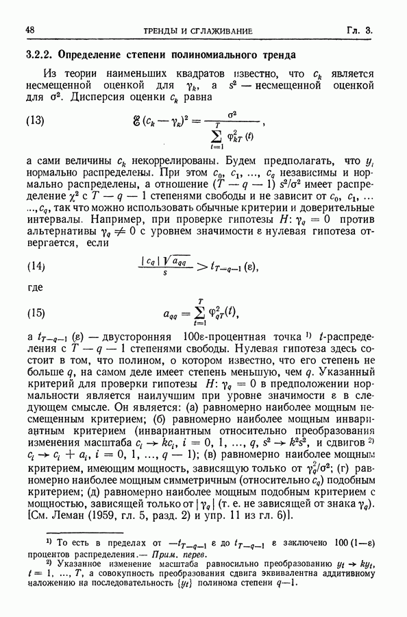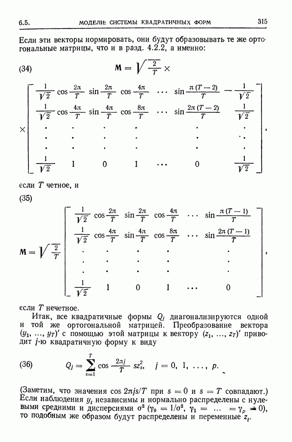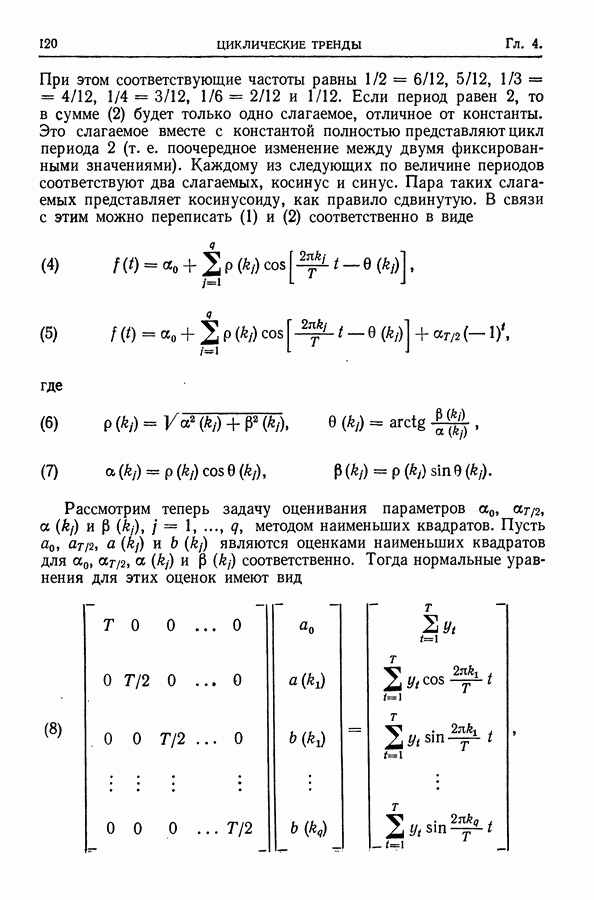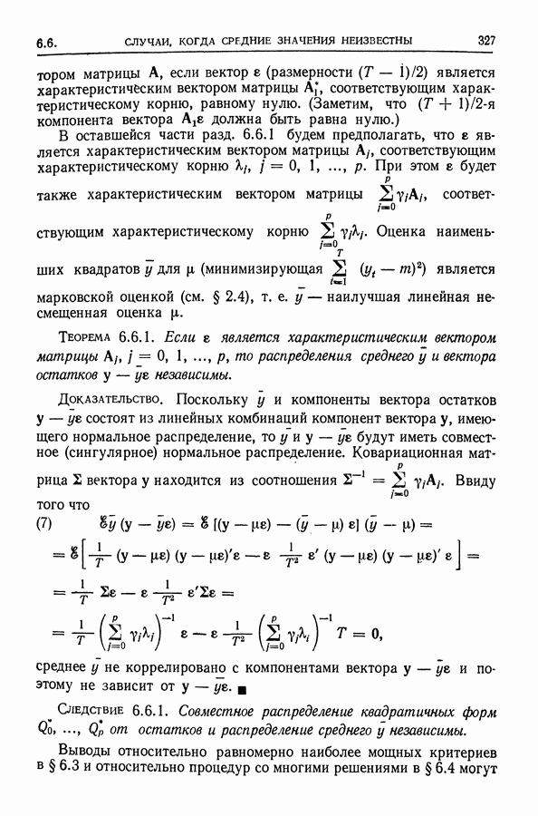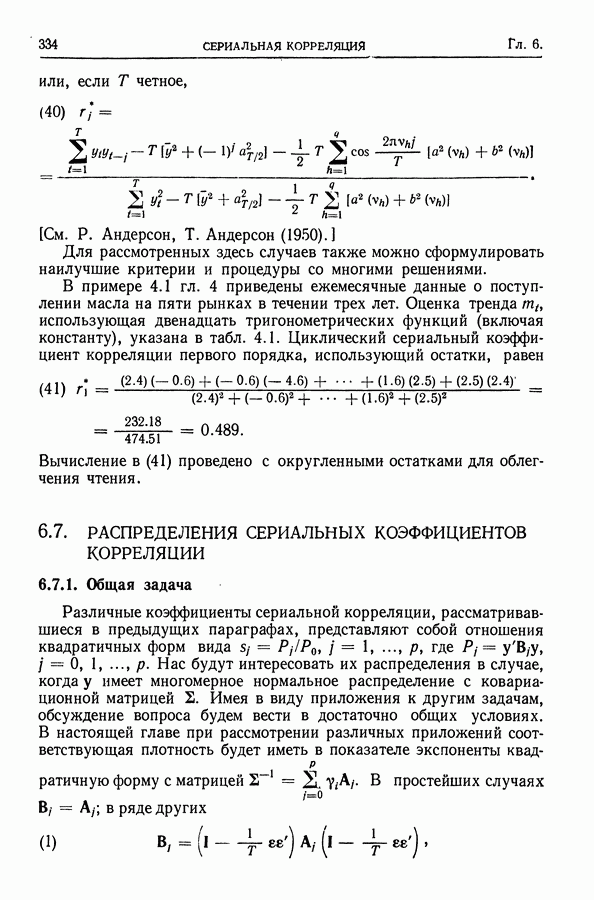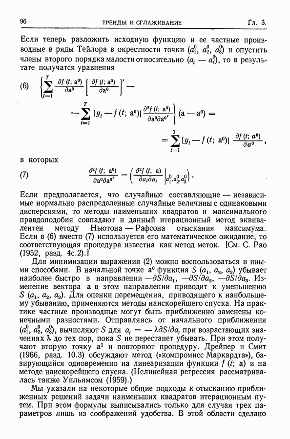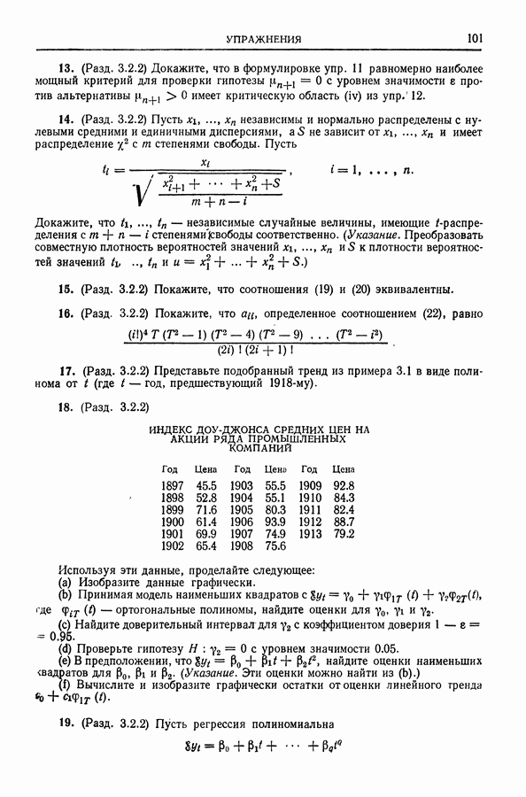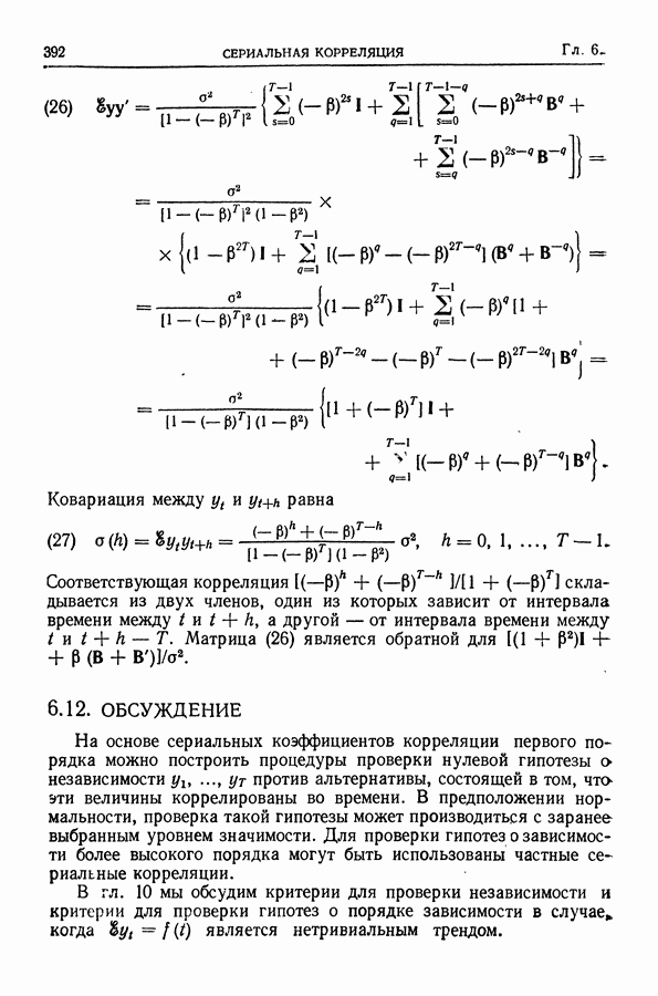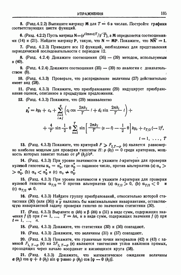 Сначала мы кратко опишем статистические процедуры в предположении некоррелированности случайных составляющих (§ 2.2 и 2.3). Соответствующие результаты будут использоваться при анализе тренда (гл. 3 и 4). Затем мы видоизменим эти процедуры применительно к произвольно коррелированным случайным составляющим, ковариационная матрица которых известна с точностью до постоянного множителя (§ 2.4).