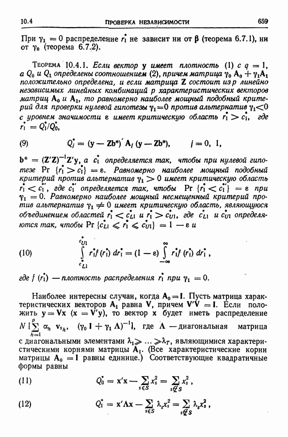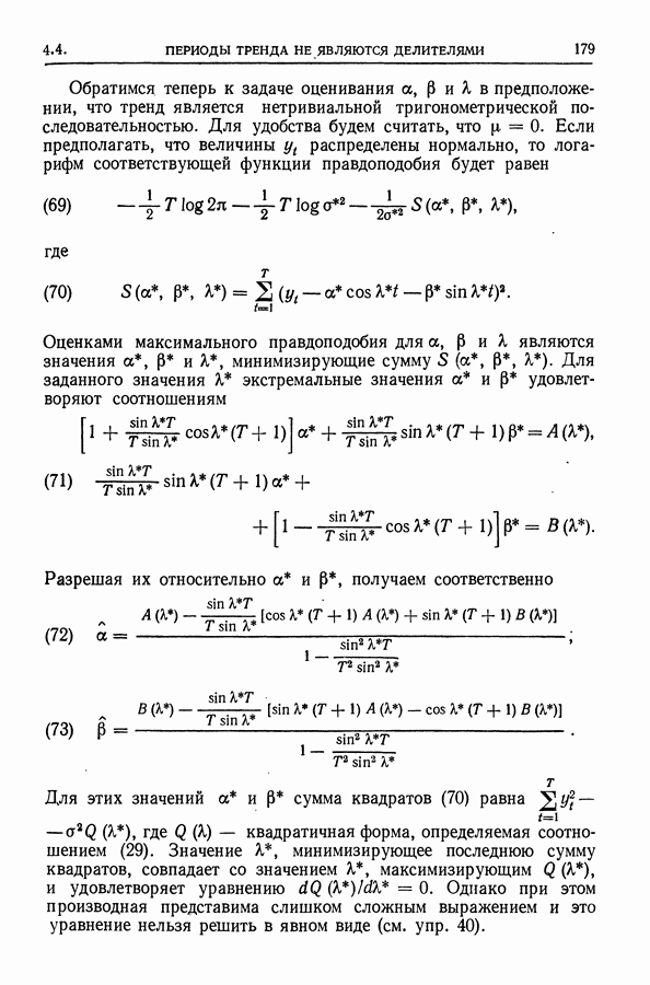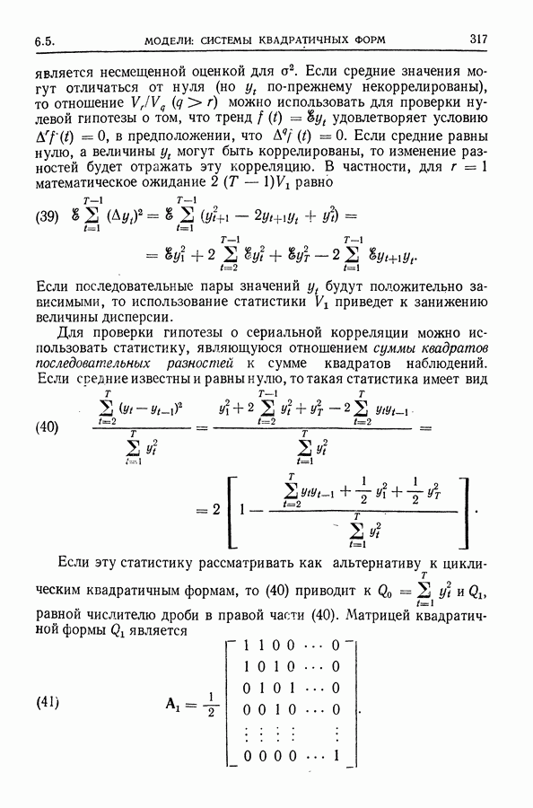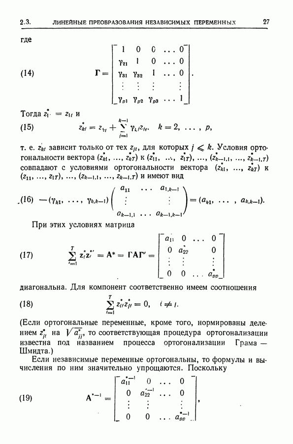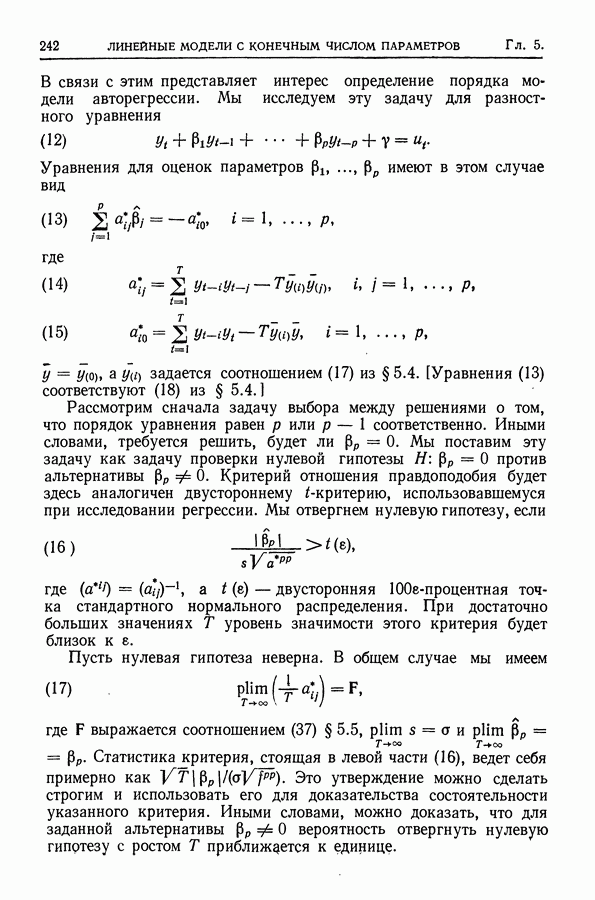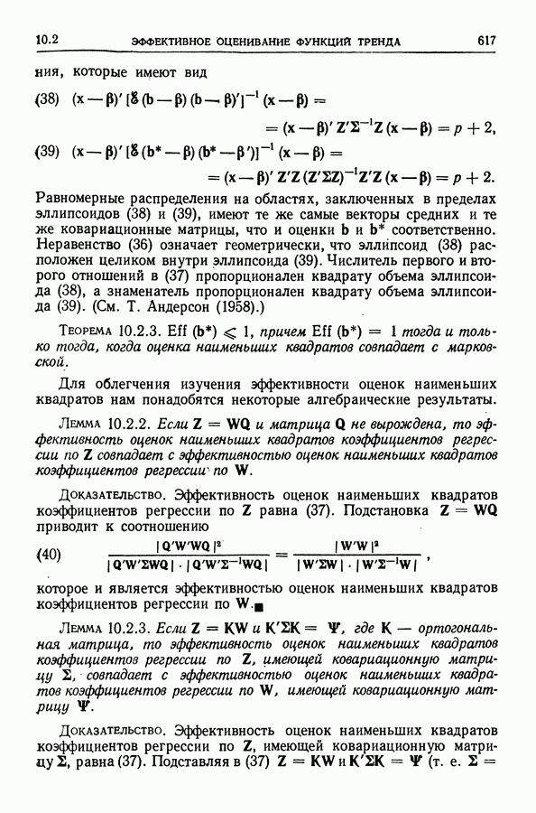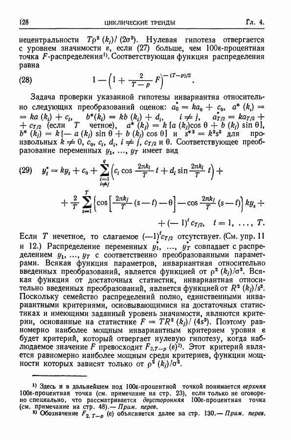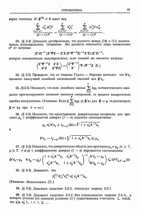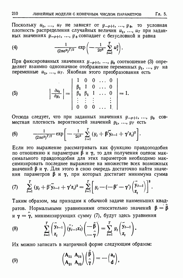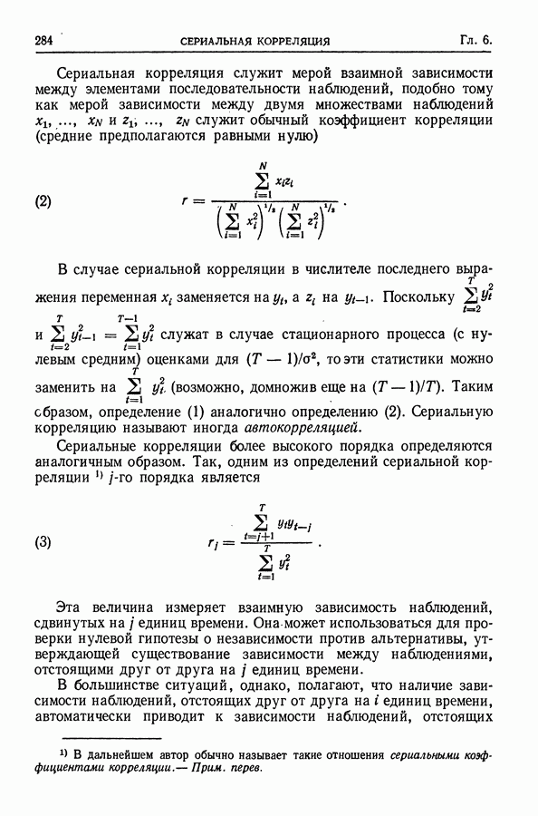 Сначала мы кратко опишем статистические процедуры в предположении некоррелированности случайных составляющих (§ 2.2 и 2.3). Соответствующие результаты будут использоваться при анализе тренда (гл. 3 и 4). Затем мы видоизменим эти процедуры применительно к произвольно коррелированным случайным составляющим, ковариационная матрица которых известна с точностью до постоянного множителя (§ 2.4).
