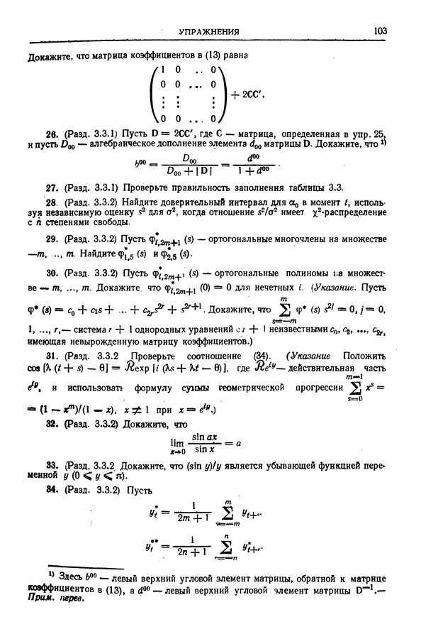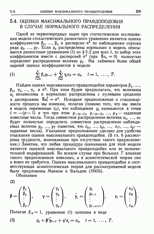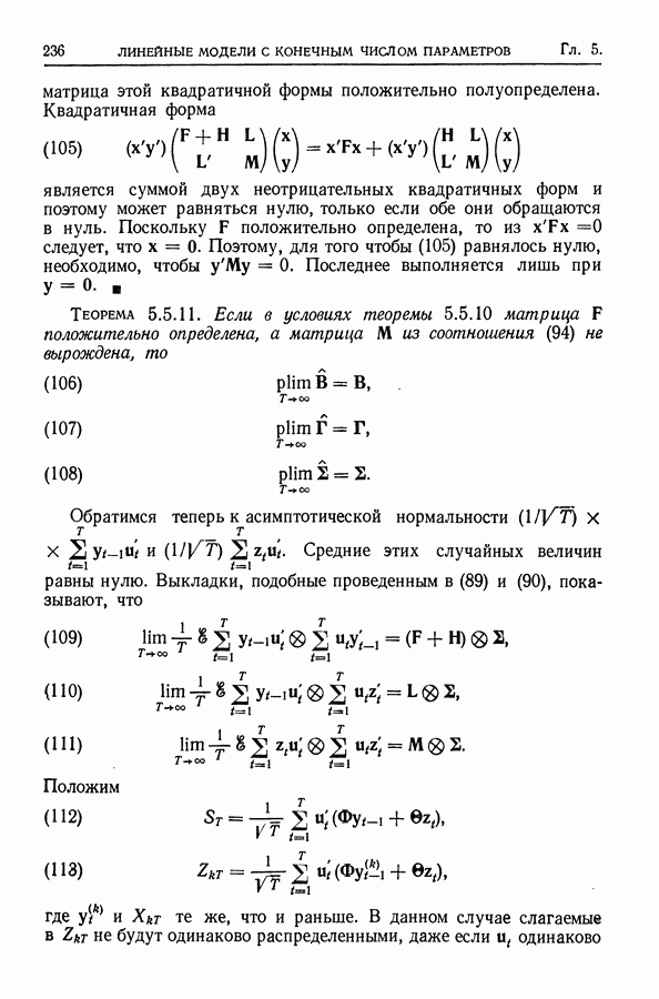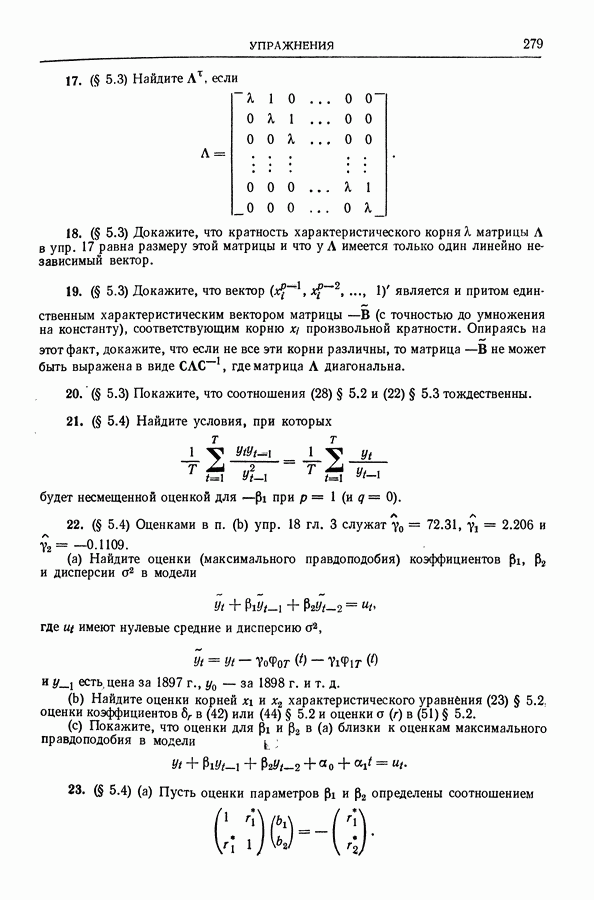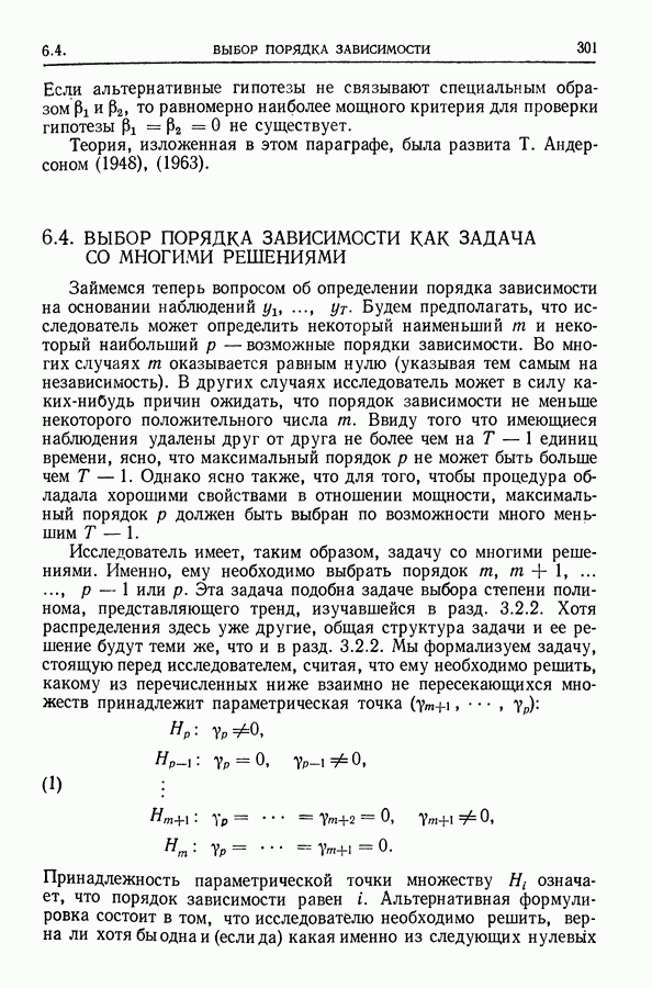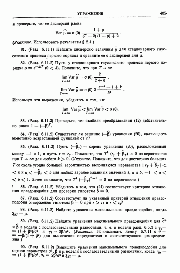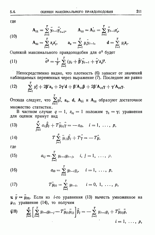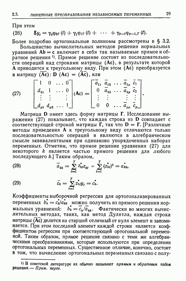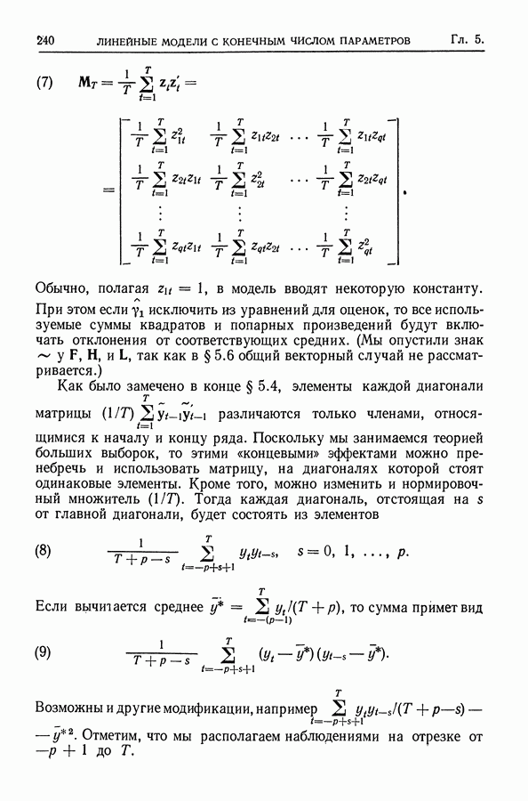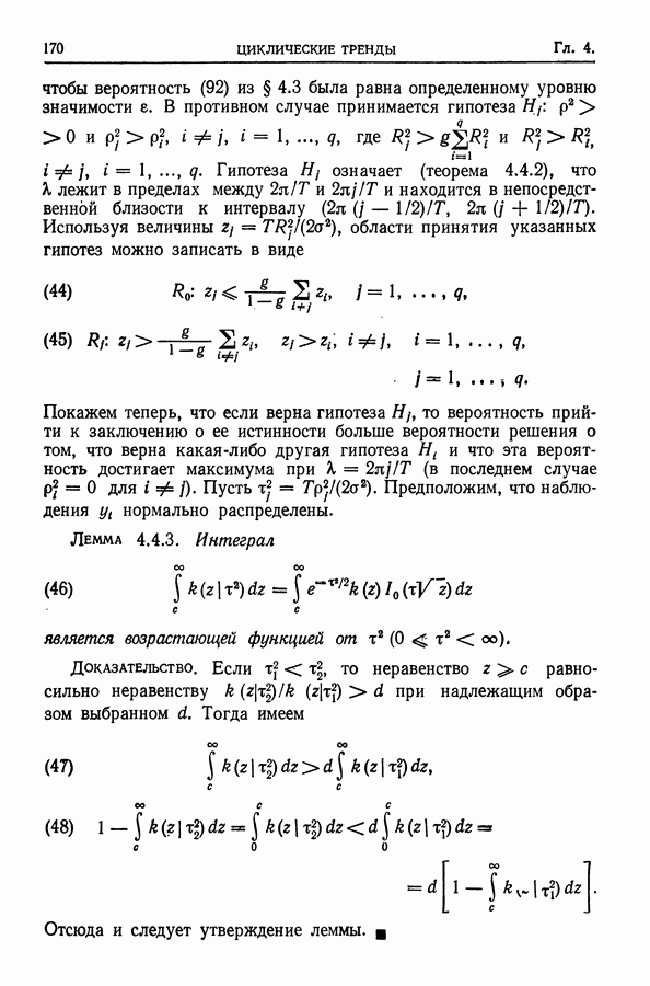 Сначала мы кратко опишем статистические процедуры в предположении некоррелированности случайных составляющих (§ 2.2 и 2.3). Соответствующие результаты будут использоваться при анализе тренда (гл. 3 и 4). Затем мы видоизменим эти процедуры применительно к произвольно коррелированным случайным составляющим, ковариационная матрица которых известна с точностью до постоянного множителя (§ 2.4).