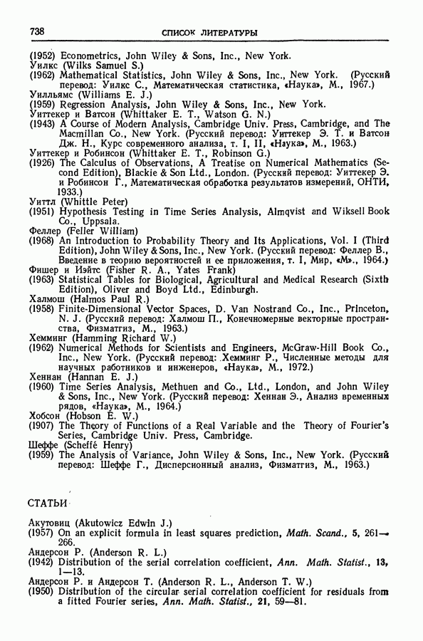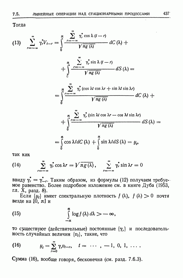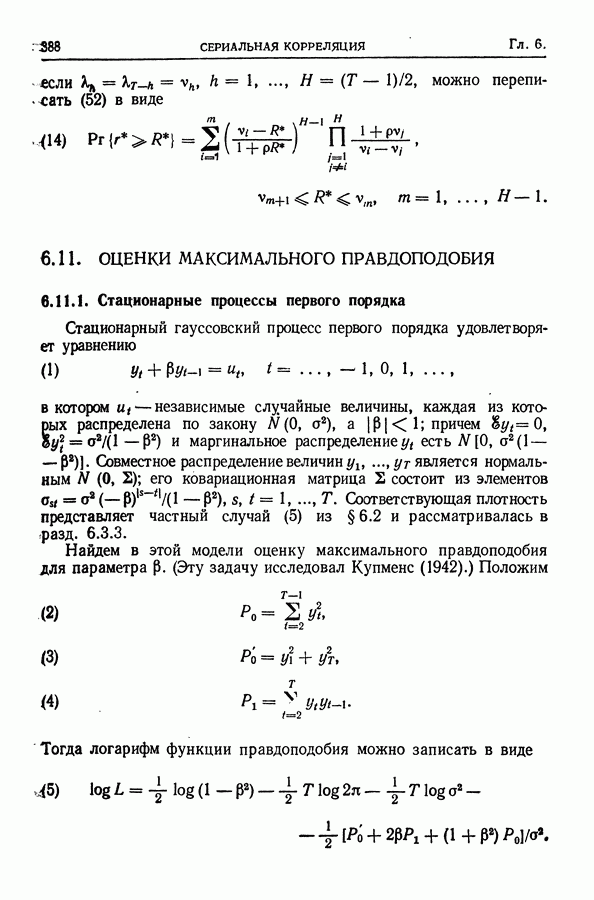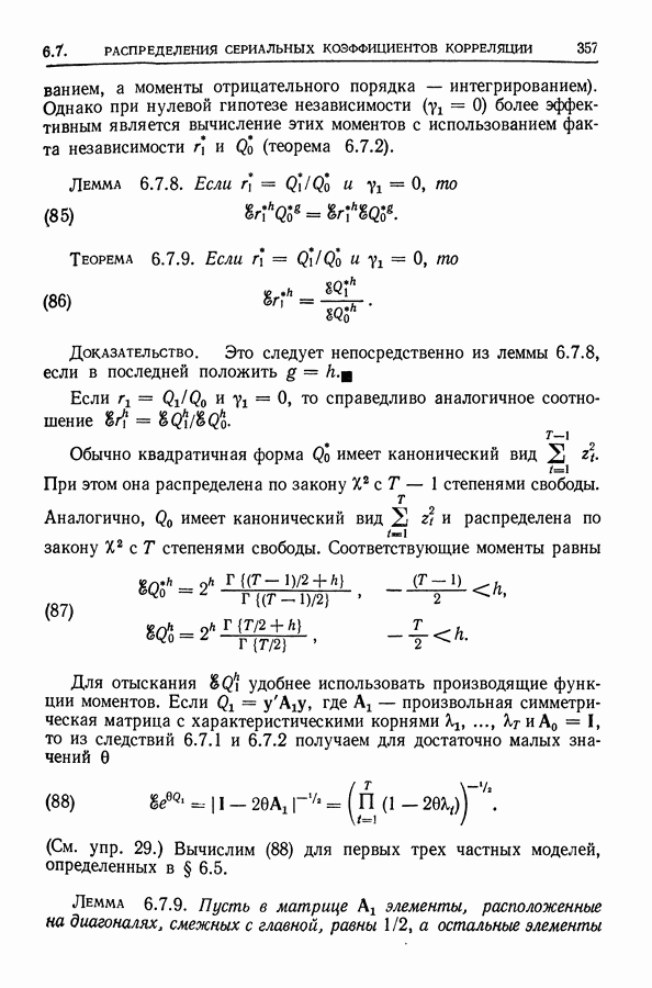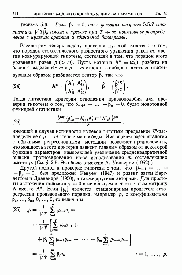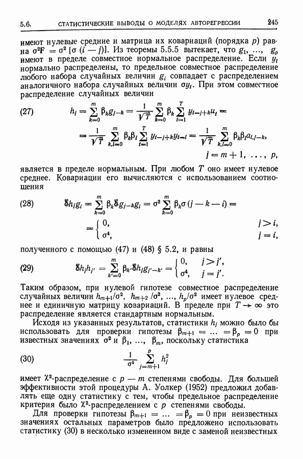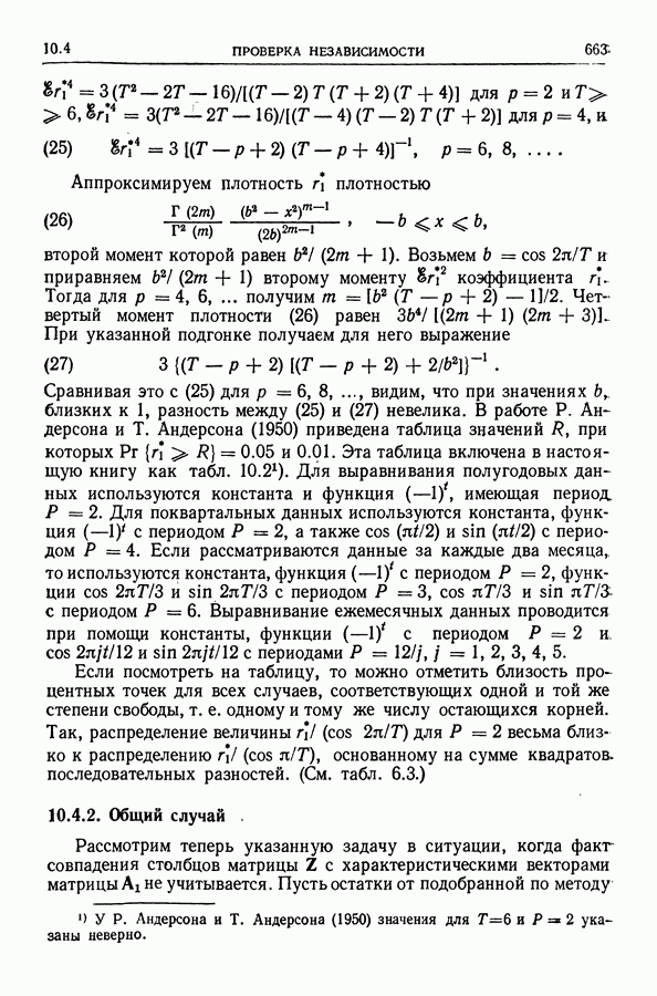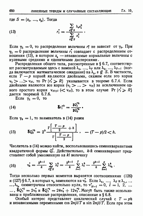 поскольку в этом случае точные распределения использовать не удается. Обобщения указанных результатов необходимы также, когда случайные составляющие образуют стационарный процесс более общего типа (§ 10.2).