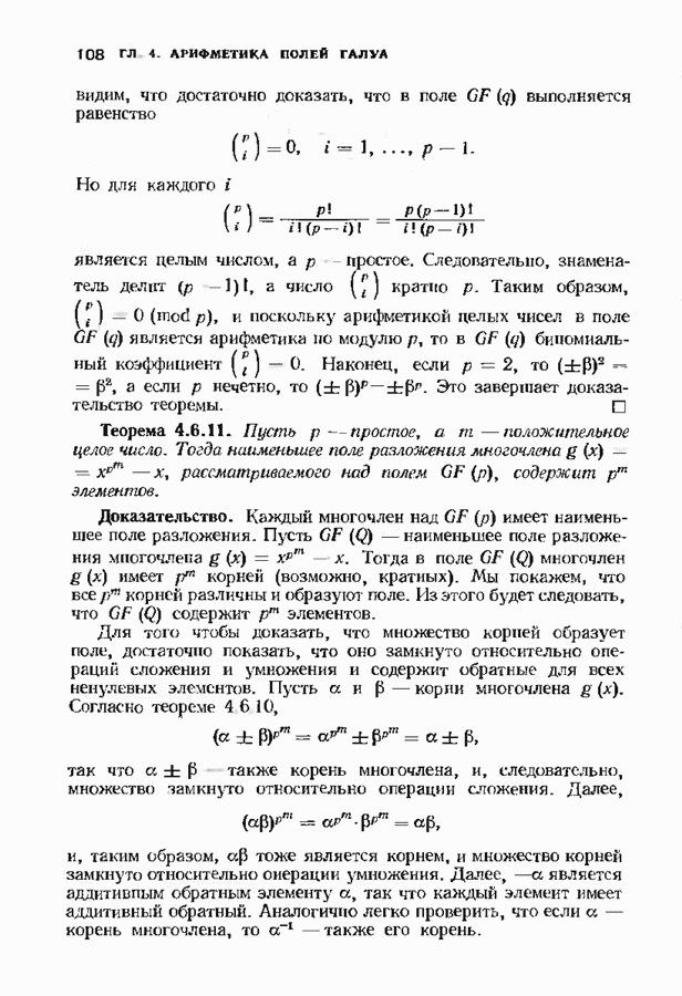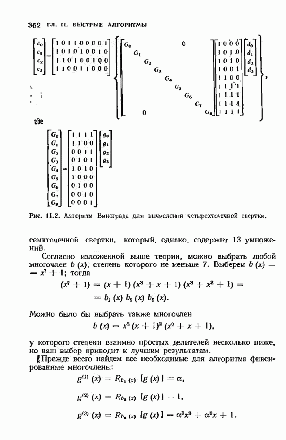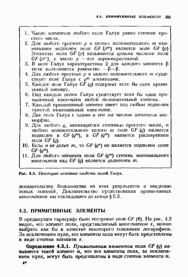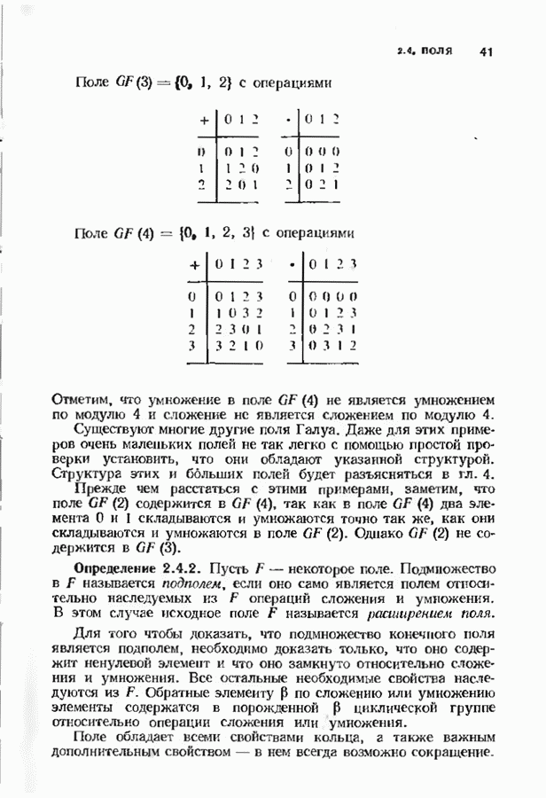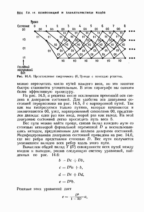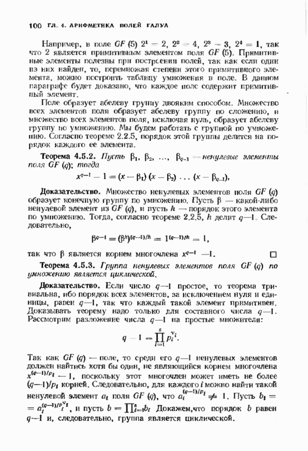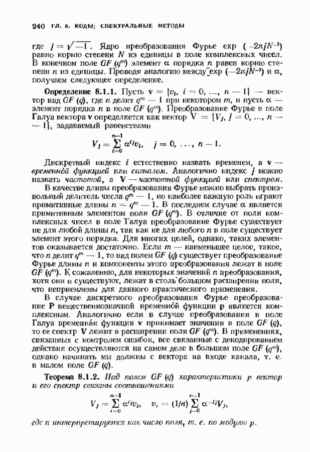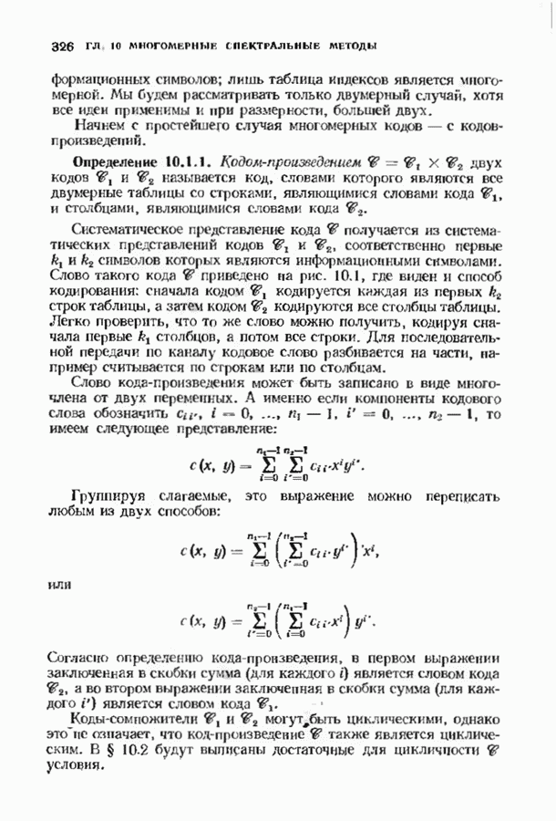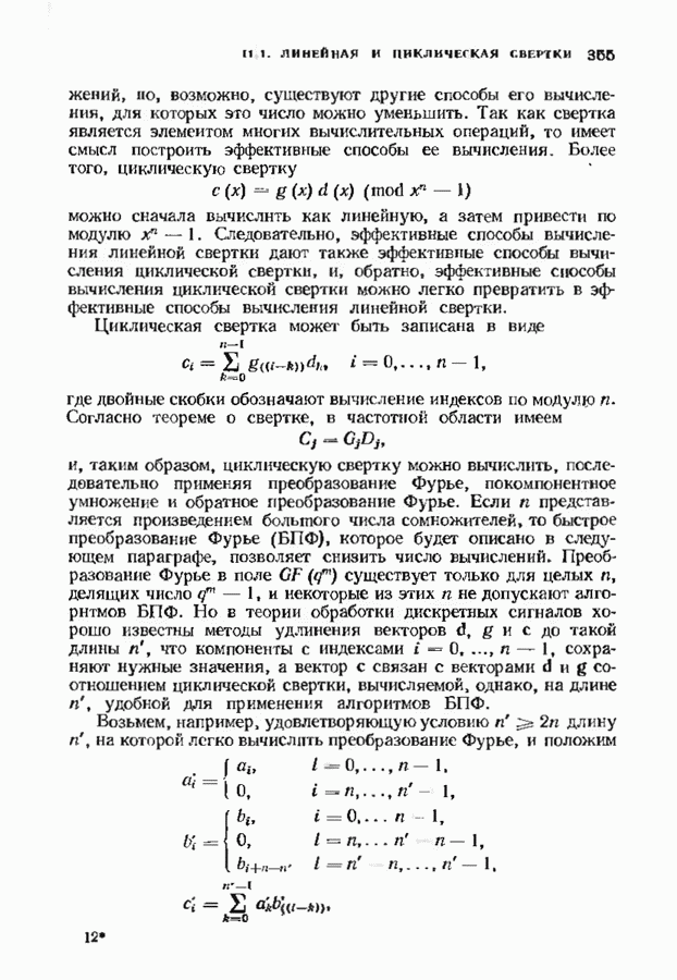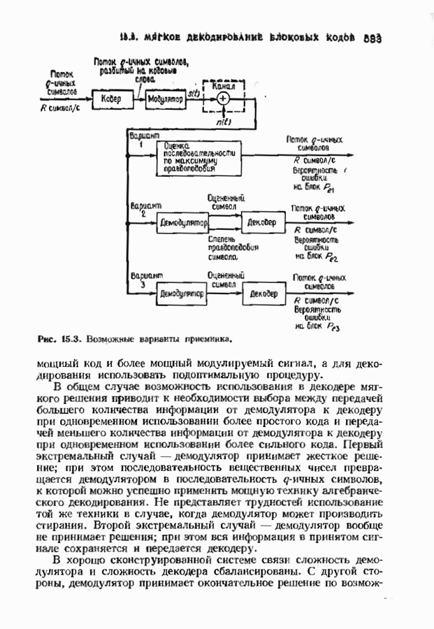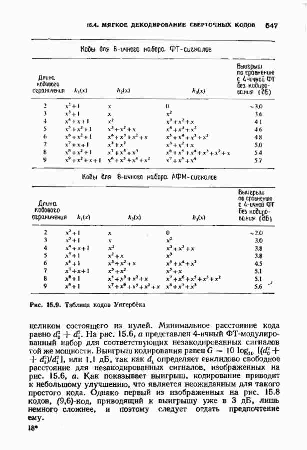 Если произошла только одна ошибка, то одна из оценок, даваемых проверочными суммами, будет неверна; мажоритарное решение дает значение Аналогично может быть продекодирован любой информационный символ, который умножается на одну из строк матрицы После того как эти информационные символы найдены, их вклад в кодовое слово вычитается из принятого слова. Это эквивалентно тому, что мы получаем слово кода Рида — Маллера Этот процесс повторяется до тех пор, пока не будут найдены все информационные биты. ЗАДАЧИ(см. скан) (см. скан) (см. скан) ЗАМЕЧАНИЯИзучение линейных кодов восходит к ранним работам Хэмминга [1950] и Голея 119491. Большинство положений, используемых в настоящее время при изучении линейных колов, заложено Слепяном [1956, 1960]: первые три параграфа тесно связаны с этими работами. Еще до этого Киксу 119537 обратил внимание на связь между линейными кодами и подпространствами векторных пространств. Коды с максимальным расстоянием впервые изучал Синглтон Двоичные коды Хэмминга как коды, исправляющие ошибки, впервые рассматривал Хэмминг, хотя подобные комбнпаторные структуры, рацее встречались в задачах статистики. Недвоичные коды Хэмминга были получены Голсем [1958] и Коком [1959]. Понятие совершенного кода впервые истречается у Голея, хотя он не пользовался таким термином. Делалось много попыток найти новые совершенные коды, но лишь отдельные из них увенчались успехом. В ряде работ Тиотявяйнен и Ван Лиит (работы завершились в 1974 и 1975 гг. соответственно) доказали, что не существует линейных (нетривиальных) совершенных кодов, отличных от кодов Хэмминга или Голея, и не существует нелинейных (нетривиальных) кодов, за исключением кодоп Васильева [1962] и Шёнхейма [1968]. Коды Рида-Маллера были получены Маллером [1954], и в этом же году Рид разработал алгоритм их декодирования. Этот алгоритм необычем тем, что принимает решение, основанное «а мажоритарной логике. Коды Рида-Маллера являются предшественниками обширных семейств мажоритарно декодируемых кодов, с которыми мы встретимся в следующих главах.