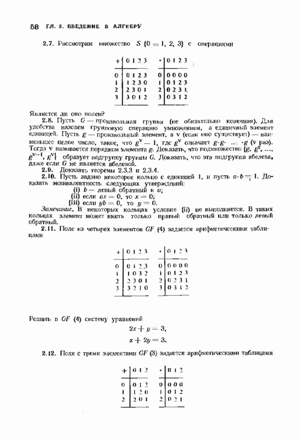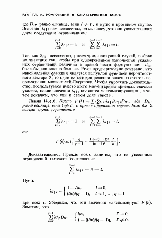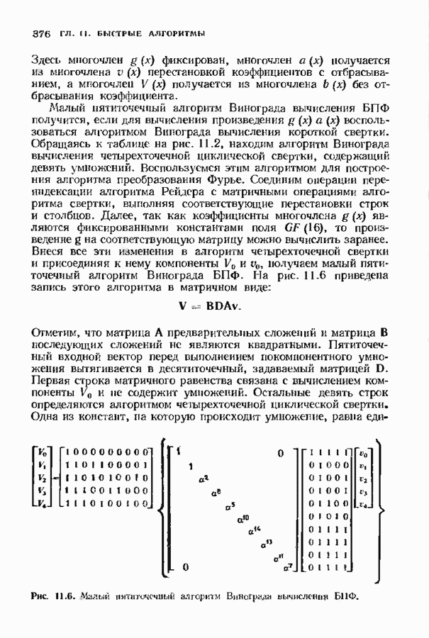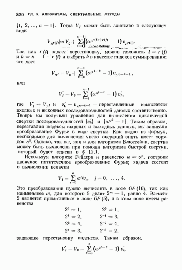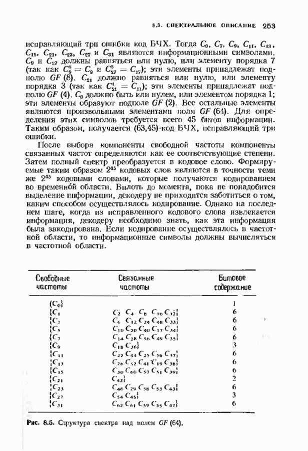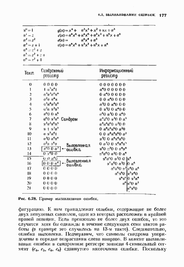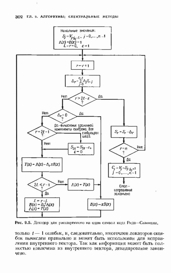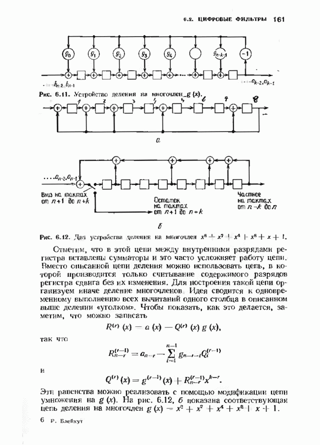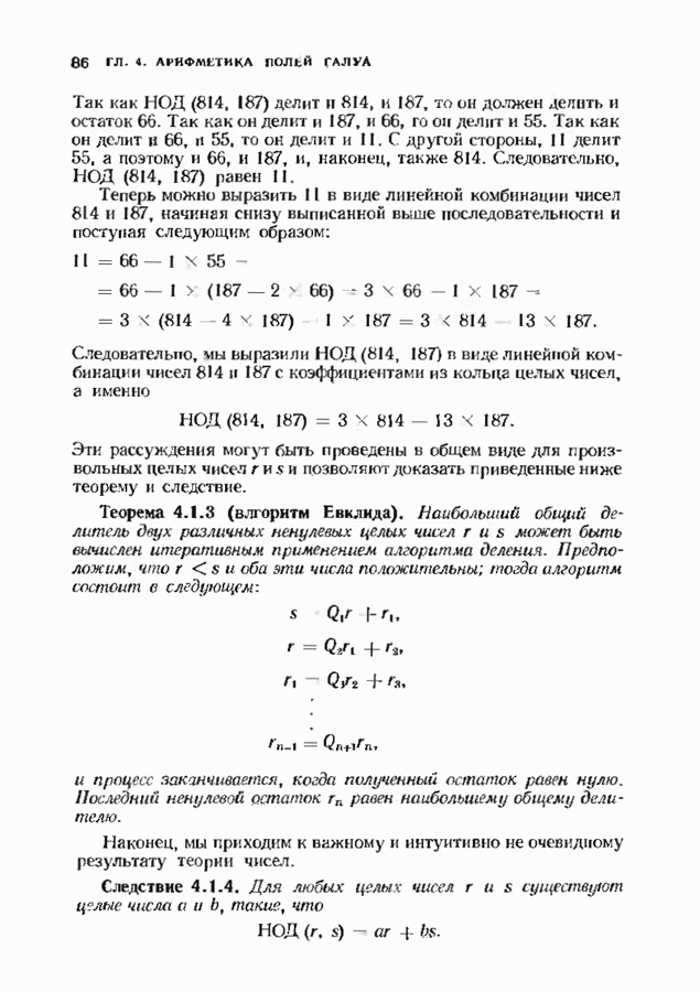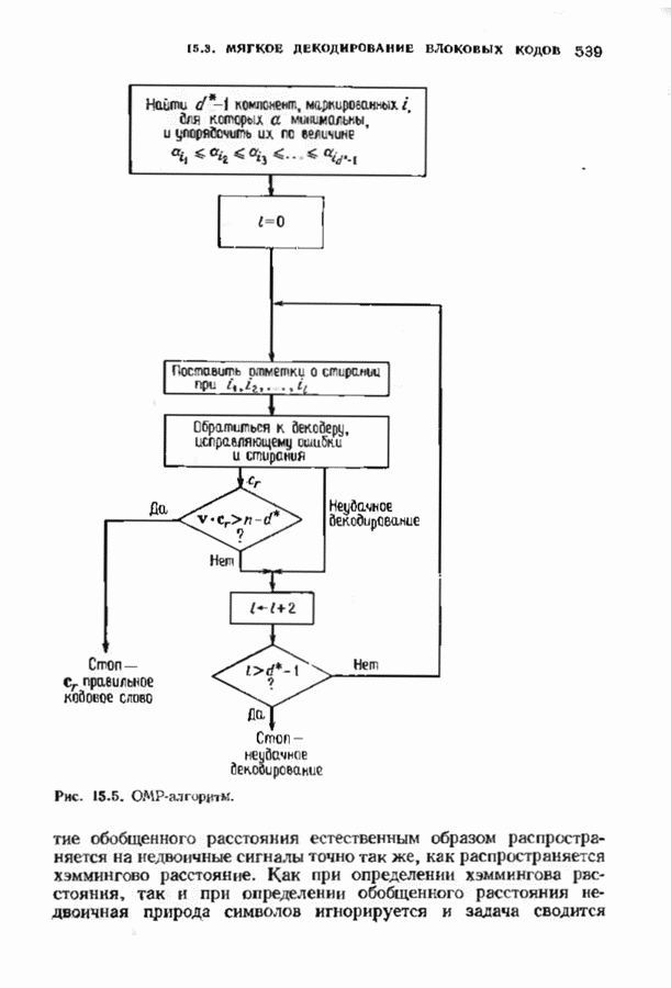Если произошла только одна ошибка, то одна из оценок, даваемых проверочными суммами, будет неверна; мажоритарное решение дает значение Аналогично может быть продекодирован любой информационный символ, который умножается на одну из строк матрицы После того как эти информационные символы найдены, их вклад в кодовое слово вычитается из принятого слова. Это эквивалентно тому, что мы получаем слово кода Рида — Маллера Этот процесс повторяется до тех пор, пока не будут найдены все информационные биты. ЗАДАЧИ(см. скан) (см. скан) (см. скан) ЗАМЕЧАНИЯИзучение линейных кодов восходит к ранним работам Хэмминга [1950] и Голея 119491. Большинство положений, используемых в настоящее время при изучении линейных колов, заложено Слепяном [1956, 1960]: первые три параграфа тесно связаны с этими работами. Еще до этого Киксу 119537 обратил внимание на связь между линейными кодами и подпространствами векторных пространств. Коды с максимальным расстоянием впервые изучал Синглтон Двоичные коды Хэмминга как коды, исправляющие ошибки, впервые рассматривал Хэмминг, хотя подобные комбнпаторные структуры, рацее встречались в задачах статистики. Недвоичные коды Хэмминга были получены Голсем [1958] и Коком [1959]. Понятие совершенного кода впервые истречается у Голея, хотя он не пользовался таким термином. Делалось много попыток найти новые совершенные коды, но лишь отдельные из них увенчались успехом. В ряде работ Тиотявяйнен и Ван Лиит (работы завершились в 1974 и 1975 гг. соответственно) доказали, что не существует линейных (нетривиальных) совершенных кодов, отличных от кодов Хэмминга или Голея, и не существует нелинейных (нетривиальных) кодов, за исключением кодоп Васильева [1962] и Шёнхейма [1968]. Коды Рида-Маллера были получены Маллером [1954], и в этом же году Рид разработал алгоритм их декодирования. Этот алгоритм необычем тем, что принимает решение, основанное «а мажоритарной логике. Коды Рида-Маллера являются предшественниками обширных семейств мажоритарно декодируемых кодов, с которыми мы встретимся в следующих главах.