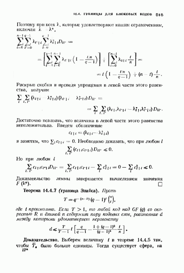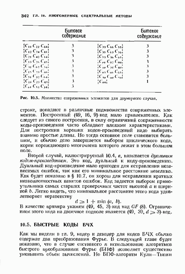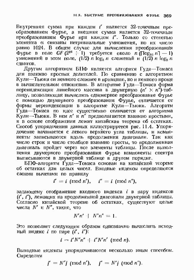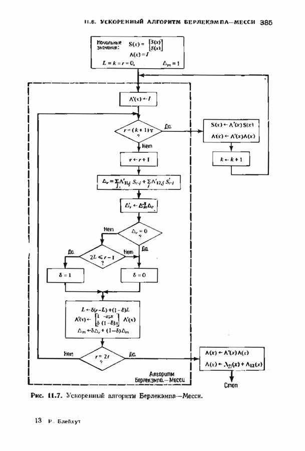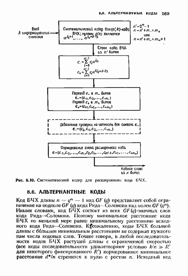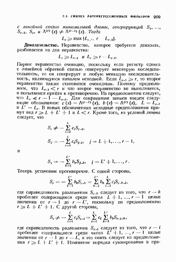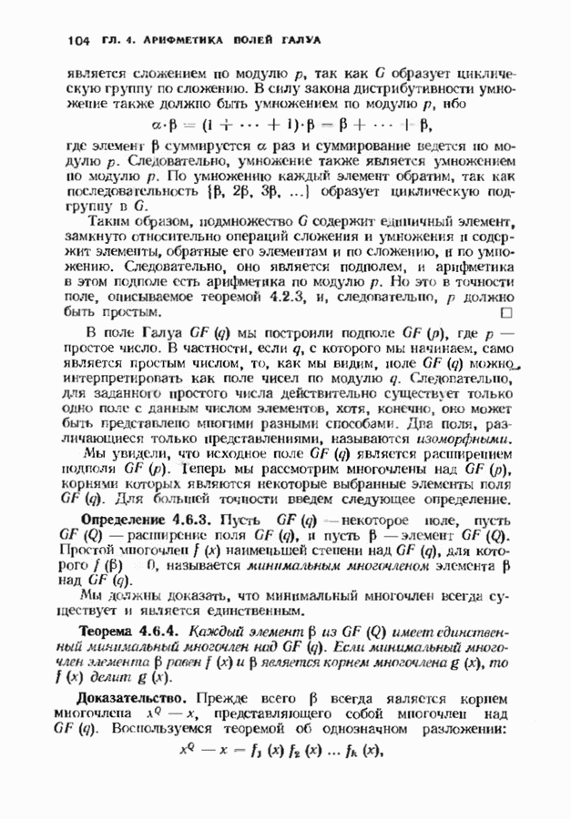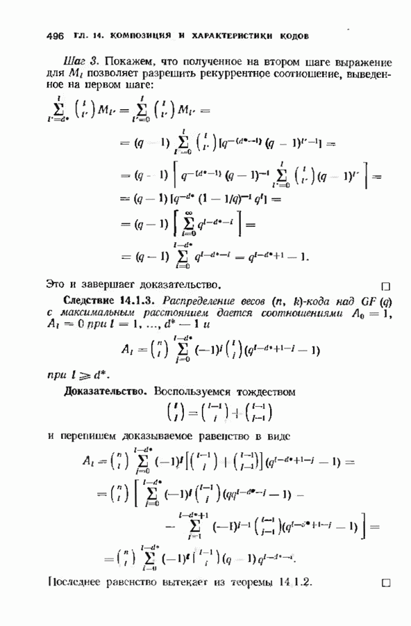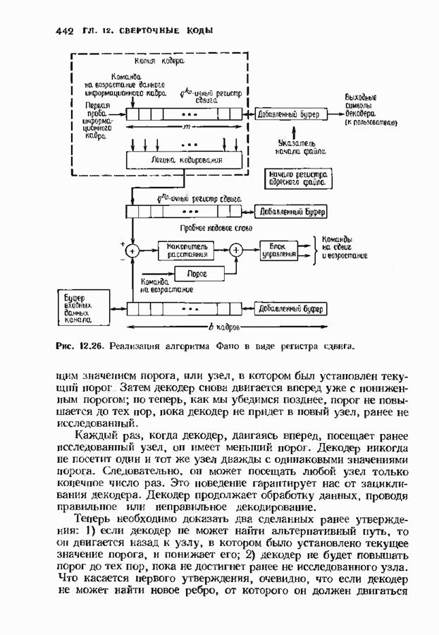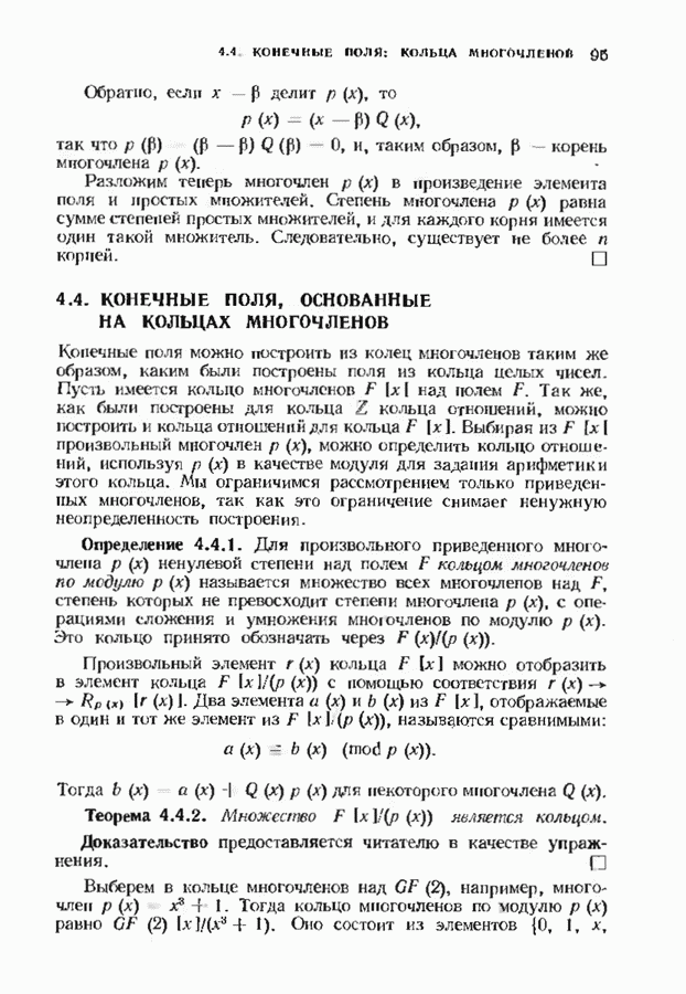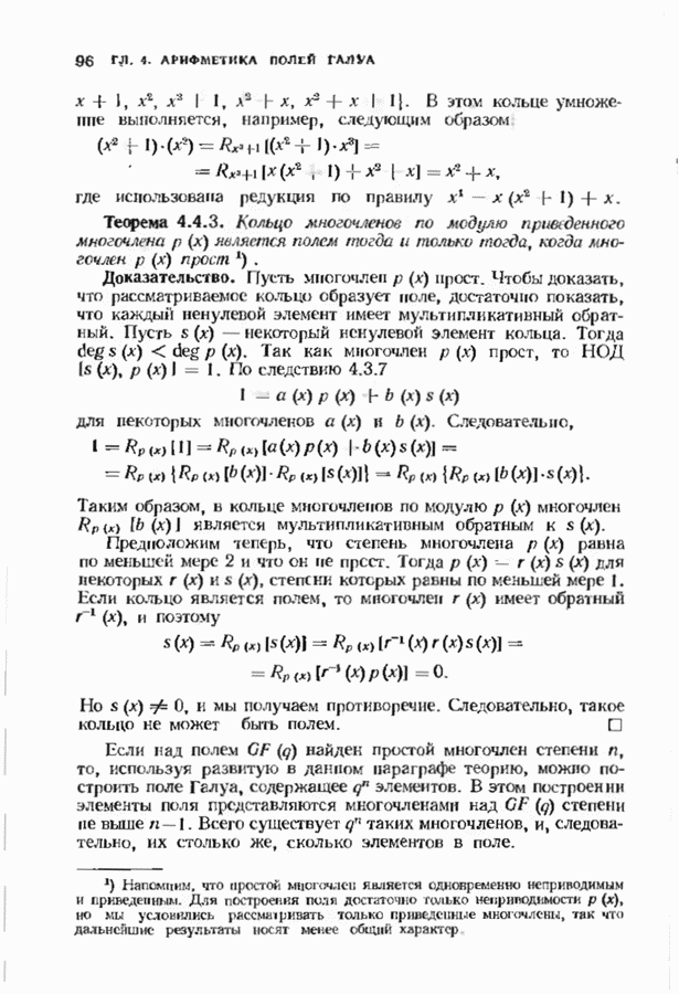 Если произошла только одна ошибка, то одна из оценок, даваемых проверочными суммами, будет неверна; мажоритарное решение дает значение Аналогично может быть продекодирован любой информационный символ, который умножается на одну из строк матрицы После того как эти информационные символы найдены, их вклад в кодовое слово вычитается из принятого слова. Это эквивалентно тому, что мы получаем слово кода Рида — Маллера Этот процесс повторяется до тех пор, пока не будут найдены все информационные биты. ЗАДАЧИ(см. скан) (см. скан) (см. скан) ЗАМЕЧАНИЯИзучение линейных кодов восходит к ранним работам Хэмминга [1950] и Голея 119491. Большинство положений, используемых в настоящее время при изучении линейных колов, заложено Слепяном [1956, 1960]: первые три параграфа тесно связаны с этими работами. Еще до этого Киксу 119537 обратил внимание на связь между линейными кодами и подпространствами векторных пространств. Коды с максимальным расстоянием впервые изучал Синглтон Двоичные коды Хэмминга как коды, исправляющие ошибки, впервые рассматривал Хэмминг, хотя подобные комбнпаторные структуры, рацее встречались в задачах статистики. Недвоичные коды Хэмминга были получены Голсем [1958] и Коком [1959]. Понятие совершенного кода впервые истречается у Голея, хотя он не пользовался таким термином. Делалось много попыток найти новые совершенные коды, но лишь отдельные из них увенчались успехом. В ряде работ Тиотявяйнен и Ван Лиит (работы завершились в 1974 и 1975 гг. соответственно) доказали, что не существует линейных (нетривиальных) совершенных кодов, отличных от кодов Хэмминга или Голея, и не существует нелинейных (нетривиальных) кодов, за исключением кодоп Васильева [1962] и Шёнхейма [1968]. Коды Рида-Маллера были получены Маллером [1954], и в этом же году Рид разработал алгоритм их декодирования. Этот алгоритм необычем тем, что принимает решение, основанное «а мажоритарной логике. Коды Рида-Маллера являются предшественниками обширных семейств мажоритарно декодируемых кодов, с которыми мы встретимся в следующих главах.