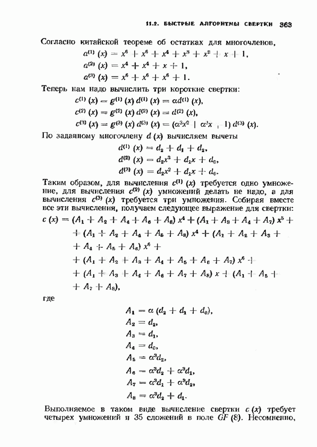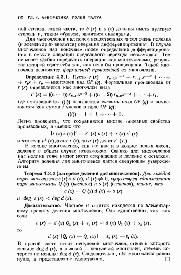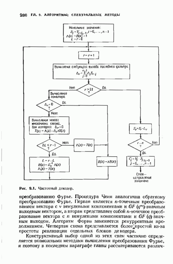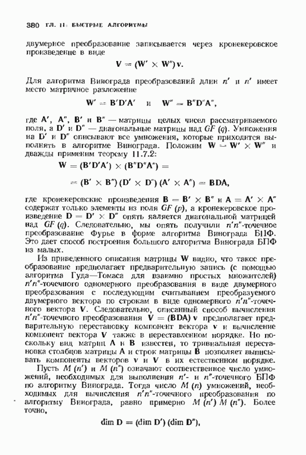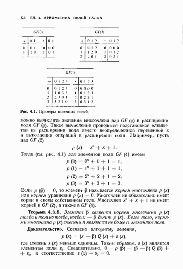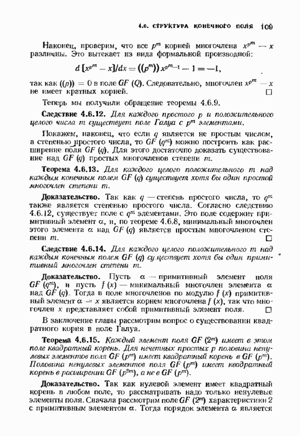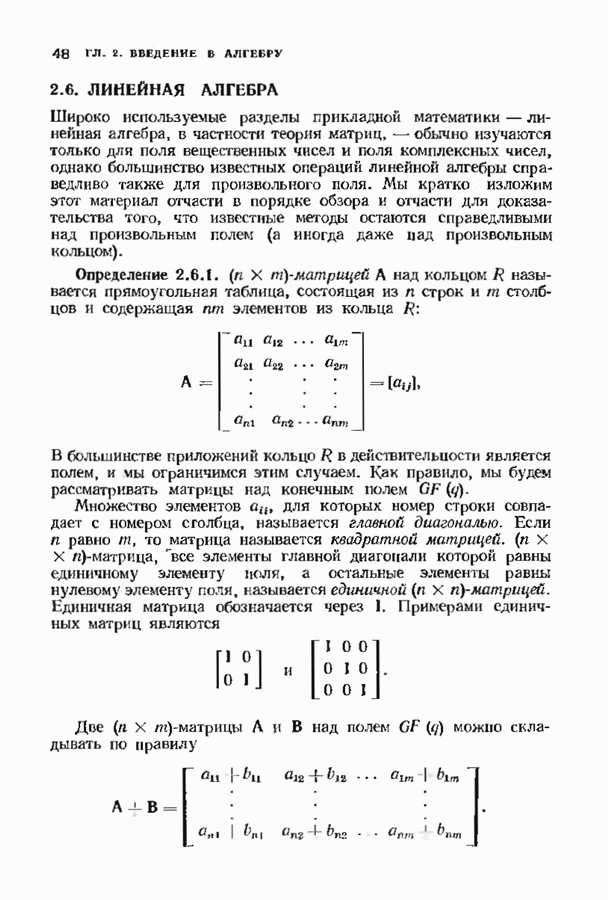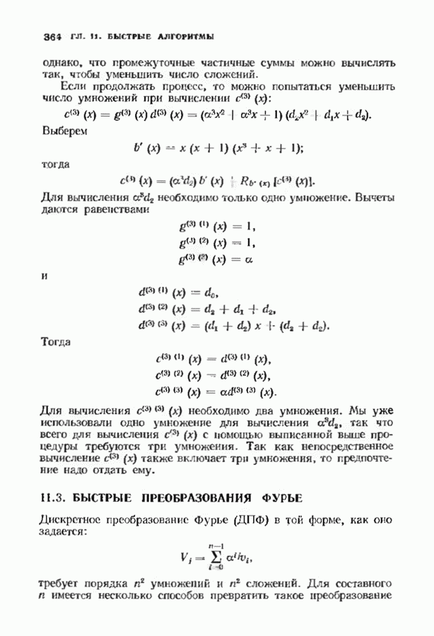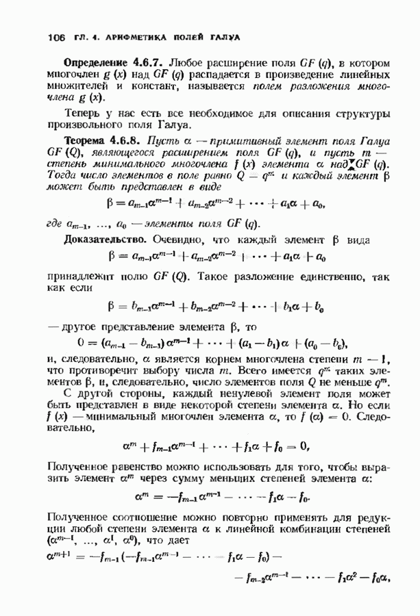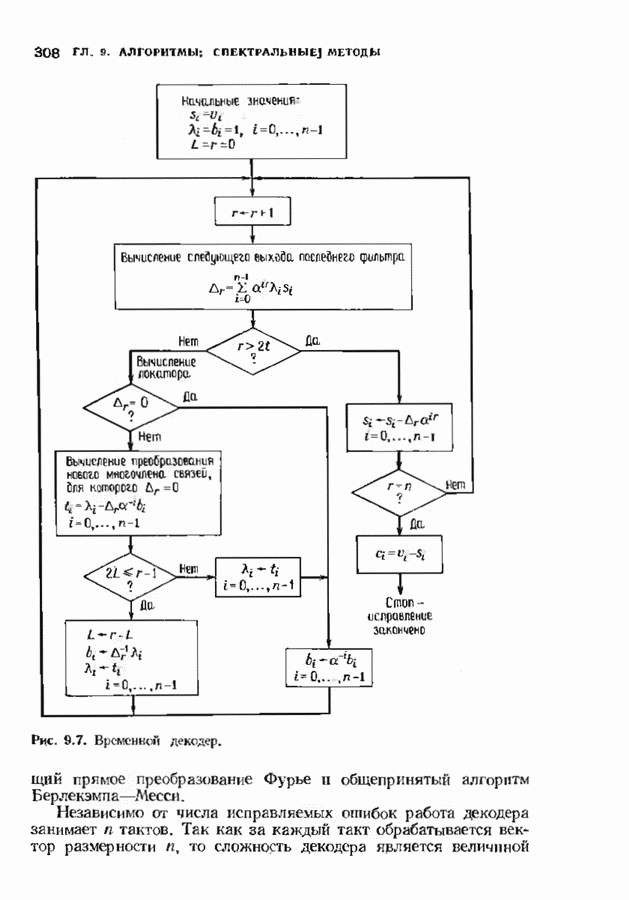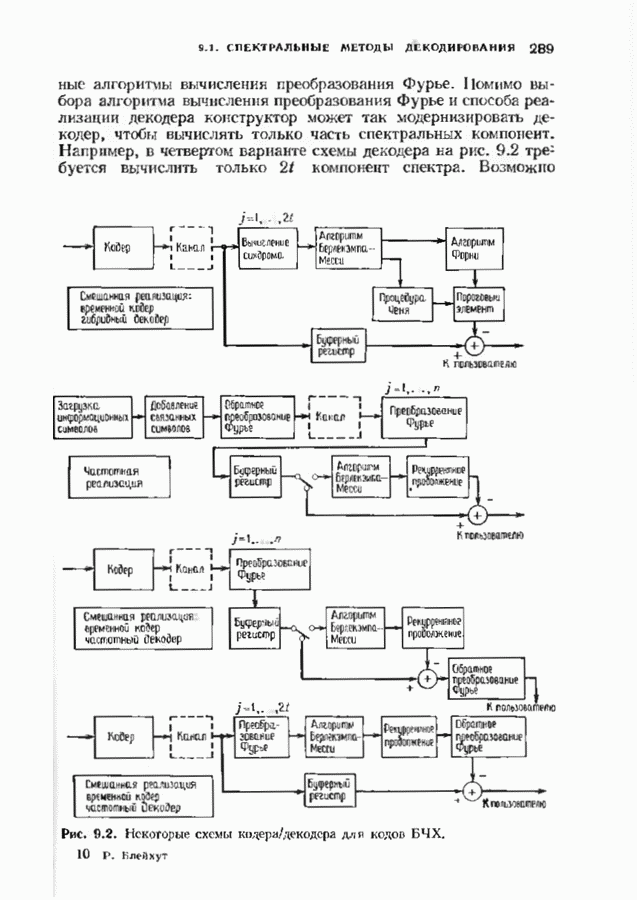 Если произошла только одна ошибка, то одна из оценок, даваемых проверочными суммами, будет неверна; мажоритарное решение дает значение Аналогично может быть продекодирован любой информационный символ, который умножается на одну из строк матрицы После того как эти информационные символы найдены, их вклад в кодовое слово вычитается из принятого слова. Это эквивалентно тому, что мы получаем слово кода Рида — Маллера Этот процесс повторяется до тех пор, пока не будут найдены все информационные биты. ЗАДАЧИ(см. скан) (см. скан) (см. скан) ЗАМЕЧАНИЯИзучение линейных кодов восходит к ранним работам Хэмминга [1950] и Голея 119491. Большинство положений, используемых в настоящее время при изучении линейных колов, заложено Слепяном [1956, 1960]: первые три параграфа тесно связаны с этими работами. Еще до этого Киксу 119537 обратил внимание на связь между линейными кодами и подпространствами векторных пространств. Коды с максимальным расстоянием впервые изучал Синглтон Двоичные коды Хэмминга как коды, исправляющие ошибки, впервые рассматривал Хэмминг, хотя подобные комбнпаторные структуры, рацее встречались в задачах статистики. Недвоичные коды Хэмминга были получены Голсем [1958] и Коком [1959]. Понятие совершенного кода впервые истречается у Голея, хотя он не пользовался таким термином. Делалось много попыток найти новые совершенные коды, но лишь отдельные из них увенчались успехом. В ряде работ Тиотявяйнен и Ван Лиит (работы завершились в 1974 и 1975 гг. соответственно) доказали, что не существует линейных (нетривиальных) совершенных кодов, отличных от кодов Хэмминга или Голея, и не существует нелинейных (нетривиальных) кодов, за исключением кодоп Васильева [1962] и Шёнхейма [1968]. Коды Рида-Маллера были получены Маллером [1954], и в этом же году Рид разработал алгоритм их декодирования. Этот алгоритм необычем тем, что принимает решение, основанное «а мажоритарной логике. Коды Рида-Маллера являются предшественниками обширных семейств мажоритарно декодируемых кодов, с которыми мы встретимся в следующих главах.