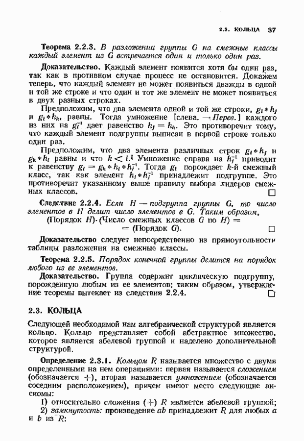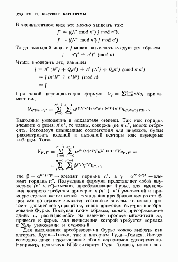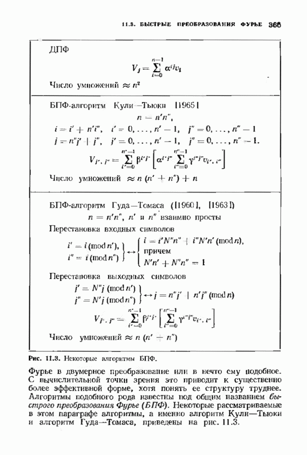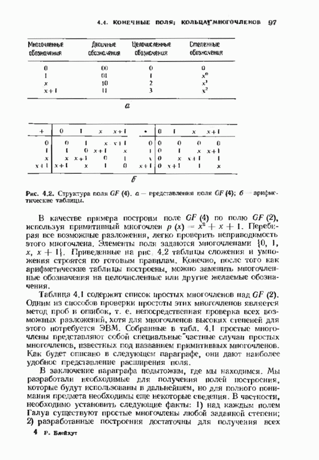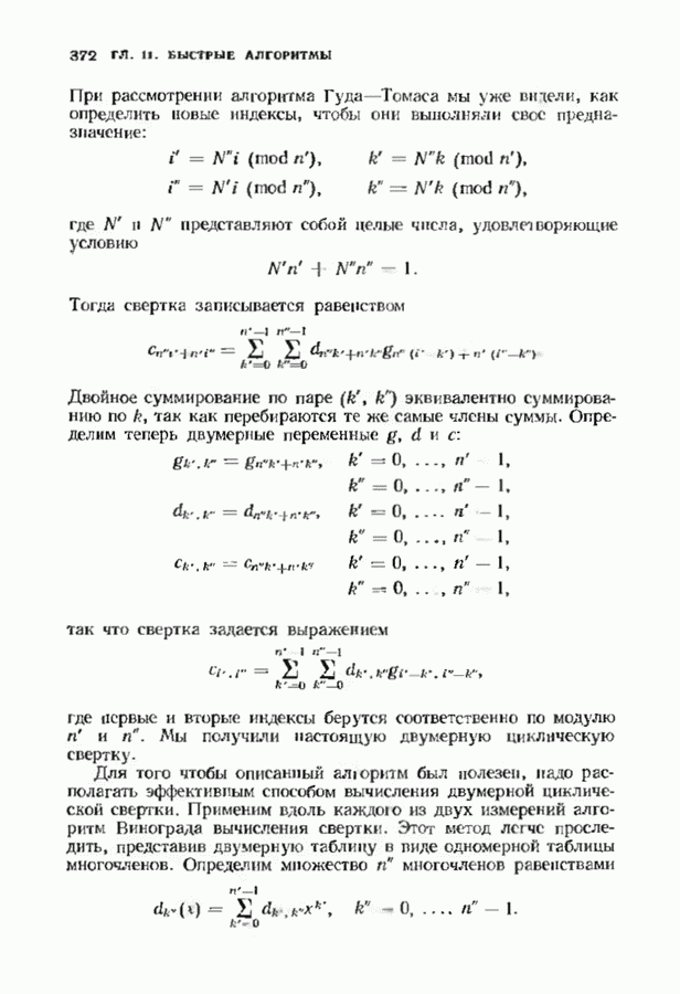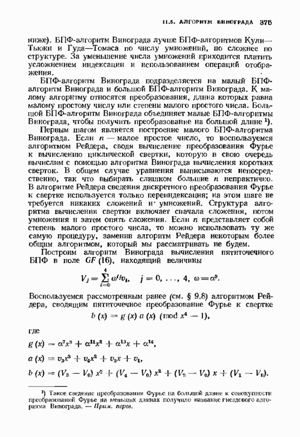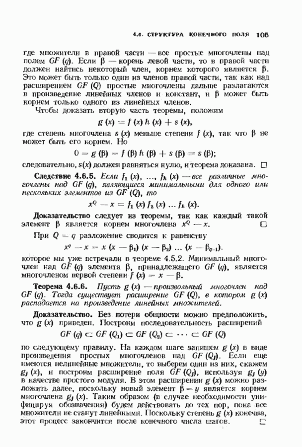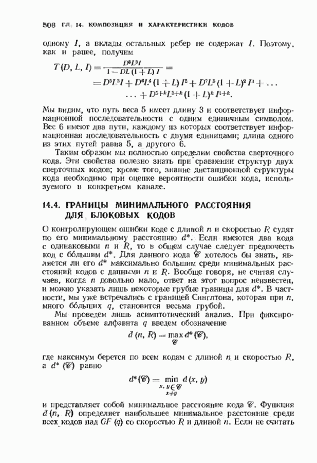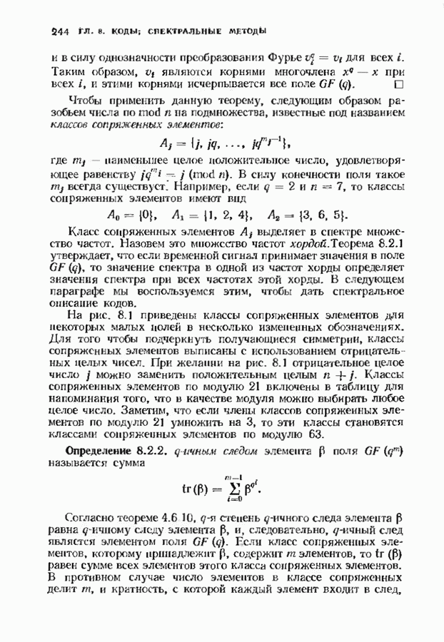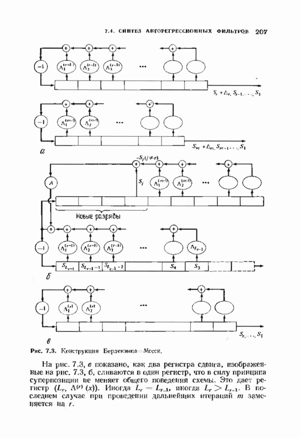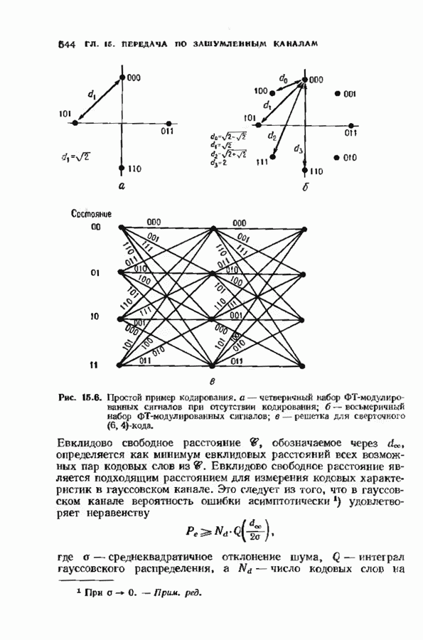 Если произошла только одна ошибка, то одна из оценок, даваемых проверочными суммами, будет неверна; мажоритарное решение дает значение Аналогично может быть продекодирован любой информационный символ, который умножается на одну из строк матрицы После того как эти информационные символы найдены, их вклад в кодовое слово вычитается из принятого слова. Это эквивалентно тому, что мы получаем слово кода Рида — Маллера Этот процесс повторяется до тех пор, пока не будут найдены все информационные биты. ЗАДАЧИ(см. скан) (см. скан) (см. скан) ЗАМЕЧАНИЯИзучение линейных кодов восходит к ранним работам Хэмминга [1950] и Голея 119491. Большинство положений, используемых в настоящее время при изучении линейных колов, заложено Слепяном [1956, 1960]: первые три параграфа тесно связаны с этими работами. Еще до этого Киксу 119537 обратил внимание на связь между линейными кодами и подпространствами векторных пространств. Коды с максимальным расстоянием впервые изучал Синглтон Двоичные коды Хэмминга как коды, исправляющие ошибки, впервые рассматривал Хэмминг, хотя подобные комбнпаторные структуры, рацее встречались в задачах статистики. Недвоичные коды Хэмминга были получены Голсем [1958] и Коком [1959]. Понятие совершенного кода впервые истречается у Голея, хотя он не пользовался таким термином. Делалось много попыток найти новые совершенные коды, но лишь отдельные из них увенчались успехом. В ряде работ Тиотявяйнен и Ван Лиит (работы завершились в 1974 и 1975 гг. соответственно) доказали, что не существует линейных (нетривиальных) совершенных кодов, отличных от кодов Хэмминга или Голея, и не существует нелинейных (нетривиальных) кодов, за исключением кодоп Васильева [1962] и Шёнхейма [1968]. Коды Рида-Маллера были получены Маллером [1954], и в этом же году Рид разработал алгоритм их декодирования. Этот алгоритм необычем тем, что принимает решение, основанное «а мажоритарной логике. Коды Рида-Маллера являются предшественниками обширных семейств мажоритарно декодируемых кодов, с которыми мы встретимся в следующих главах.