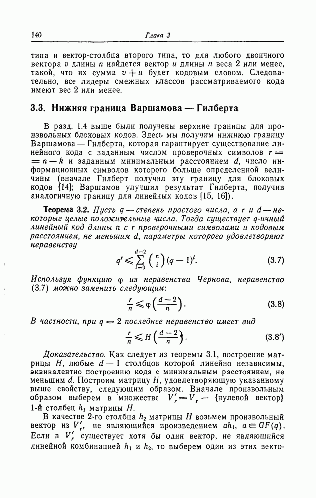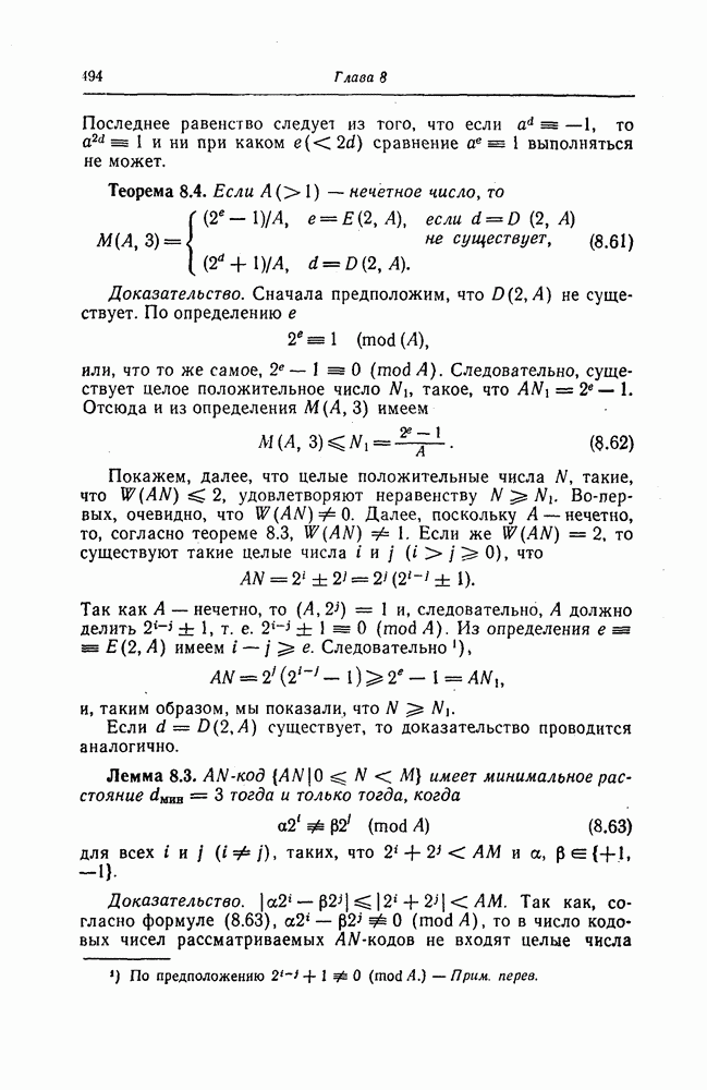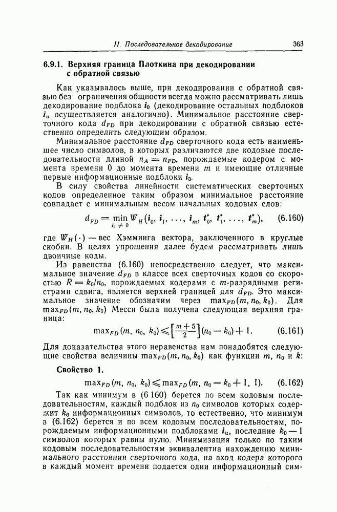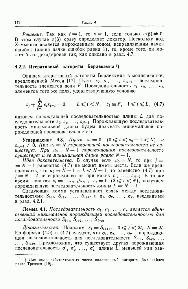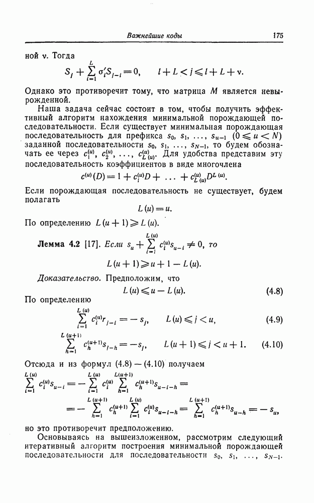 была поставлена и решена Месси [18]. Метод, использованный Месси для вывода этой границы, довольно сложен и основан на использовании периодичности последовательностей на выходе регистра сдвига. Поэтому здесь приводится лишь сама граница.