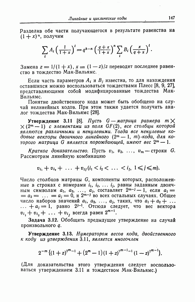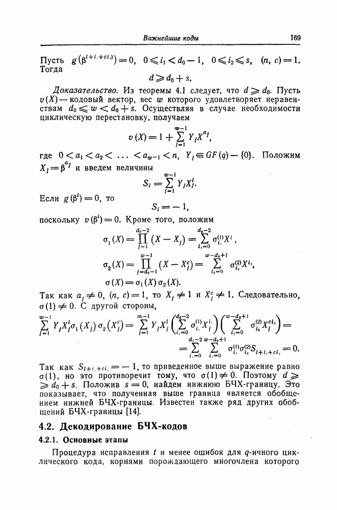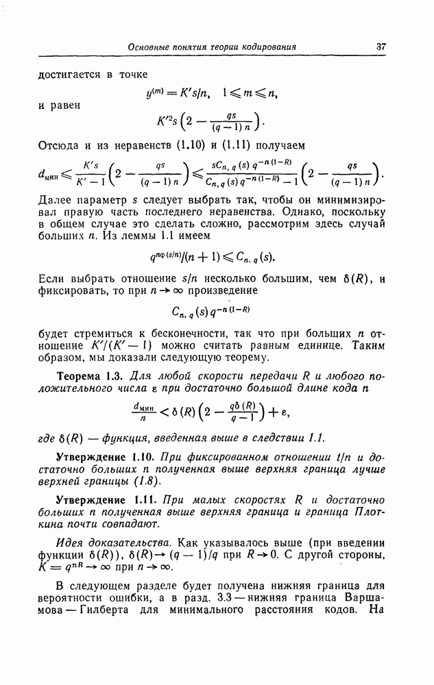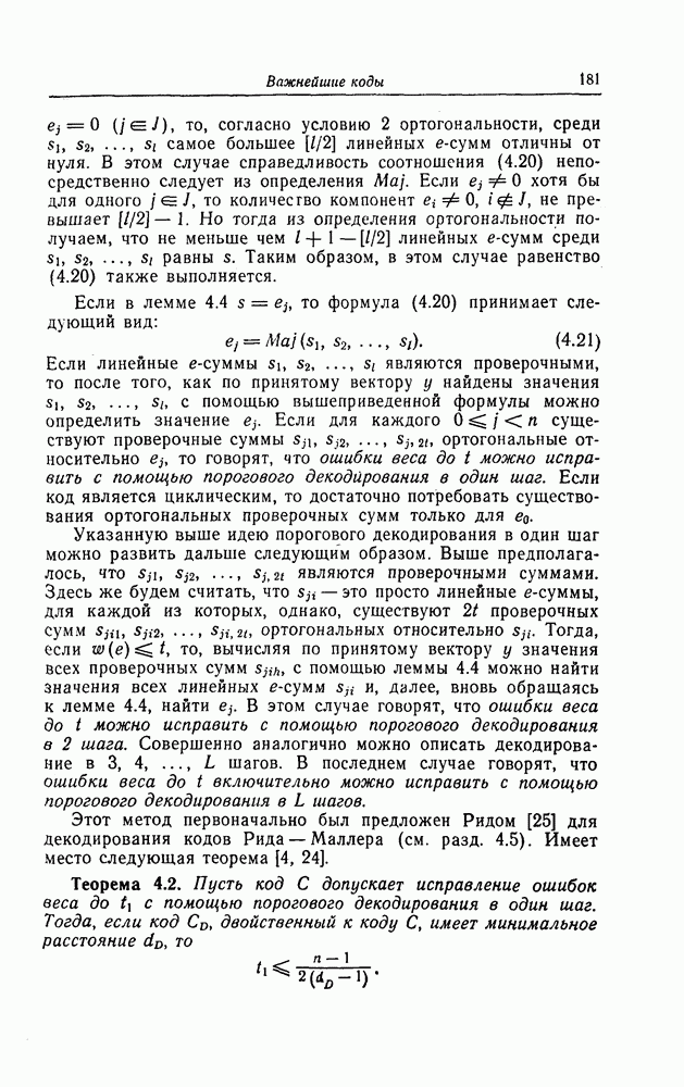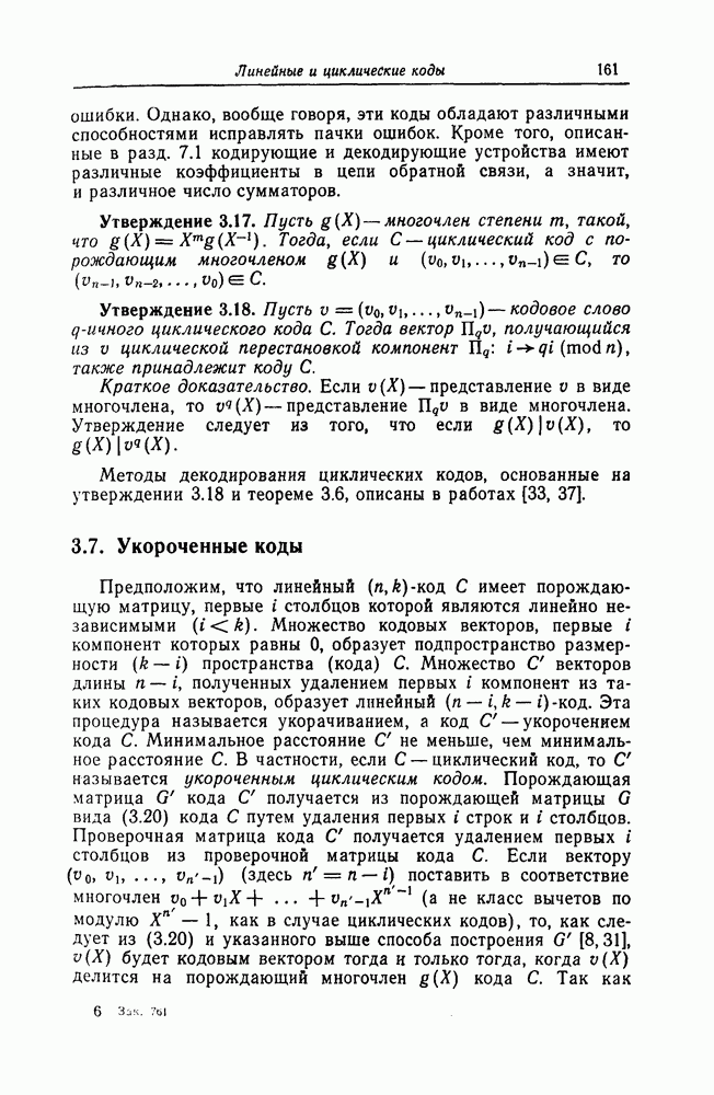 была поставлена и решена Месси [18]. Метод, использованный Месси для вывода этой границы, довольно сложен и основан на использовании периодичности последовательностей на выходе регистра сдвига. Поэтому здесь приводится лишь сама граница.