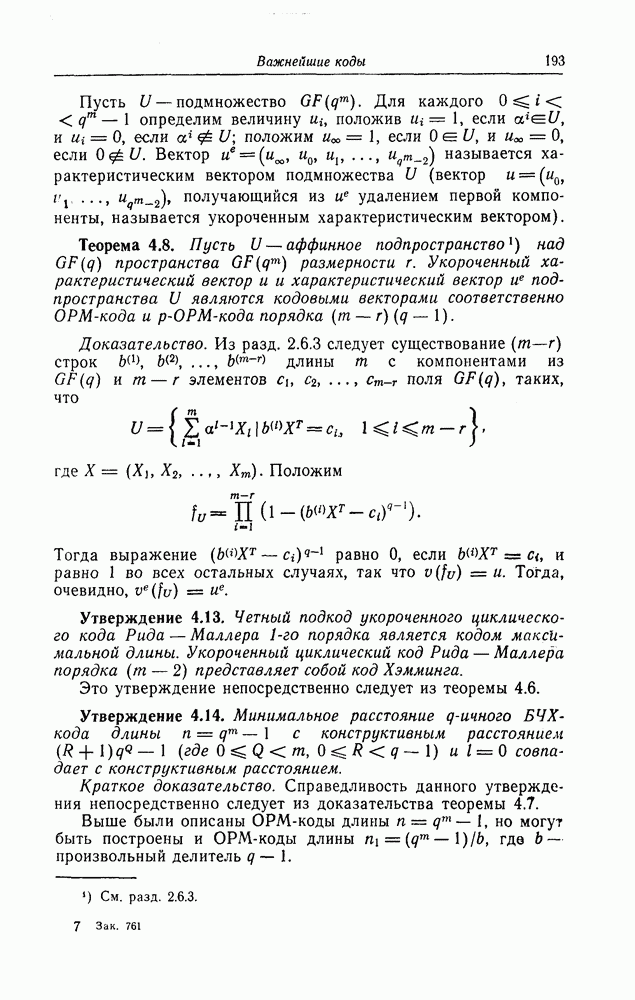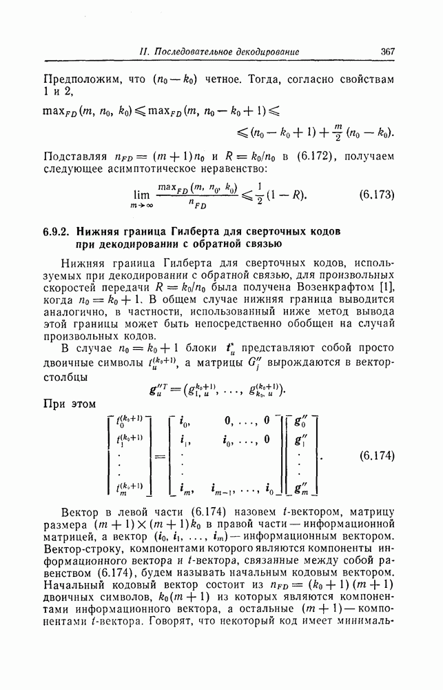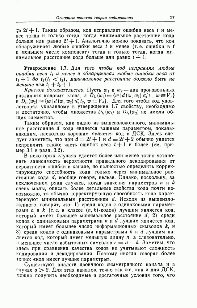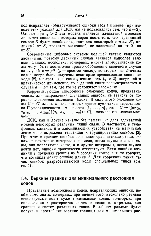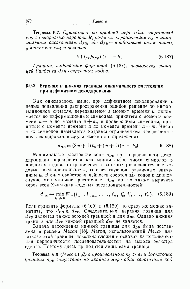 6.9.3. Верхняя и нижняя границы минимального расстояния при дефинитном декодировании
