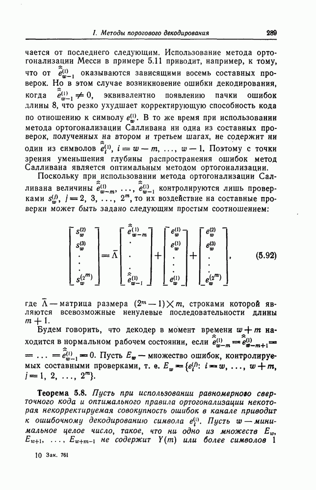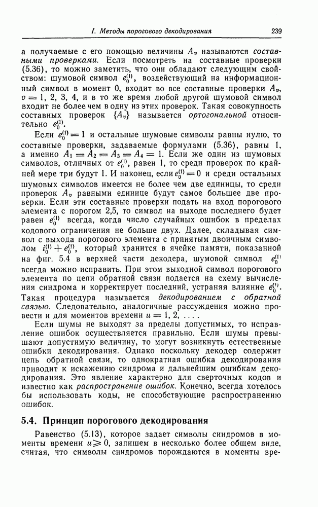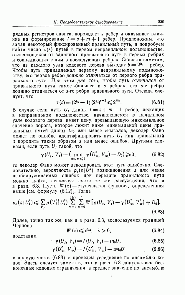 Как описывалось выше, при дефинитном декодировании с целью подавления распространения ошибок решение об информационном символе, передаваемом в момент времени и, принимается по информационным символам, принятым с момента времени